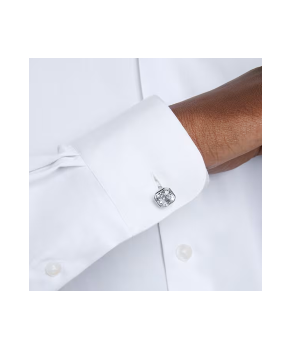 These glowing Millenia cufflinks add a flawless finish to an evening look. In each piece, bright rhodium plating is combined with an octagon-cut crystal, creating light-catching drama on either wrist. Combine with matching Millenia jewelry to accentuate the radiance.