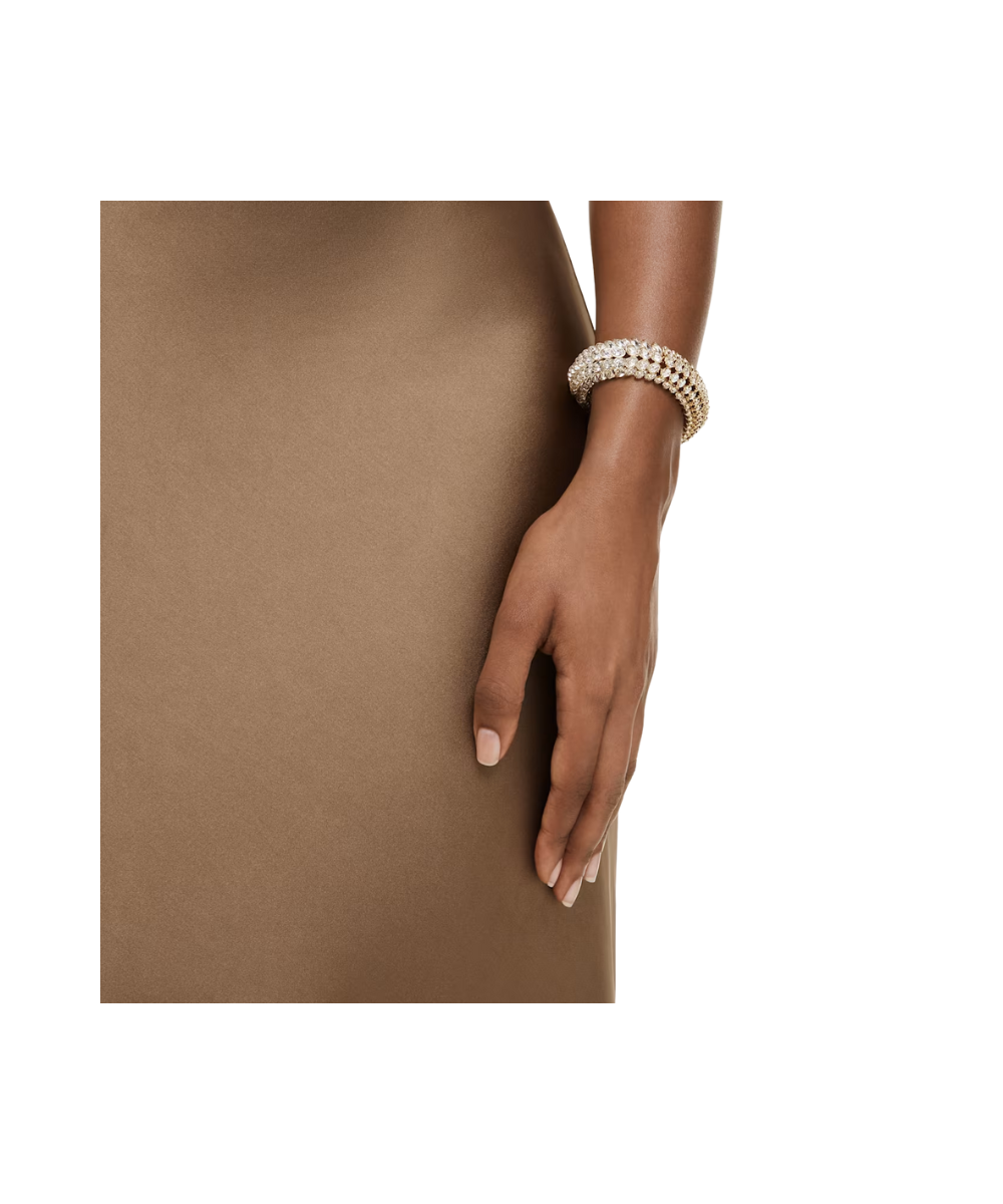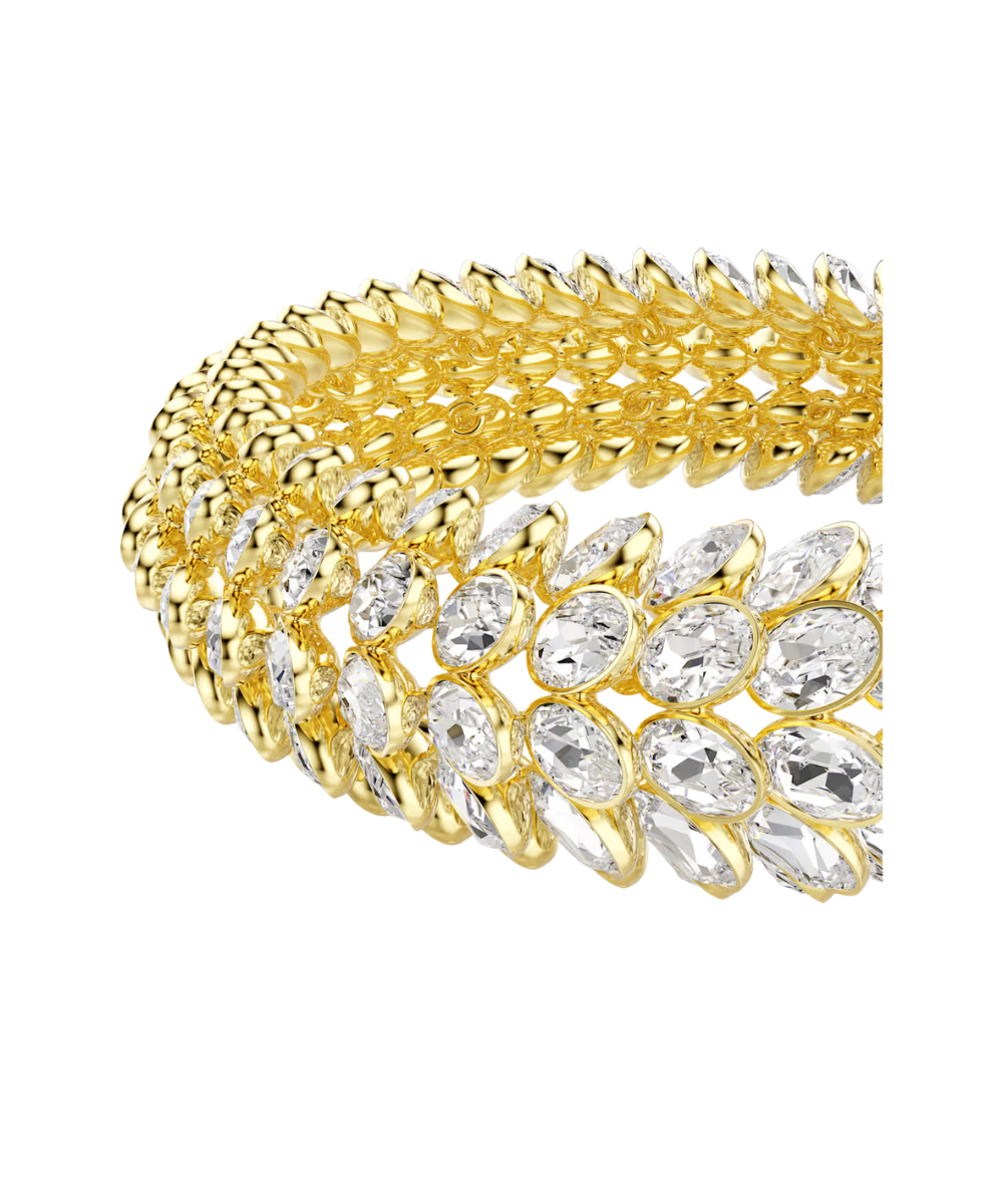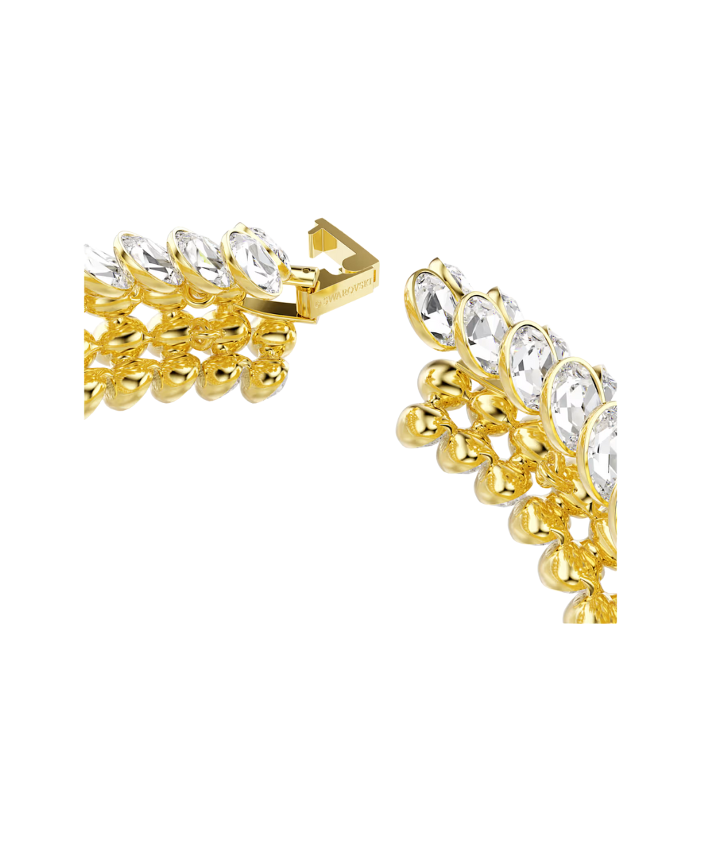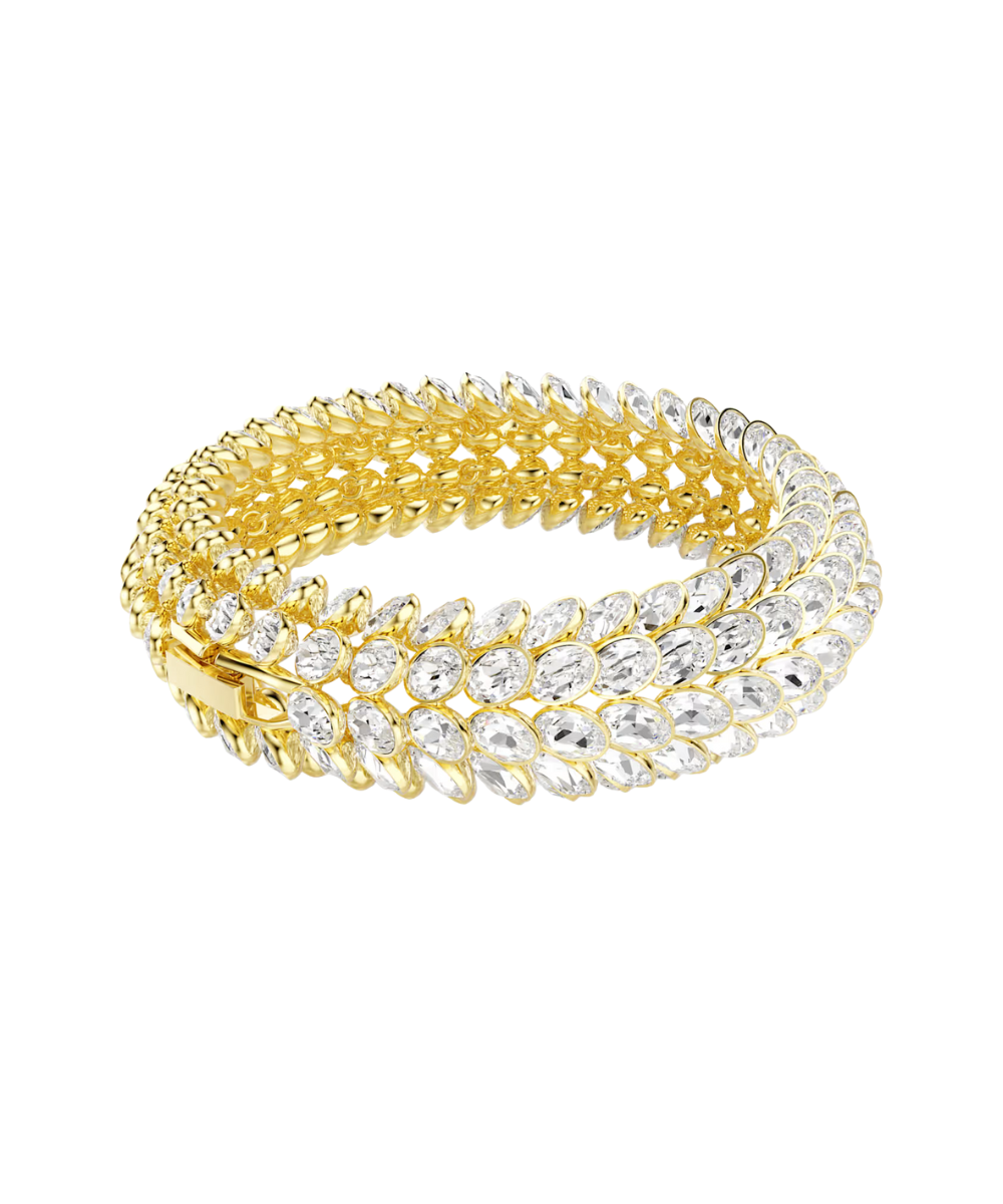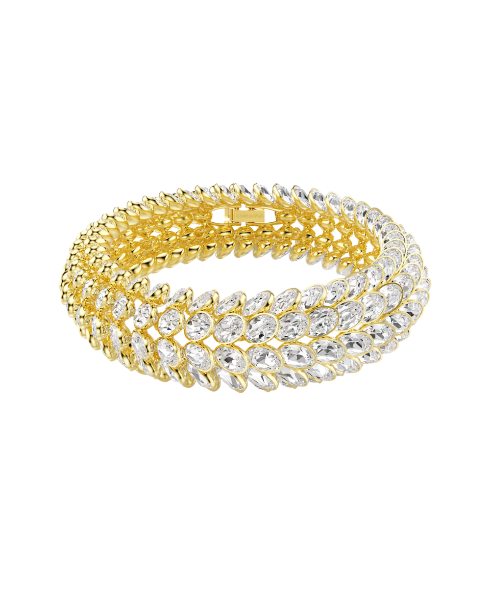 This sensational Idyllia bracelet is the ultimate example of Swarovski’s mastery of light. The gold-tone plated design follows the expressive pattern of foliage and features four continuous rows of around 224 oval crystals in bezel settings. A true revelation on the wrist, this bracelet can become one of your most defining pieces of jewelry.