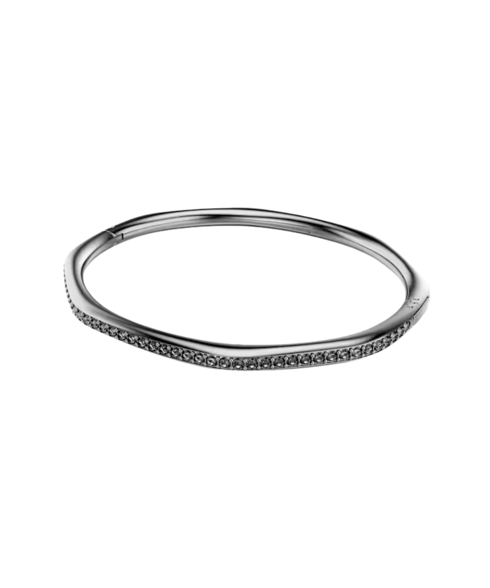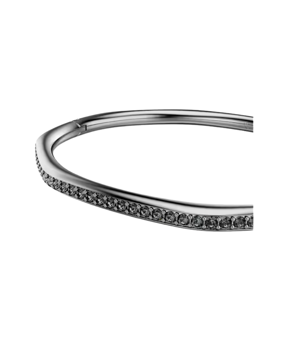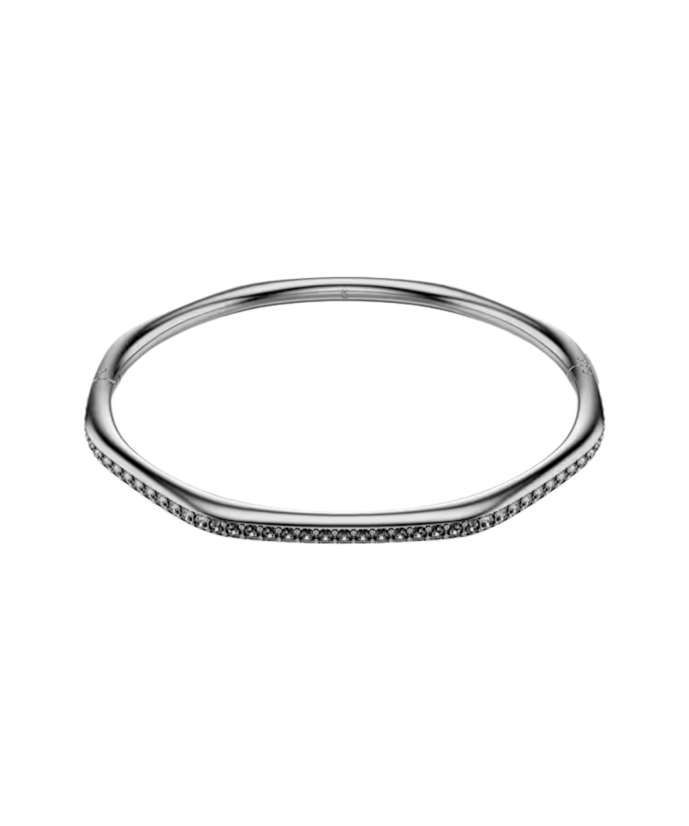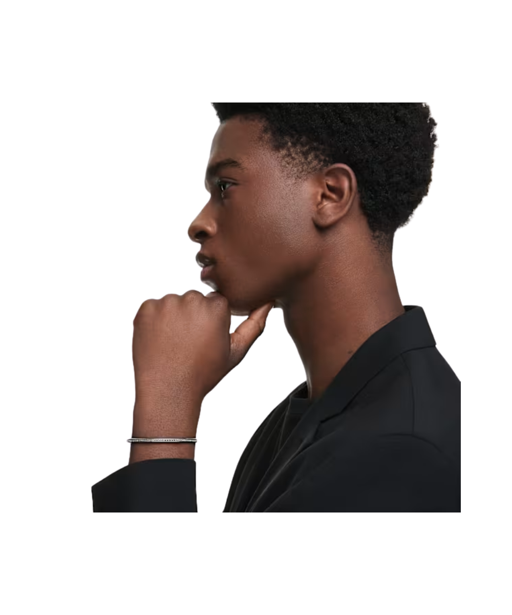 With its deep metallic tones, this Dextera bangle makes a chic statement. The slender octagonal design is ruthenium plated and accented with a row of black crystals in a refined prong setting. Style yours solo or with a matching pendant and signet ring to coordinate the sleek look.
