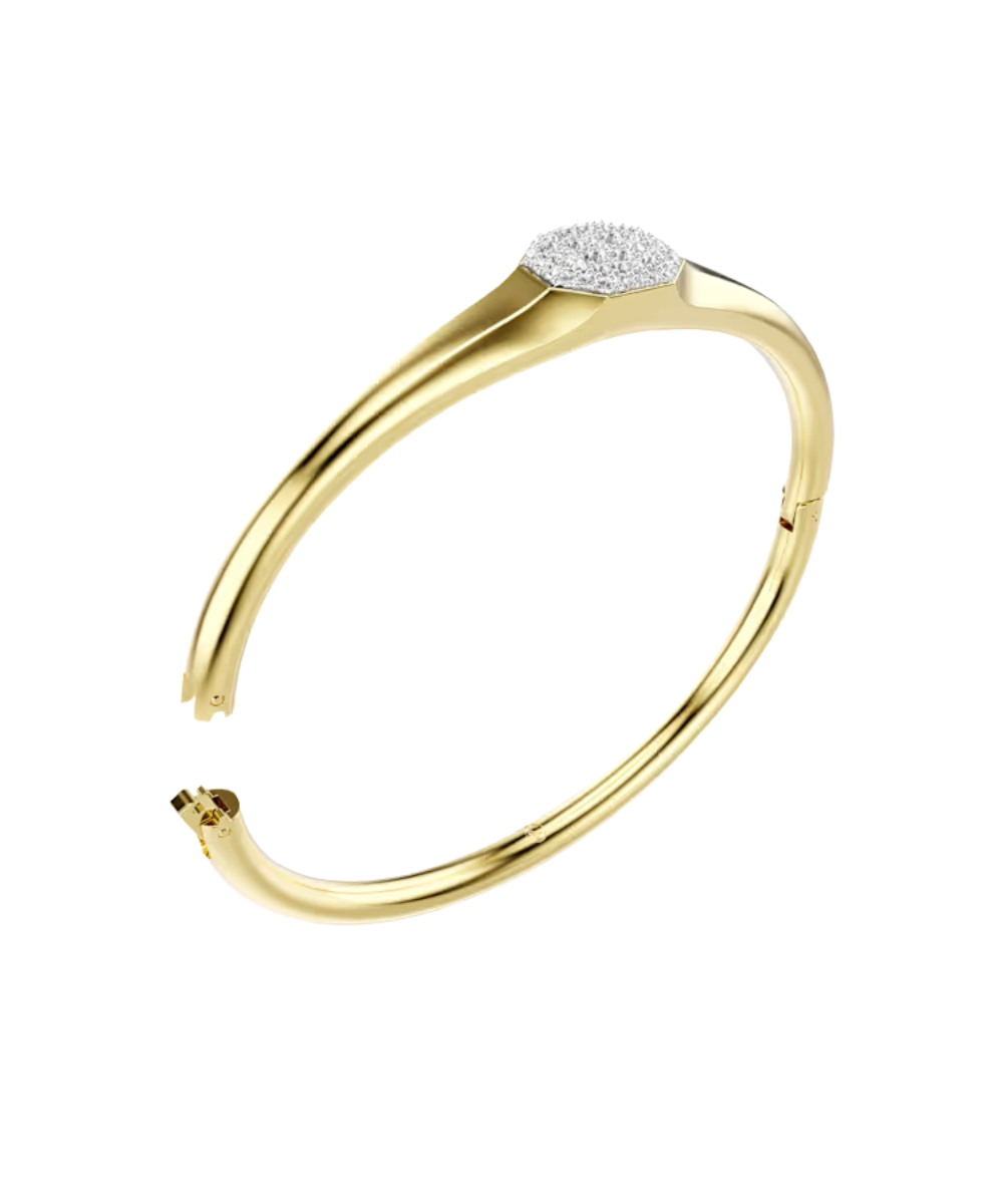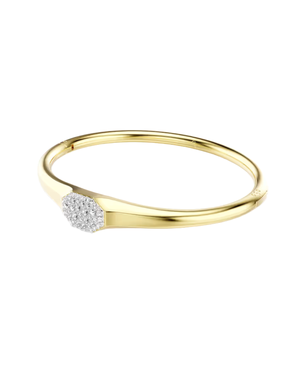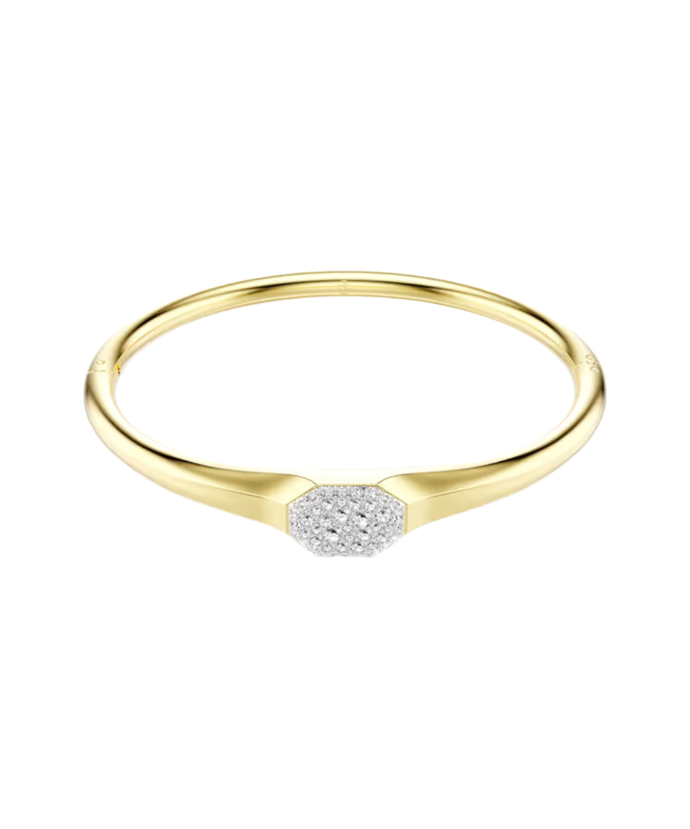 This slender Dextera bangle is infused with elegance and energy. The gold-tone plated silhouette features varying sizes of round crystals, expertly set in an octagonal formation using Swarovski’s rhodium flash technique. Completed with a Wonderclick closure, it’s a go-to piece of jewelry that can effortlessly transition from day to night. Wear it alongside the matching midi-ring for maximum radiance.