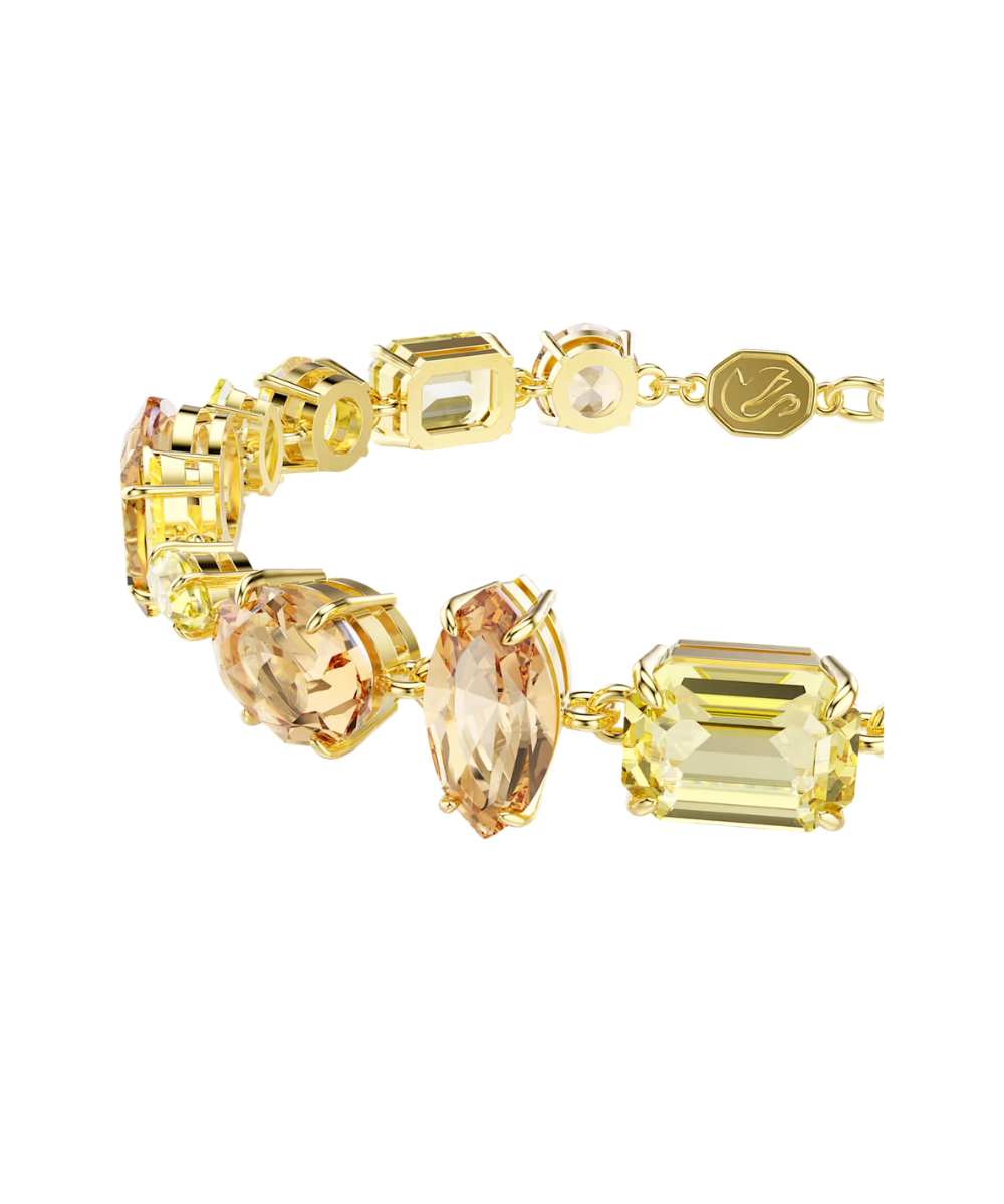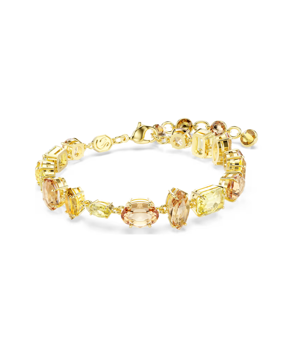 A vivid statement piece, this Gema bracelet is made with exuberant color and light. The gold-tone plated design features a mix of prong-set crystals in various cuts and yellow and amber tones, while the embellished extender allows you to easily adjust the fit. This bracelet is emblematic of Gema’s unexpected formations and vibrant beauty, and glows even brighter when worn alongside matching jewelry pieces from the same family.
