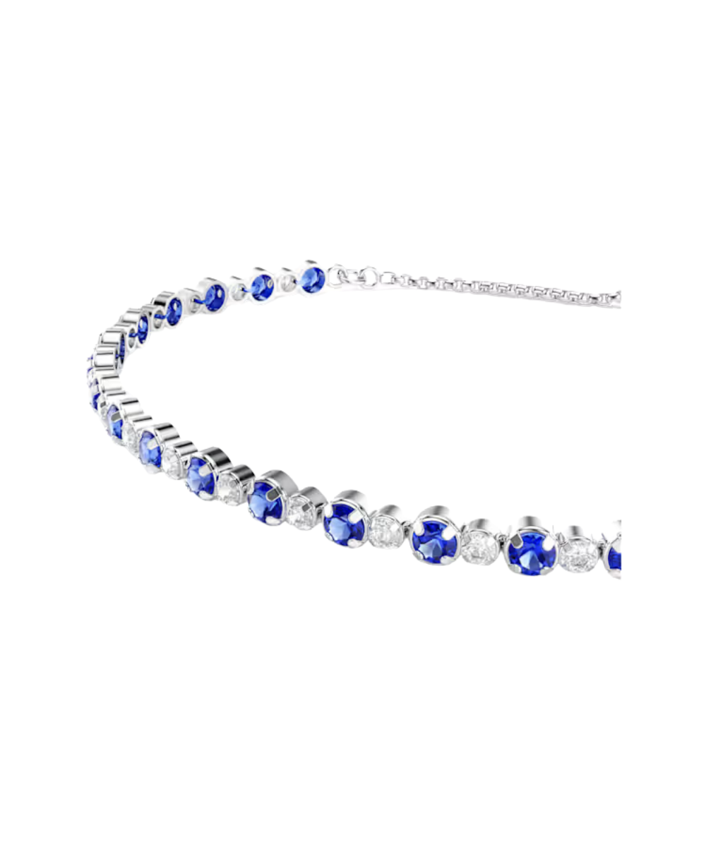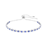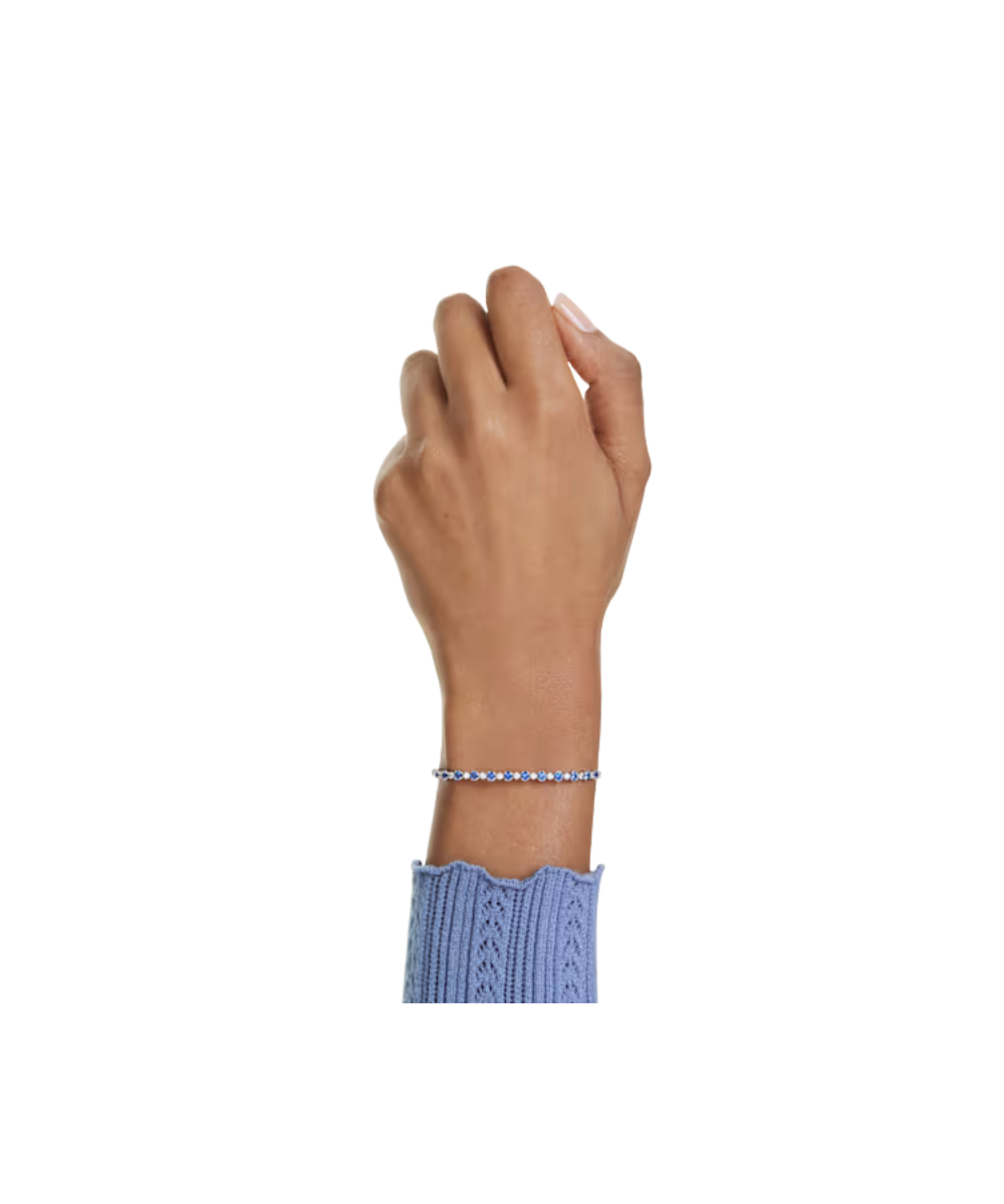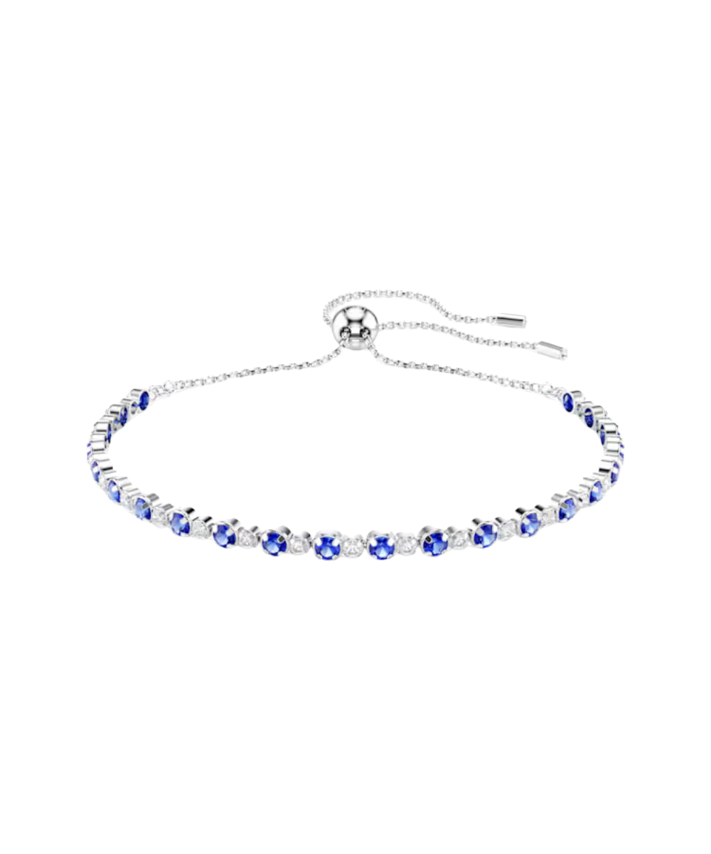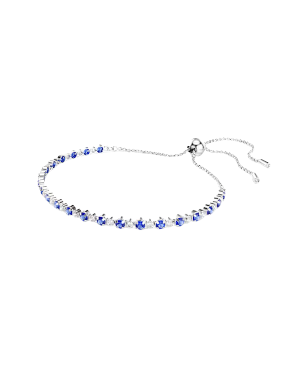 Work wonders with this elegant yet eye-catching Tennis bracelet from the Matrix family. The design is formed from a dazzling row of deep blue and clear Swarovski Zirconia and finished with sleek rhodium plating. The sliding closure ensures a made-for-you fit.