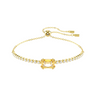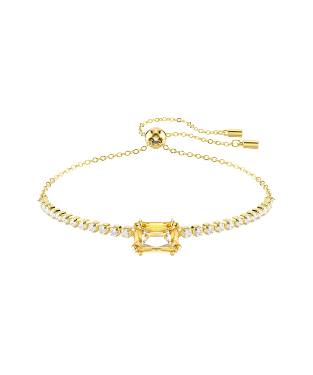 This classic Tennis bracelet adds a touch of radiance to any look. Fastened with a sliding closure for an adjustable fit, the gold-tone plated design features a uniform row of Swarovski Zirconia and is accented with a baguette-cut caramel Swarovski Zirconia at its center. A vibrant twist on a timeless style that you can wear time and time again.