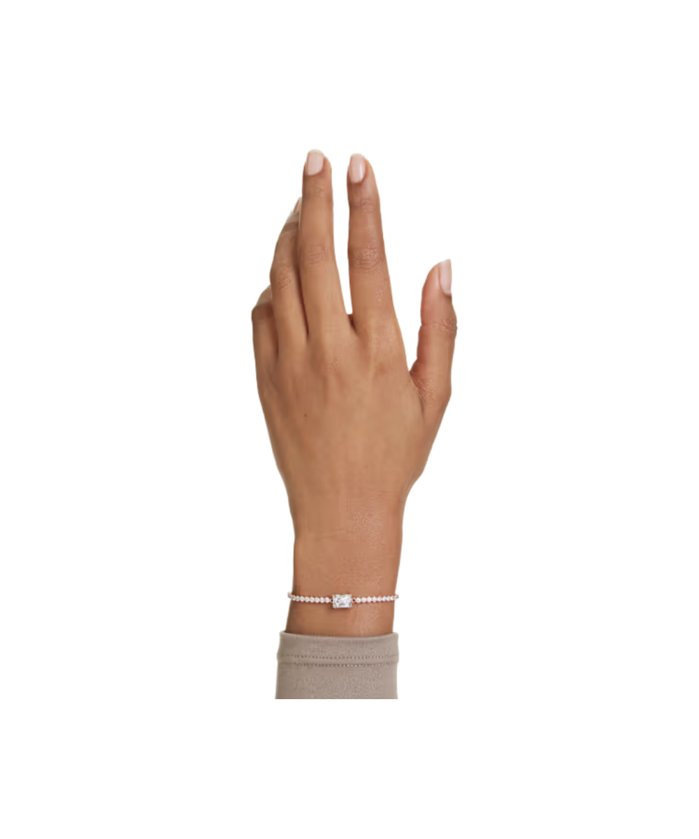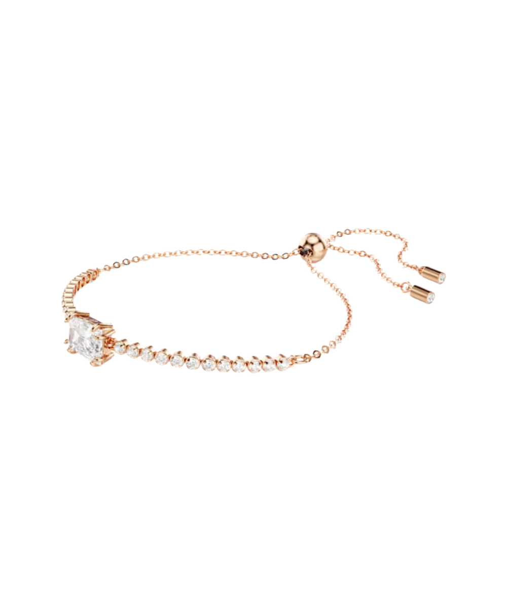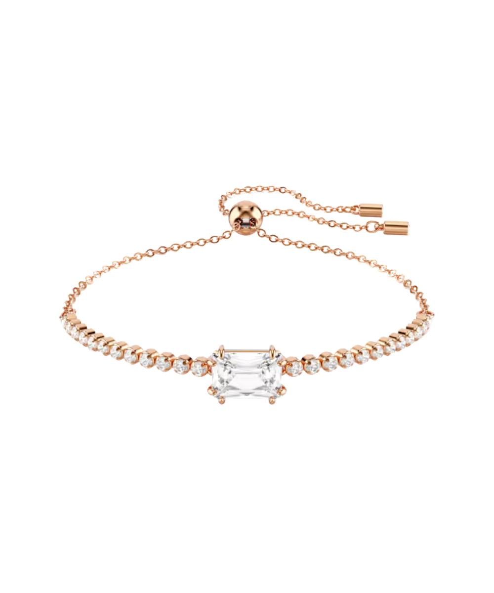 This classic Tennis bracelets adds a touch of radiance to any look. Fastened with a sliding closure for an adjustable fit, the rose gold-tone plated design features a uniform row of Swarovski Zirconia and is accented with a baguette-cut Swarovski Zirconia at its center. A vibrant twist on a timeless style that you can wear time and time again.