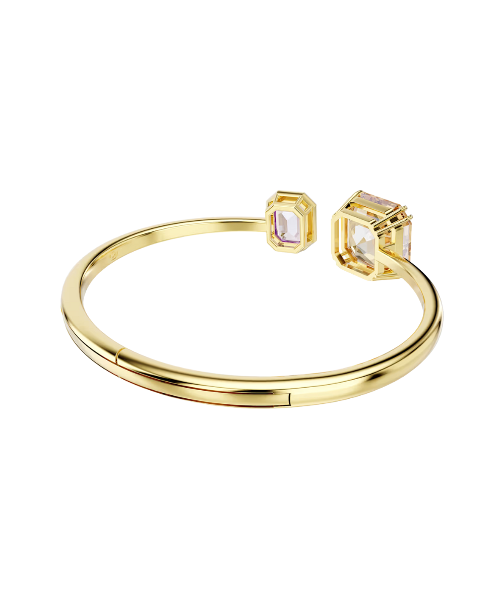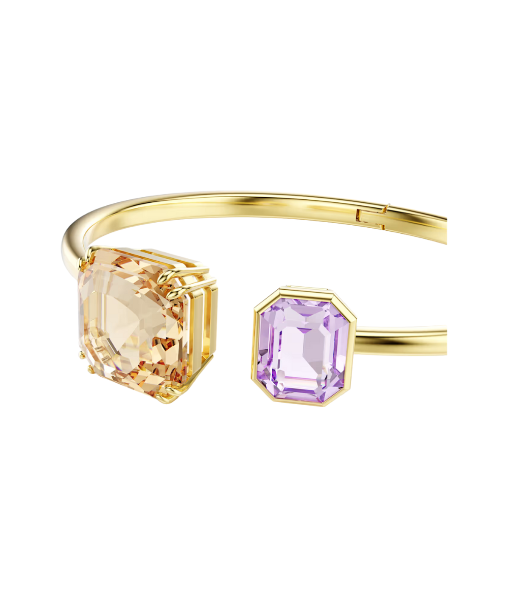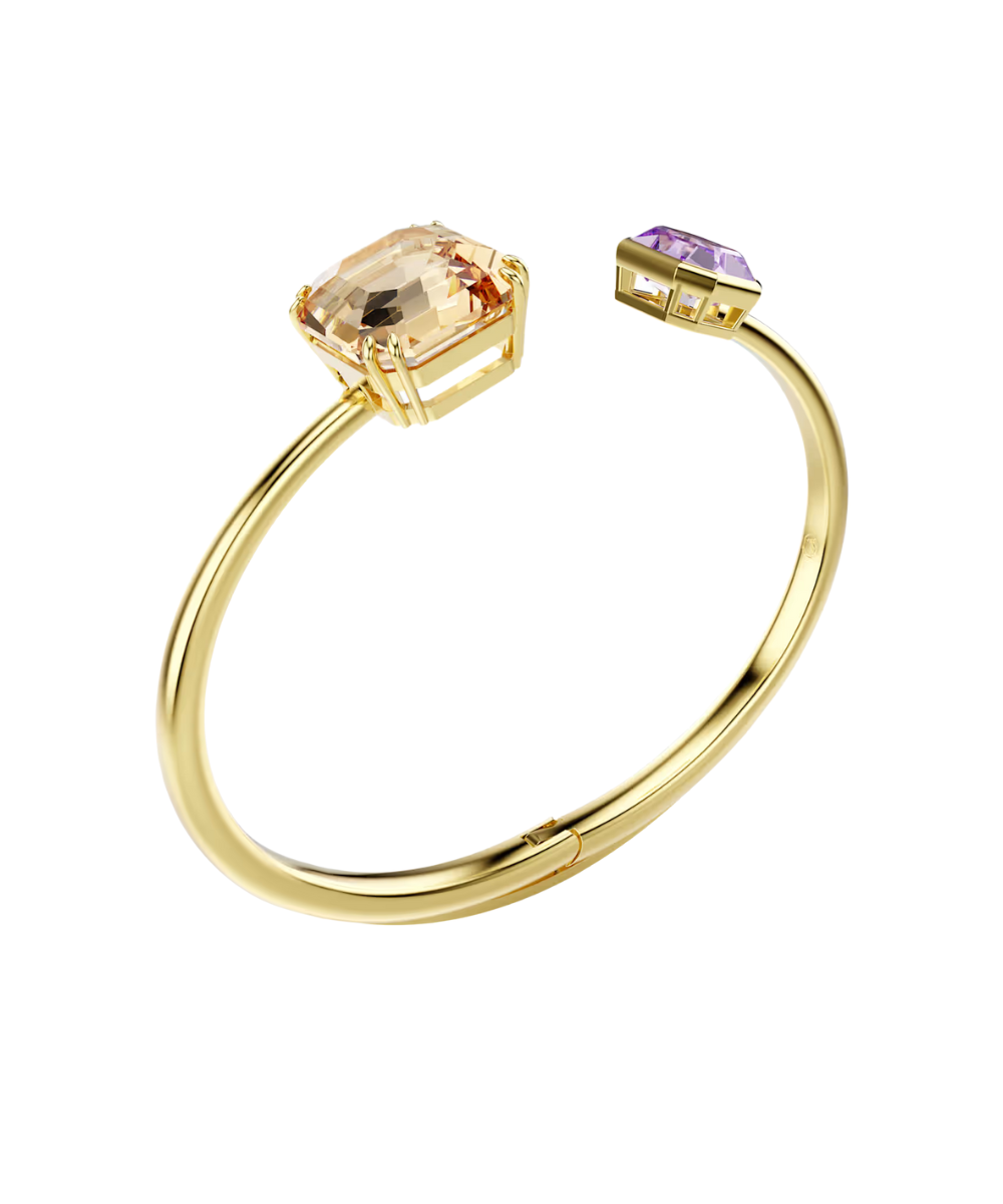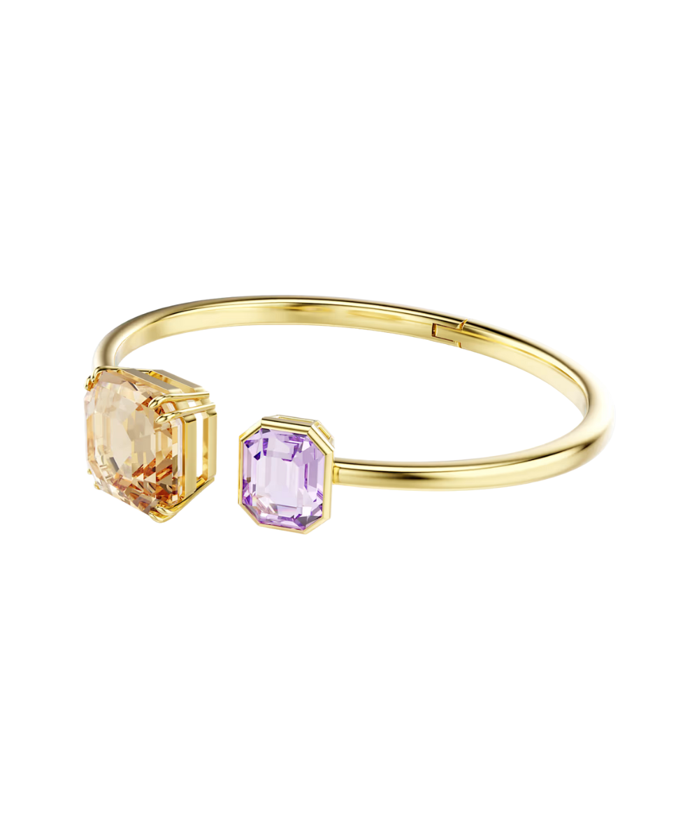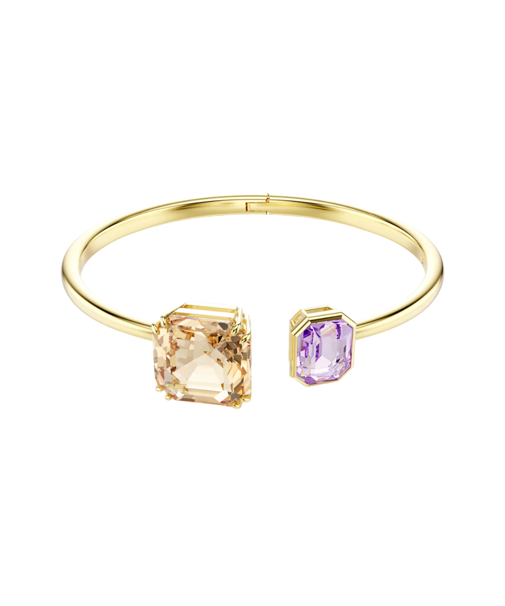 This playful bangle brings instant joy to whatever you wear. The open band is gold-tone plated and features a caramel crystal in a double prong setting, and a smaller purple crystal in a bezel setting. Stack it with your other favorite bangles, or pair it with the matching Millenia pieces to accentuate the glow.