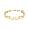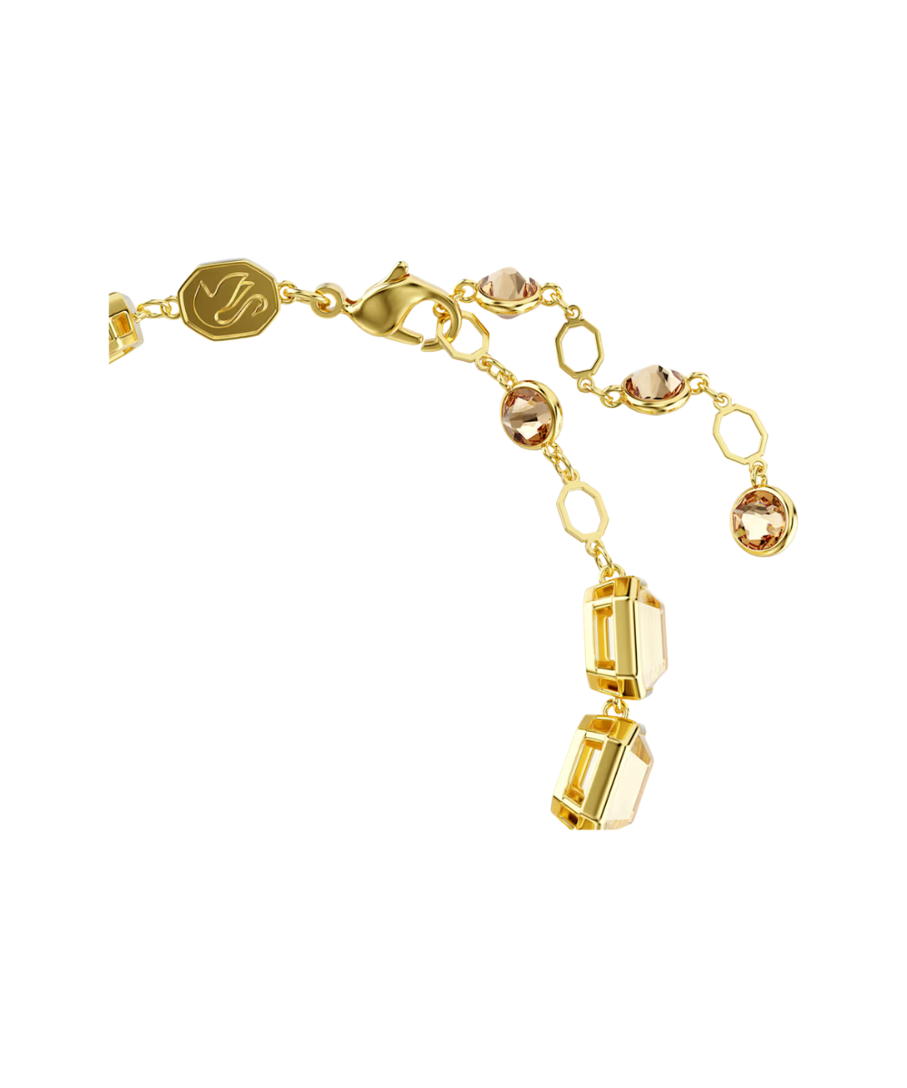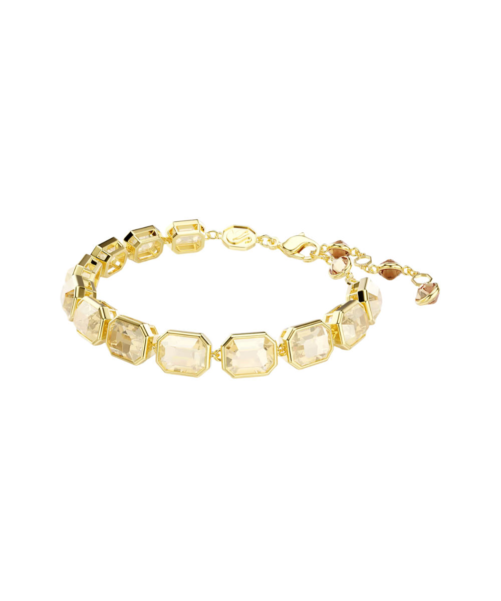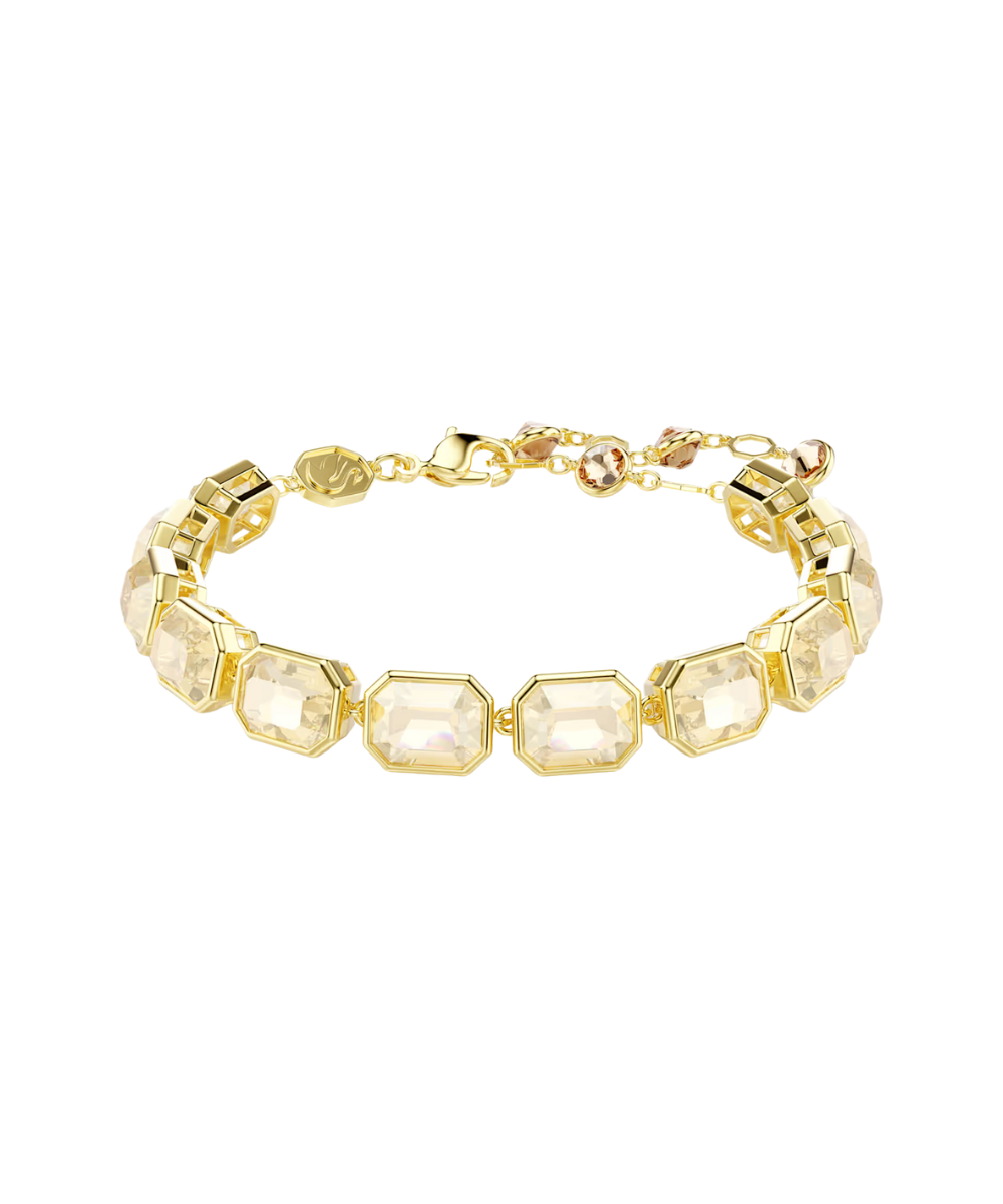 Be your brilliant best in this vivid Millenia bracelet. The gold-tone plated design features a strand of octagonal caramel crystals in a refined bezel setting. There is also a lobster closure with an elongation, allowing you to adjust the fit. Pair this bracelet with the matching necklace to elevate your everyday look.