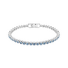 A classic Imber Emily Tennis bracelet with a glow that speaks volumes. This delicate strand of bezel-set blue crystals on a rhodium plated Imber Emily Tennis bracelet is elegant and minimalistic, while still making a bold statement around the wrist. The colorful design features a secure foldover clasp closure and comes with an extender. Wear it to accentuate your style at any time of day or night.