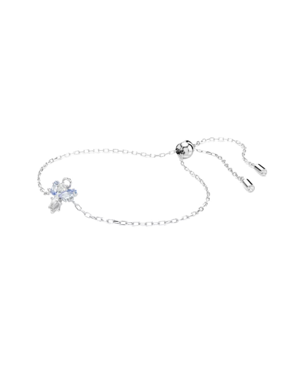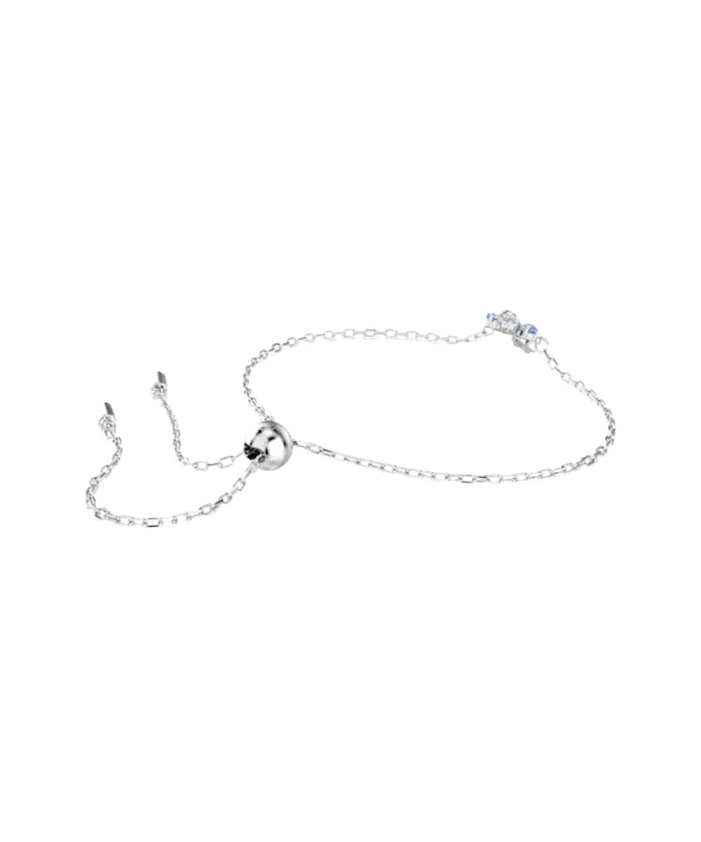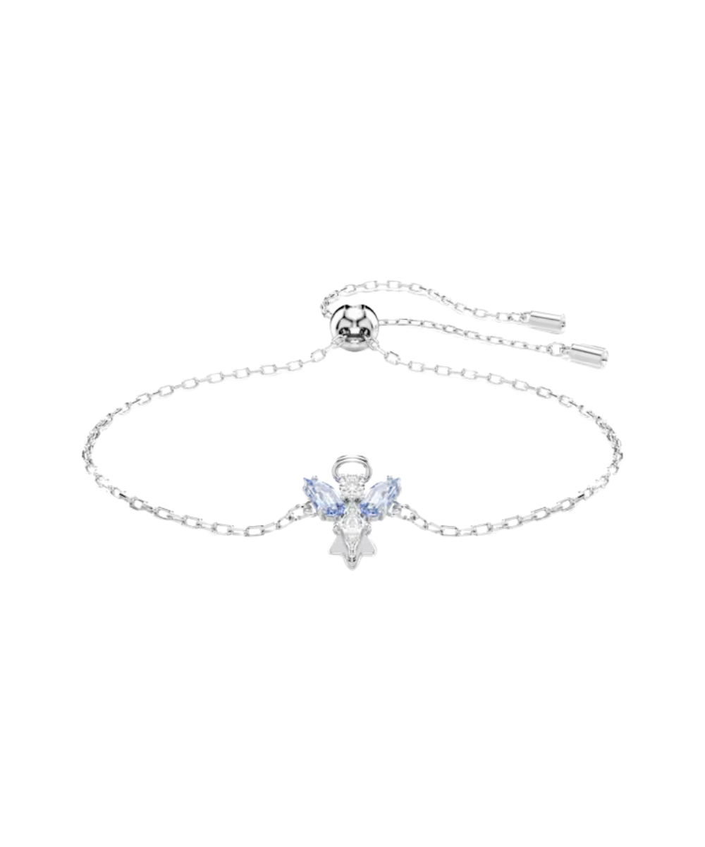 Bring a little magic into your wardrobe with this beautiful and meaningful bracelet. Designed with an angel-inspired motif, it features a captivating mix of grayish blue Swarovski Zirconia set against a rhodium plated chain. The adjustable sliding closure allows for a personalized adjustment, and the perfect fit for your most elegant celebrations.