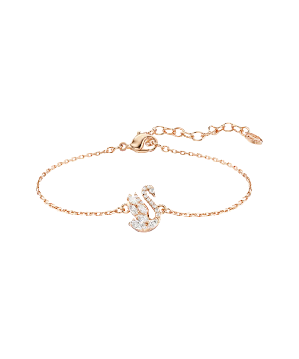 Signifying the values of love, joy, and eternal beauty, this delicate bracelet interprets the iconic Swarovski swan in rose gold-tone plating and a variety of Swarovski Zirconia in round and marquise cuts. The bracelet can be adjusted for size via the elongation and can be worn with the matching pendant for a sophisticated combination.