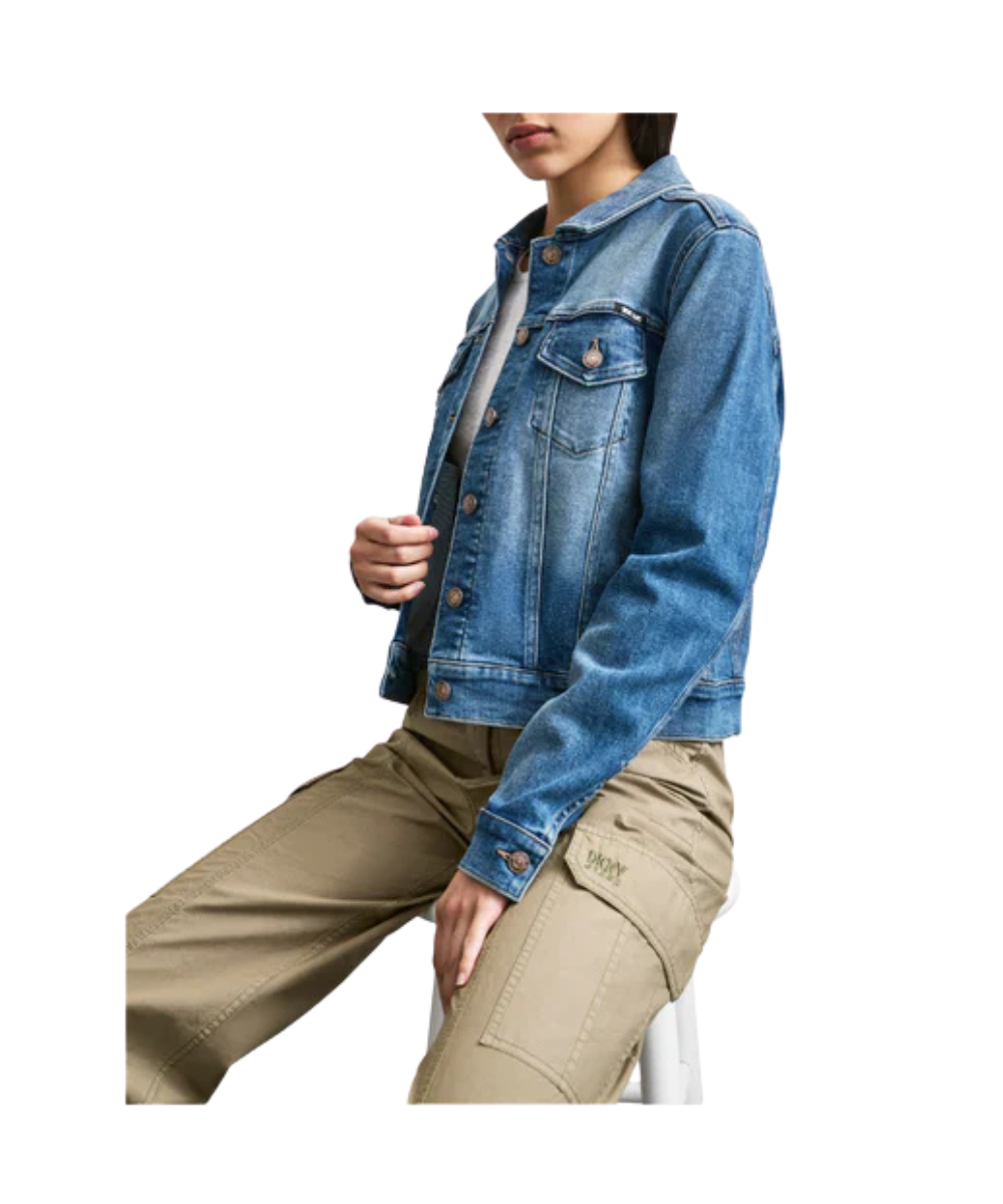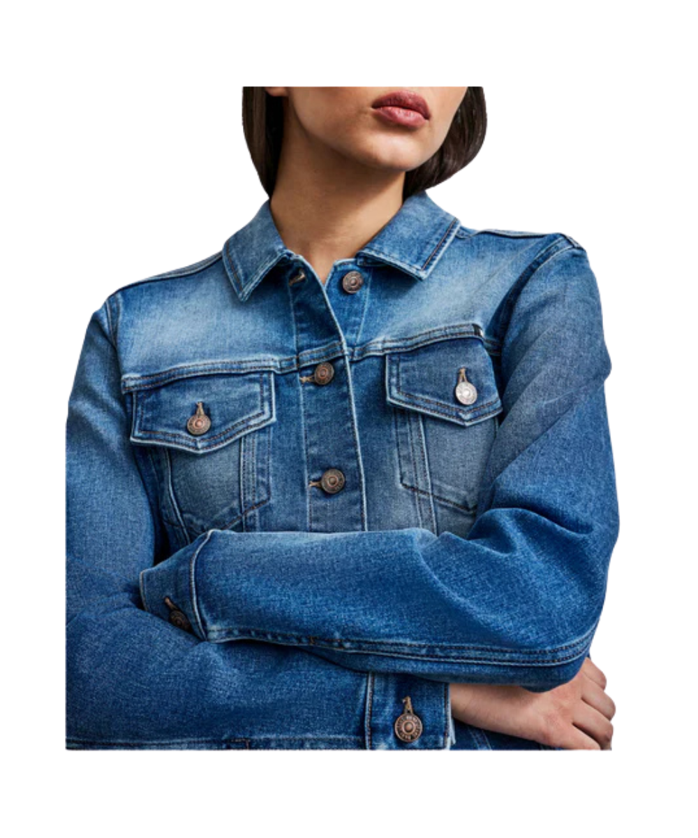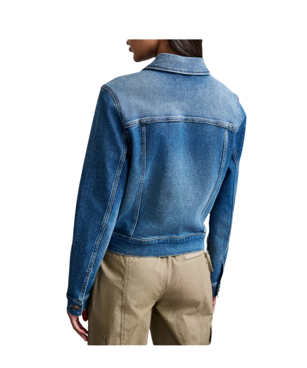 Layer on this denim trucker jacket for instant cool. We made this closet must-have with just the right amount of stretch to allow for easy movement and versatility.