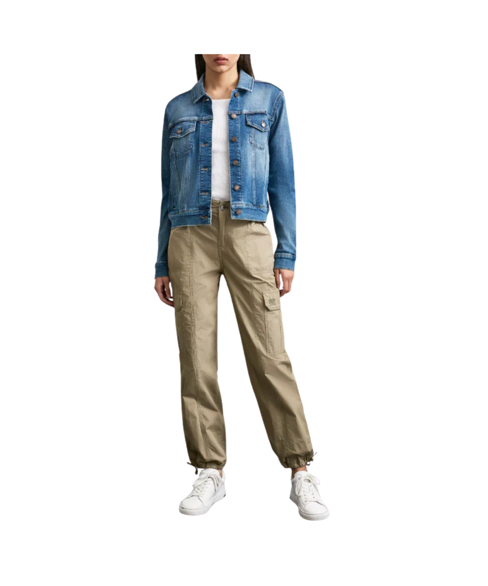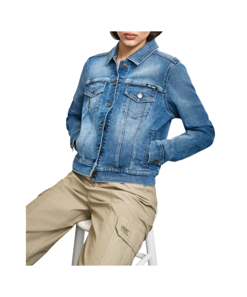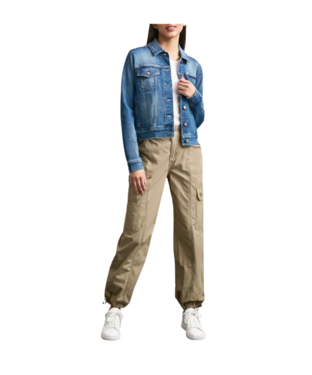 Layer on this denim trucker jacket for instant cool. We made this closet must-have with just the right amount of stretch to allow for easy movement and versatility.