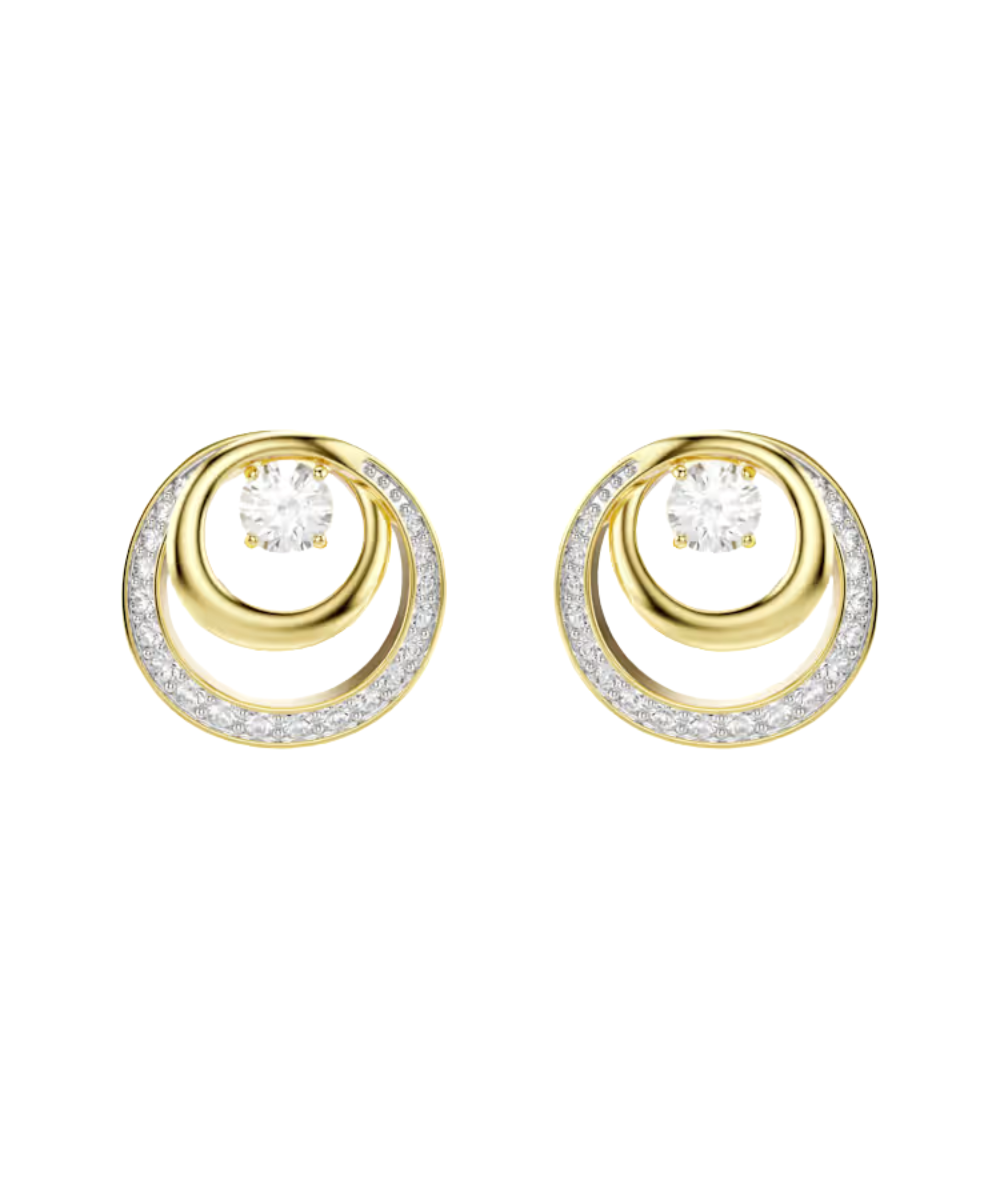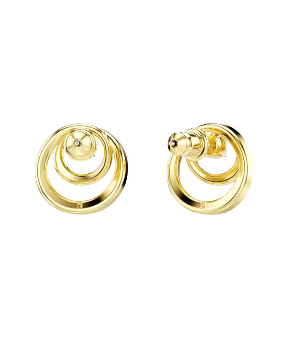 Embrace the circular style of these gold-tone plated Hyperbola earrings. Each hypnotic piece features a central Swarovski Zirconia surrounded by metallic spirals and glittering pavé. Wear them with a matching necklace or a ring to emphasize the modern sophistication.