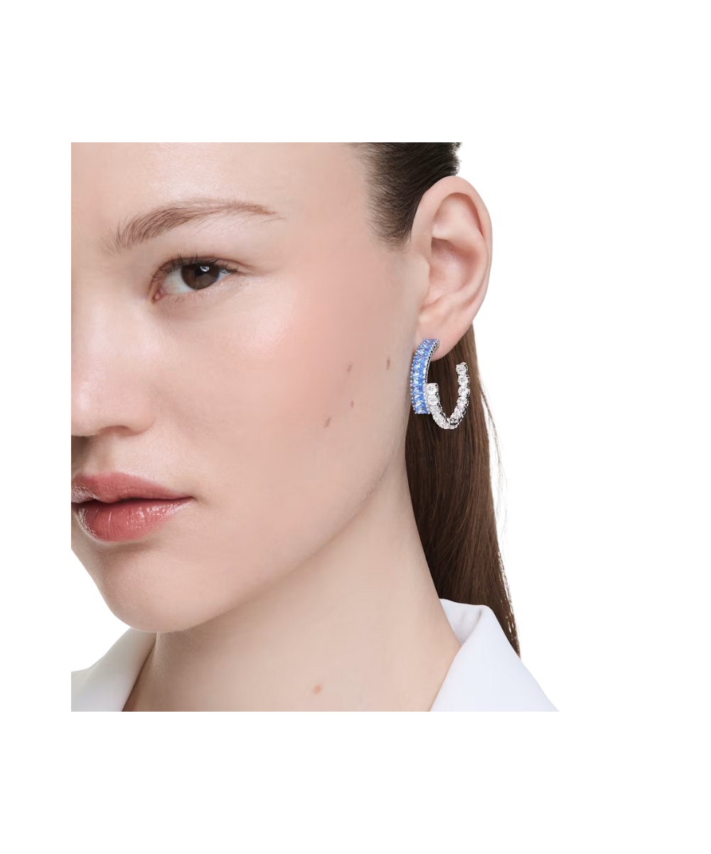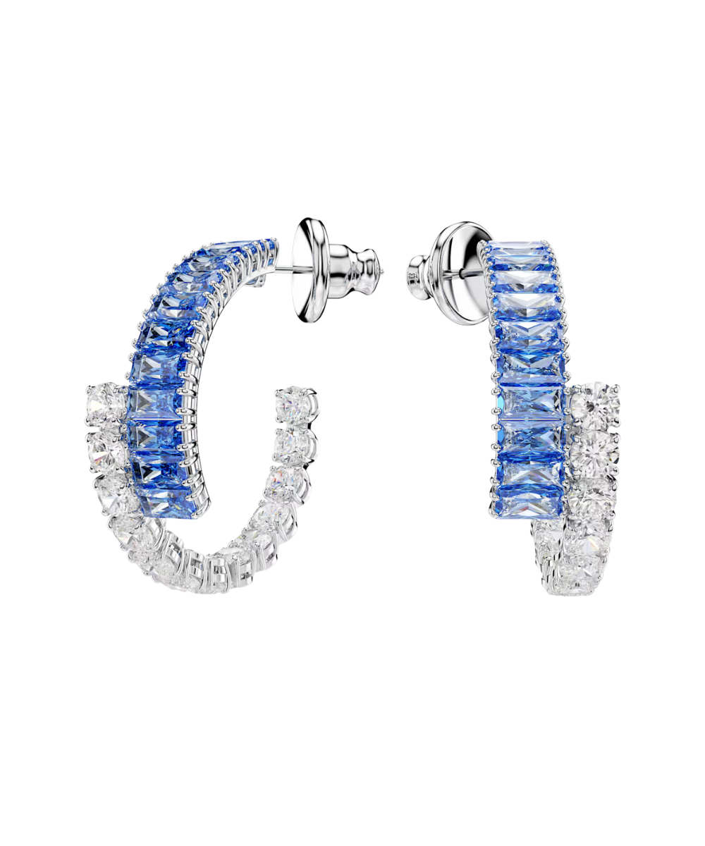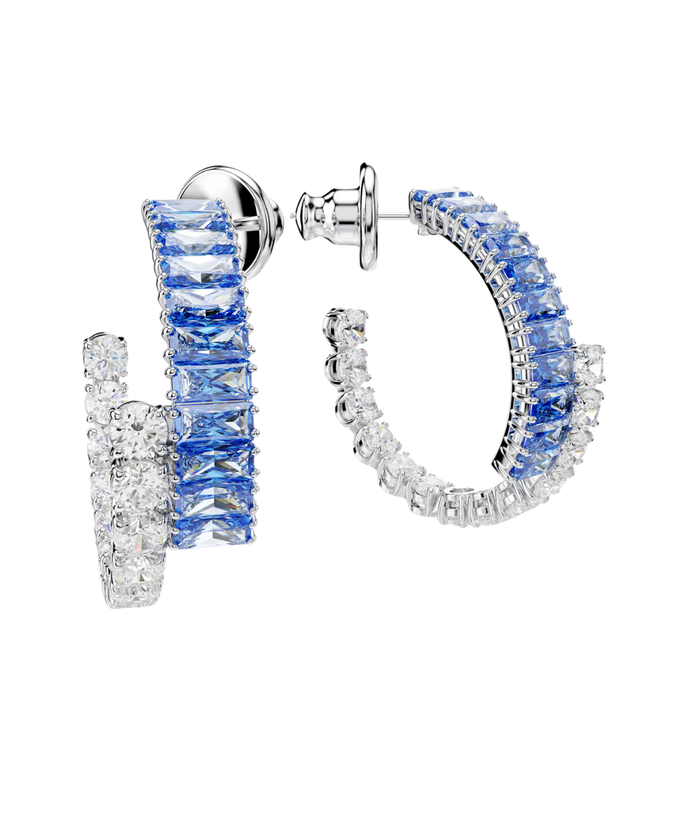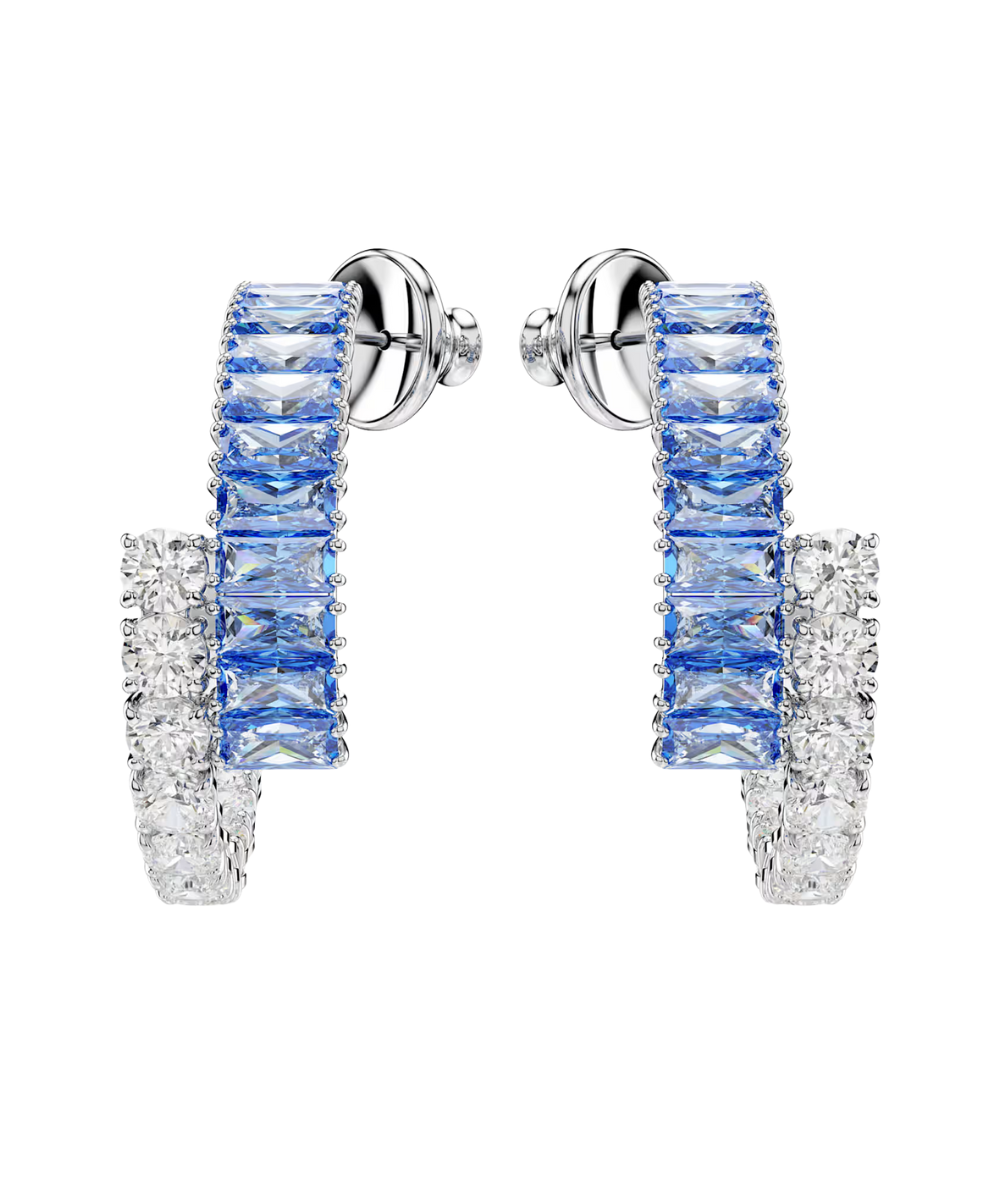Color your style with the vibrant design of these Matrix earrings. Each piece is crafted for a sleek appearance and features clear and blue Swarovski Zirconia in a vivid mix of round and baguette cuts. These earrings can be worn with matching Matrix pieces to heighten the color and light in whatever you wear.