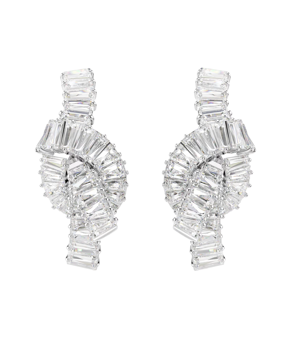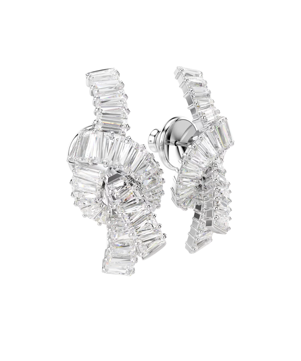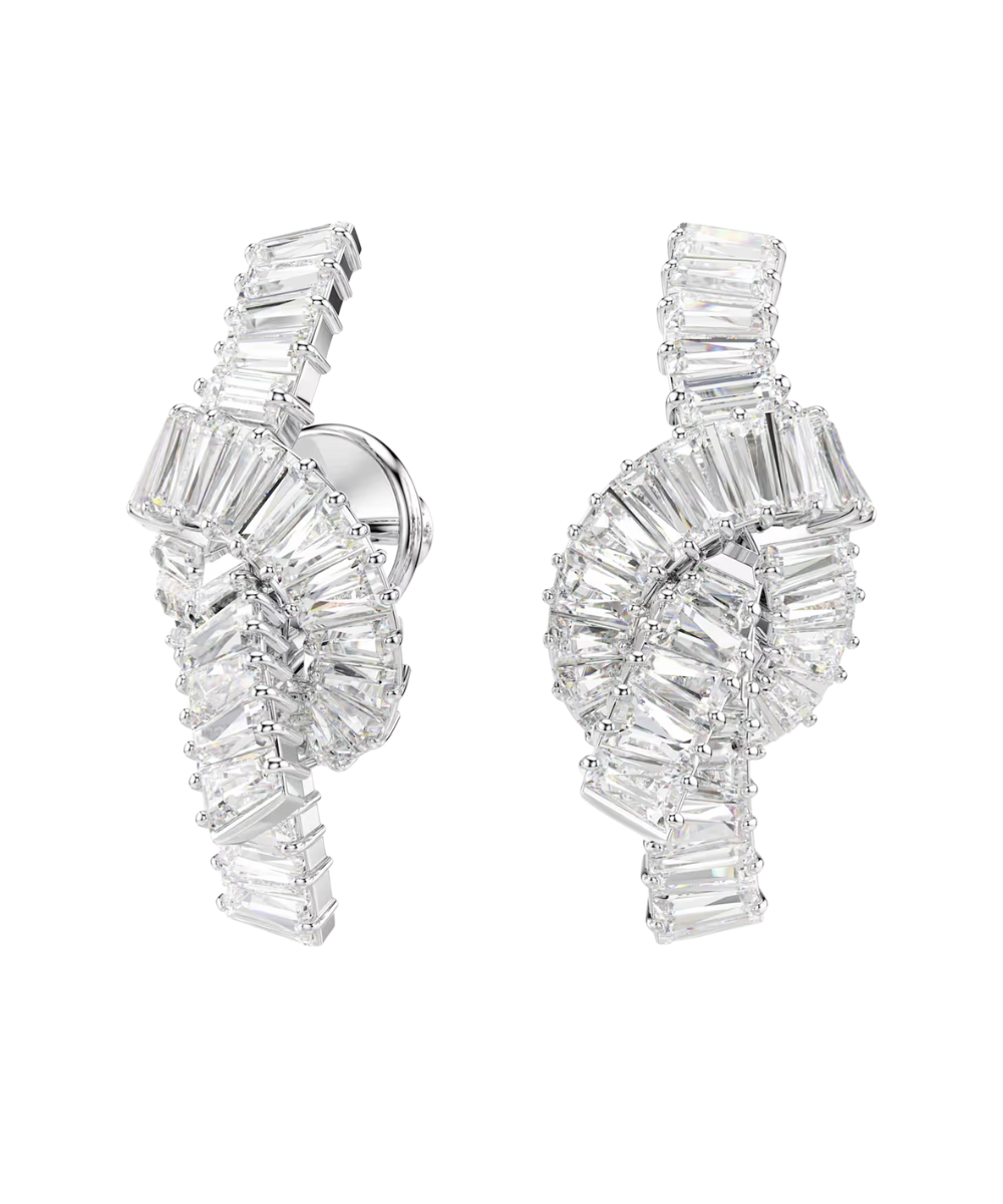 Signifying an unbreakable bond, these Matrix earrings are designed with a unique woven style. Taking the form of a ribbon, each twisted motif is rhodium plated and features a sophisticated adornment of baguette-cut Swarovski Zirconia in prong settings. Reach for these earrings when sophistication is called for – and pair them with the matching Matrix jewelry pieces for a coordinated look.