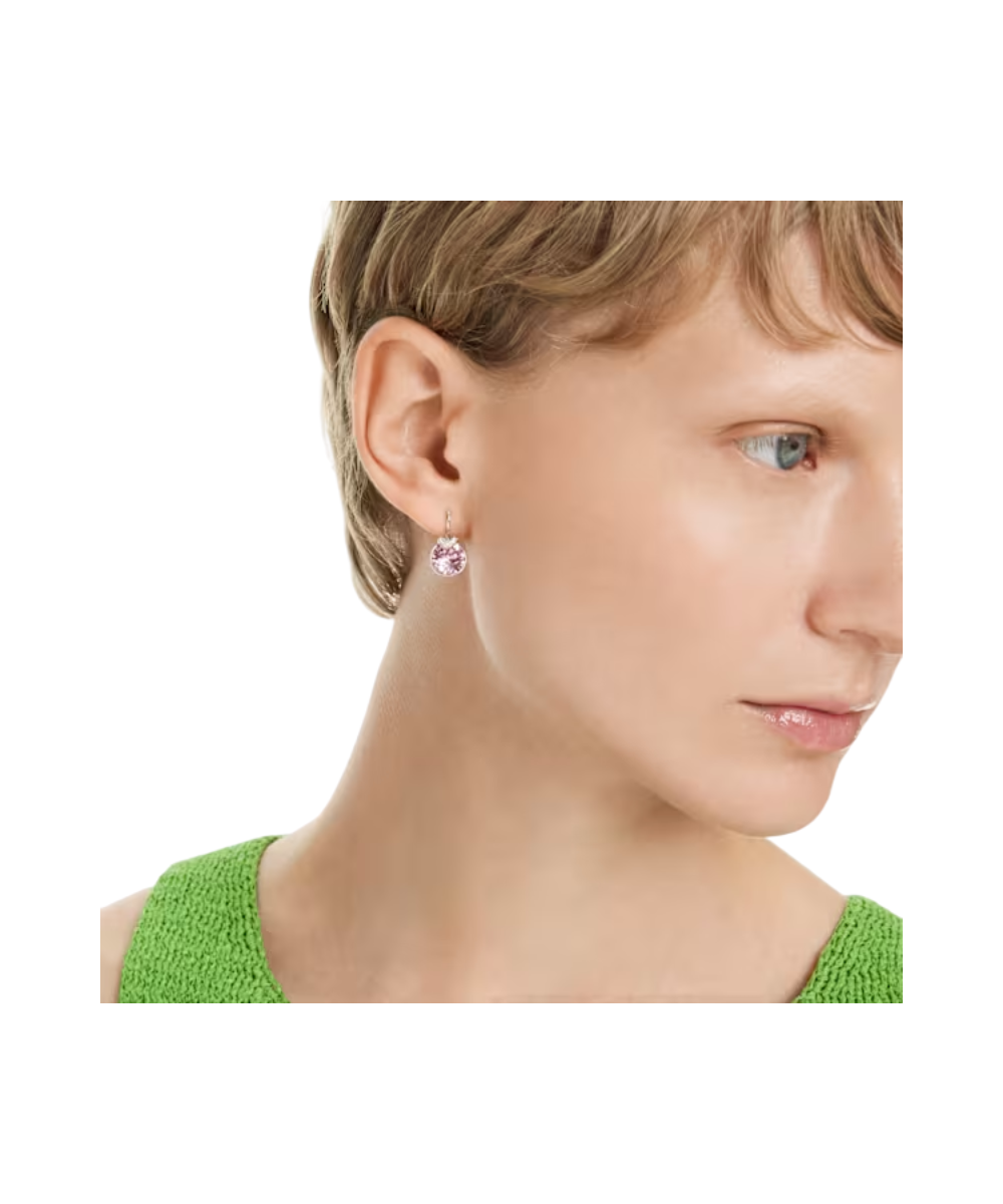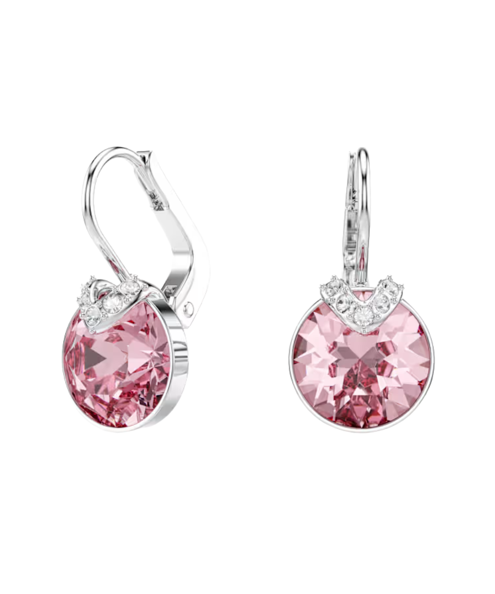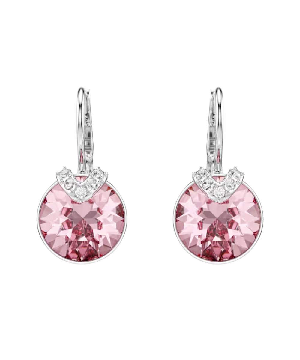 Infuse some color into your everyday wardrobe with this captivating pair of pierced earrings. Each rhodium plated piece is brought to life with a round-cut crystal in pink, creating a look of pure joy. A perfect choice for your day-to-night styling, these earrings can be worn together with a matching pink pendant.