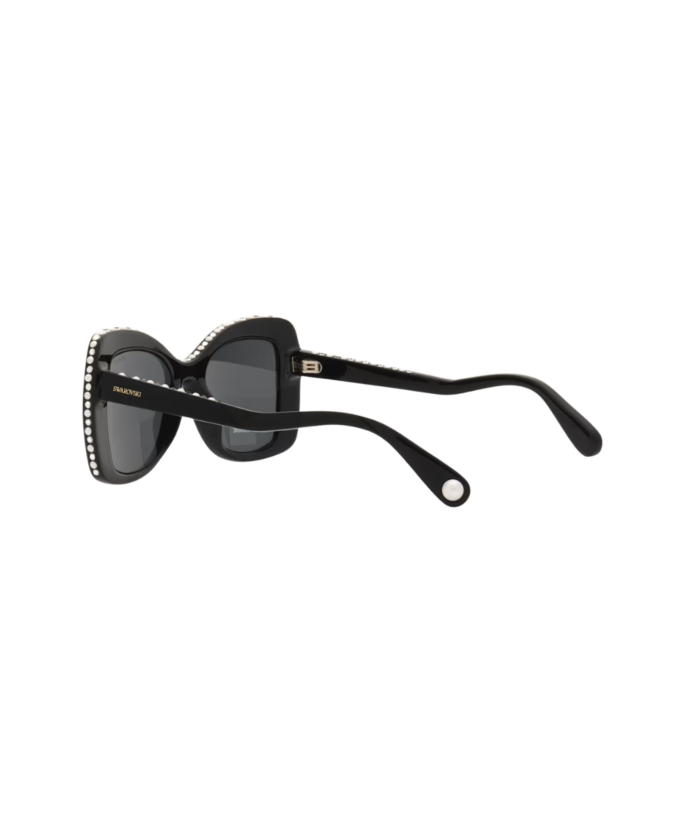 With their large size and luxurious decoration, these Swarovski sunglasses give a touch of Hollywood glamour. The black butterfly-shape frames are enriched with alternating clear crystals and white Swarovski Crystal Pearls and feature dark gray lenses for classic sophistication. Wear them anytime to make a bold style statement.