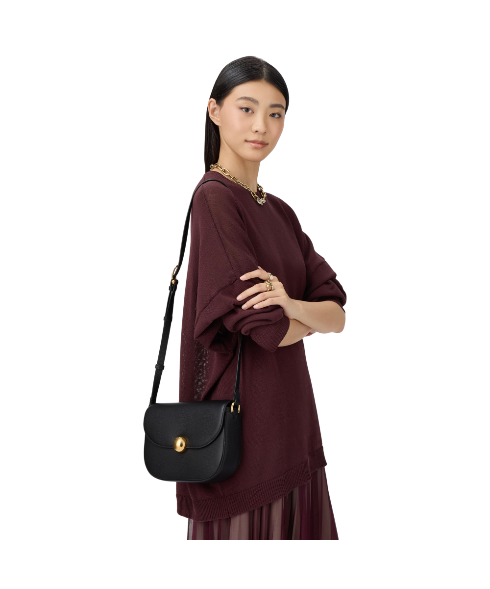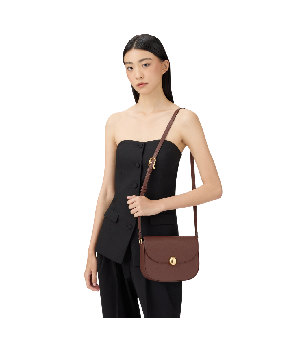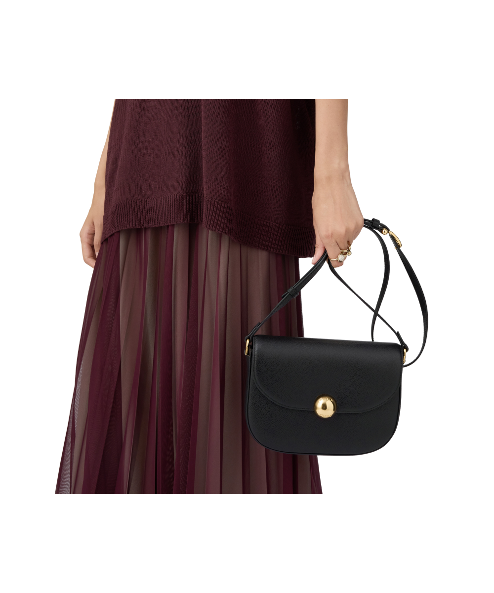 The perfect crossbody style with timeless allure, Furla Moonlight features a distinctive saddle design with soft rounded lines. Its fine leather features a subtle textured finish, and its compact silhouette is elevated by a flap and magnetic button closure – embellished with the iconic Sfera logo.