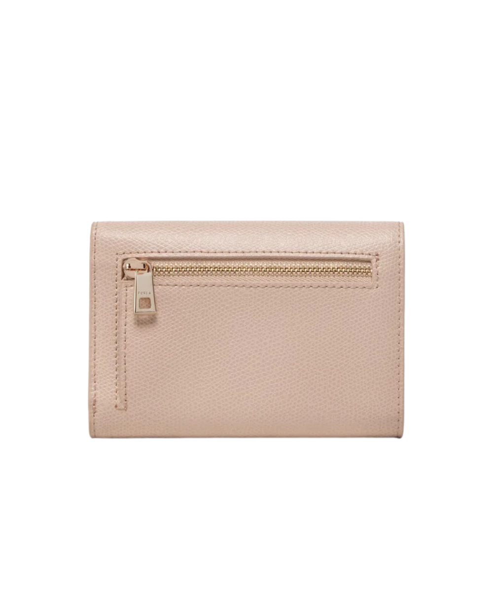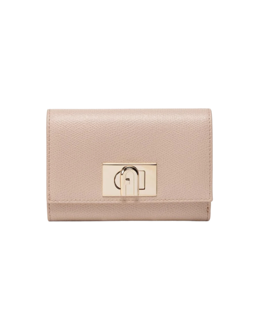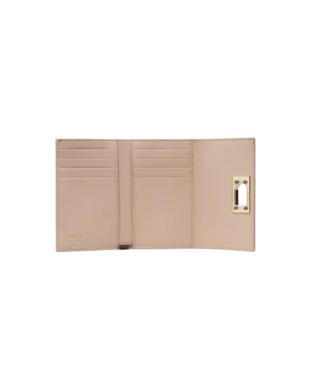 This Furla 1927 compact wallet is distinctive, being crafted from luxurious printed leather with a grained finish. Soft to the touch and elegant in appearance, it is carefully organised inside to hold banknotes, credit cards and ID. The twist closure on the outside with the iconic Arch logo is testament to the perfect balance of functionality and attention to detail that this piece embodies.