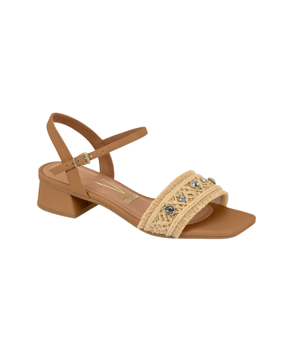 Elevate your footwear collection with these sophisticated block heel sandals, where refined craftsmanship meets contemporary design. The woven raffia-style front strap is beautifully adorned with sparkling crystal embellishments, creating an eye-catching focal point. A modern square toe silhouette pairs seamlessly with an adjustable ankle strap for a secure, personalized fit. Built on a sturdy mid block heel, these sandals deliver exceptional stability and comfort for extended wear. Versatile enough to complement both daytime elegance and evening sophistication, they're the perfect finishing touch for any occasion.