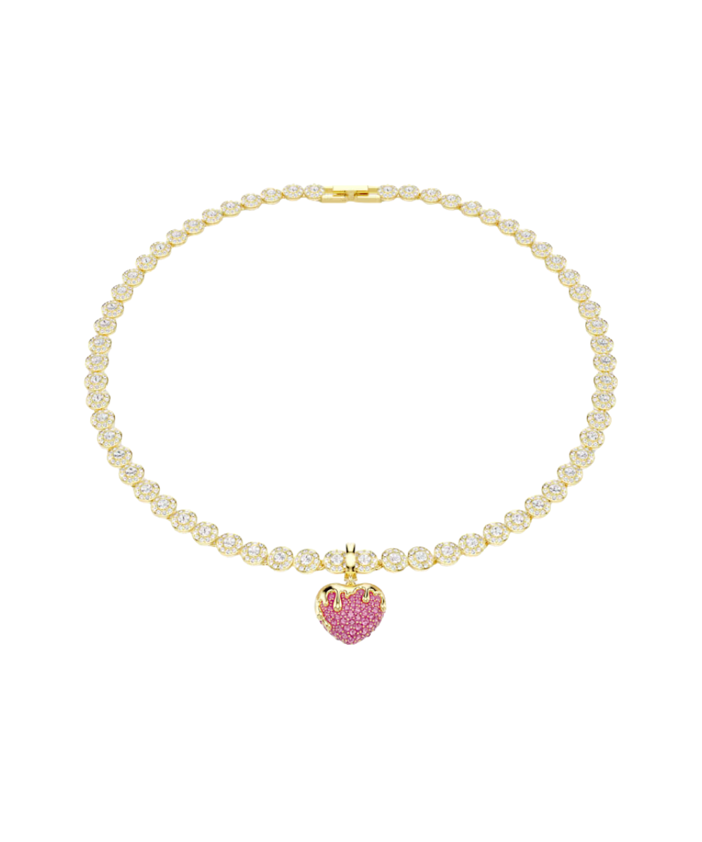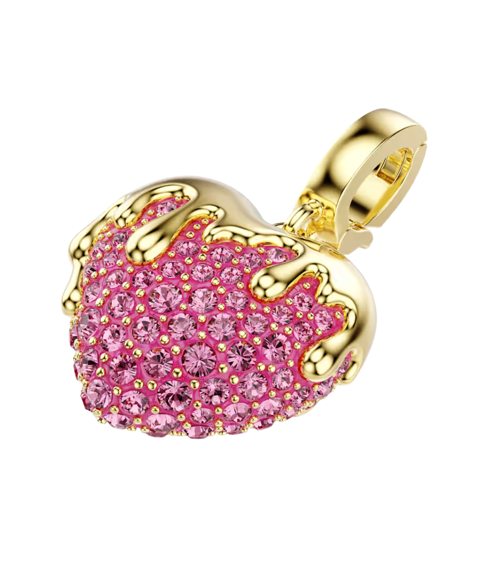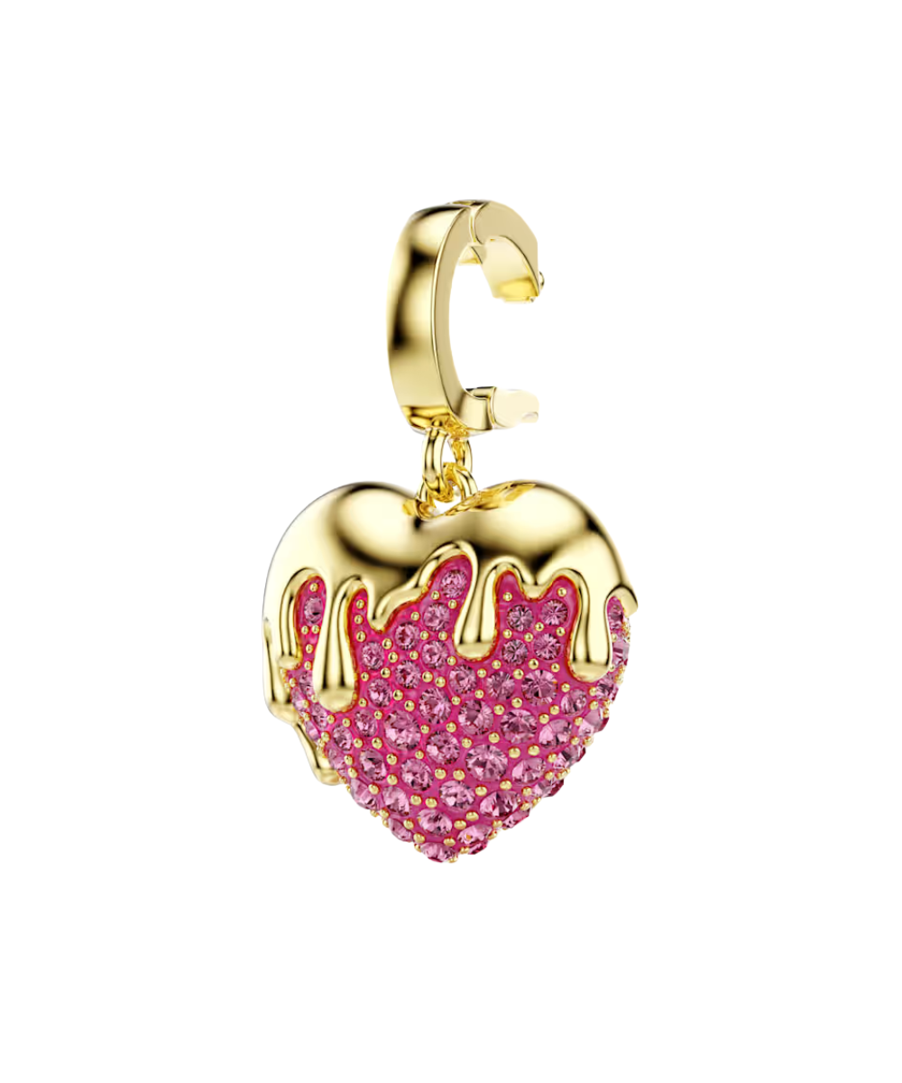 Adding a personal touch to your daily style, this love heart charm is an ideal choice for those with a romantic spirit. Decorated in clear crystals and with a luxurious gold-tone plated glaze, the pink creation features a custom-designed clasp, allowing you to wear the charm on various necklaces and bracelets.