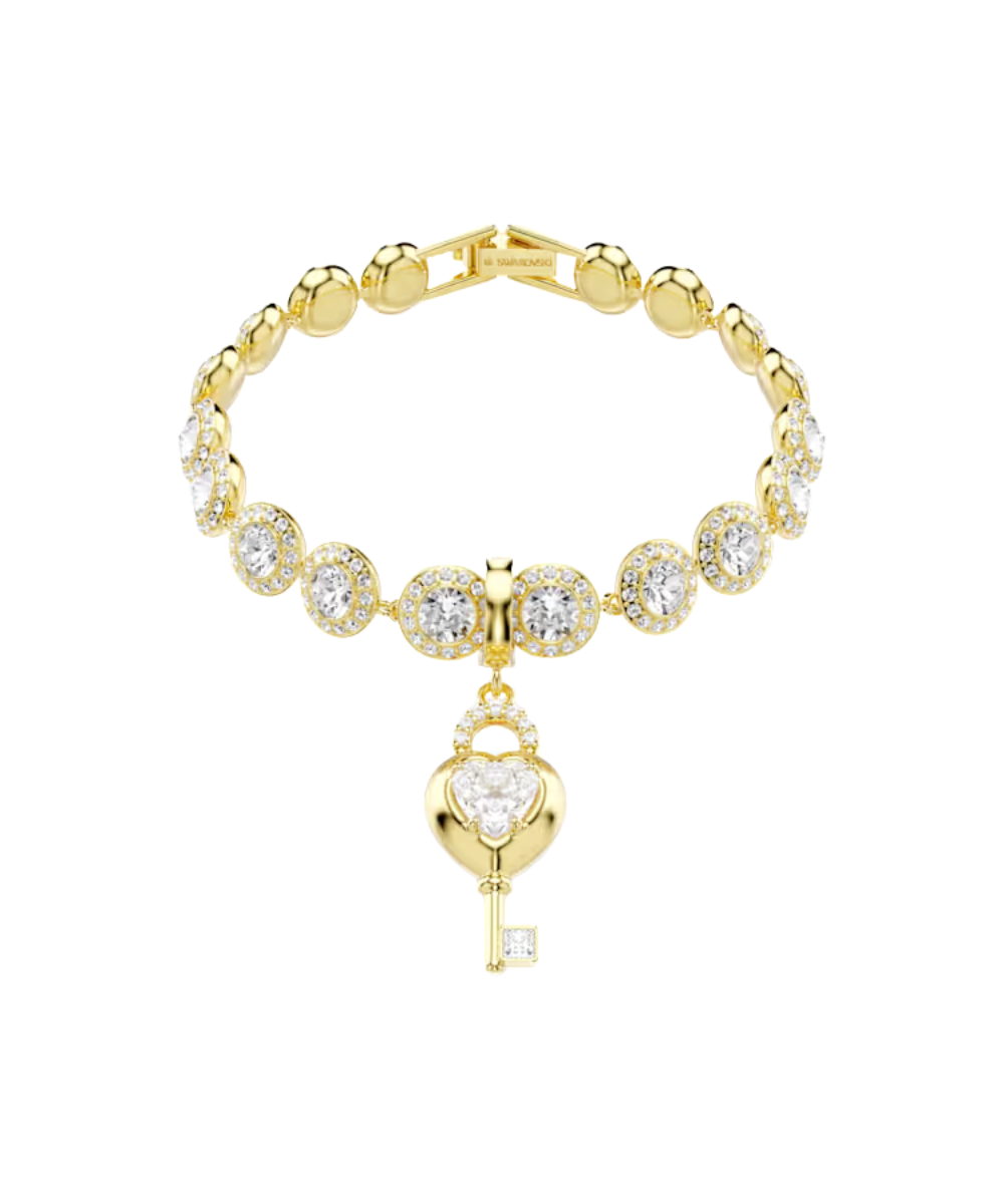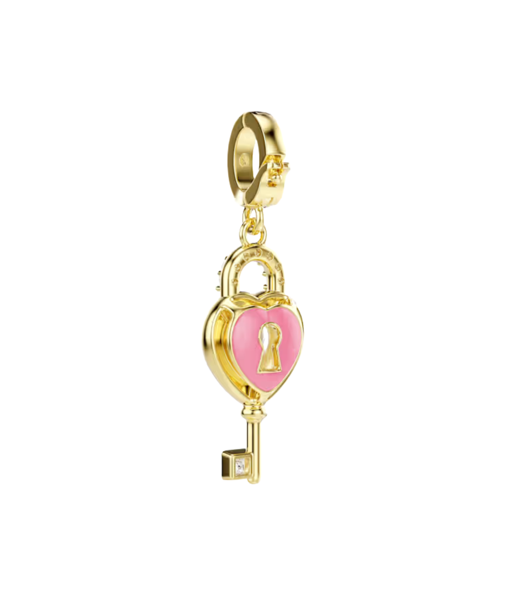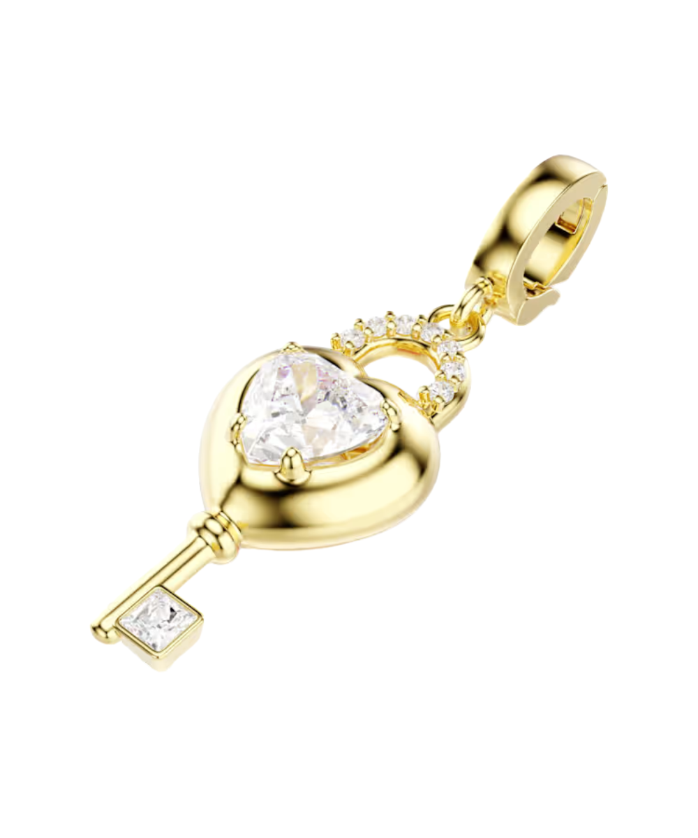 Adding a personal touch to your daily style, this locket-inspired heart and key charm is an ideal choice for those with a romantic spirit. Decorated with a central Swarovski Zirconia, the gold-tone plated creation features a custom-designed clasp, allowing you to wear the charm on various necklaces and bracelets.