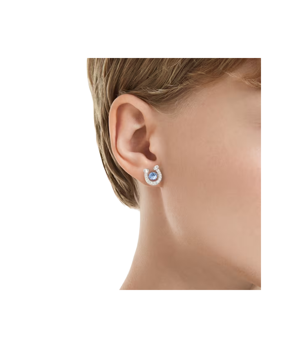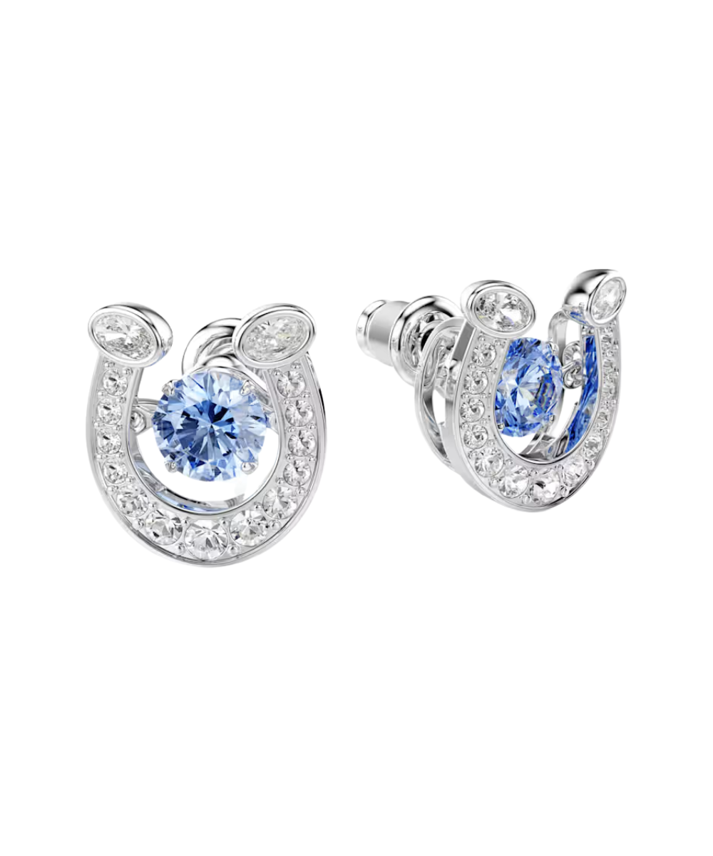 Embrace the free spirit of the horse with these stunning Swarovski earrings. Each rhodium plated horseshoe features a blue dancing stone at the center that creates a constant play of light. A colorful gift for those chasing success.