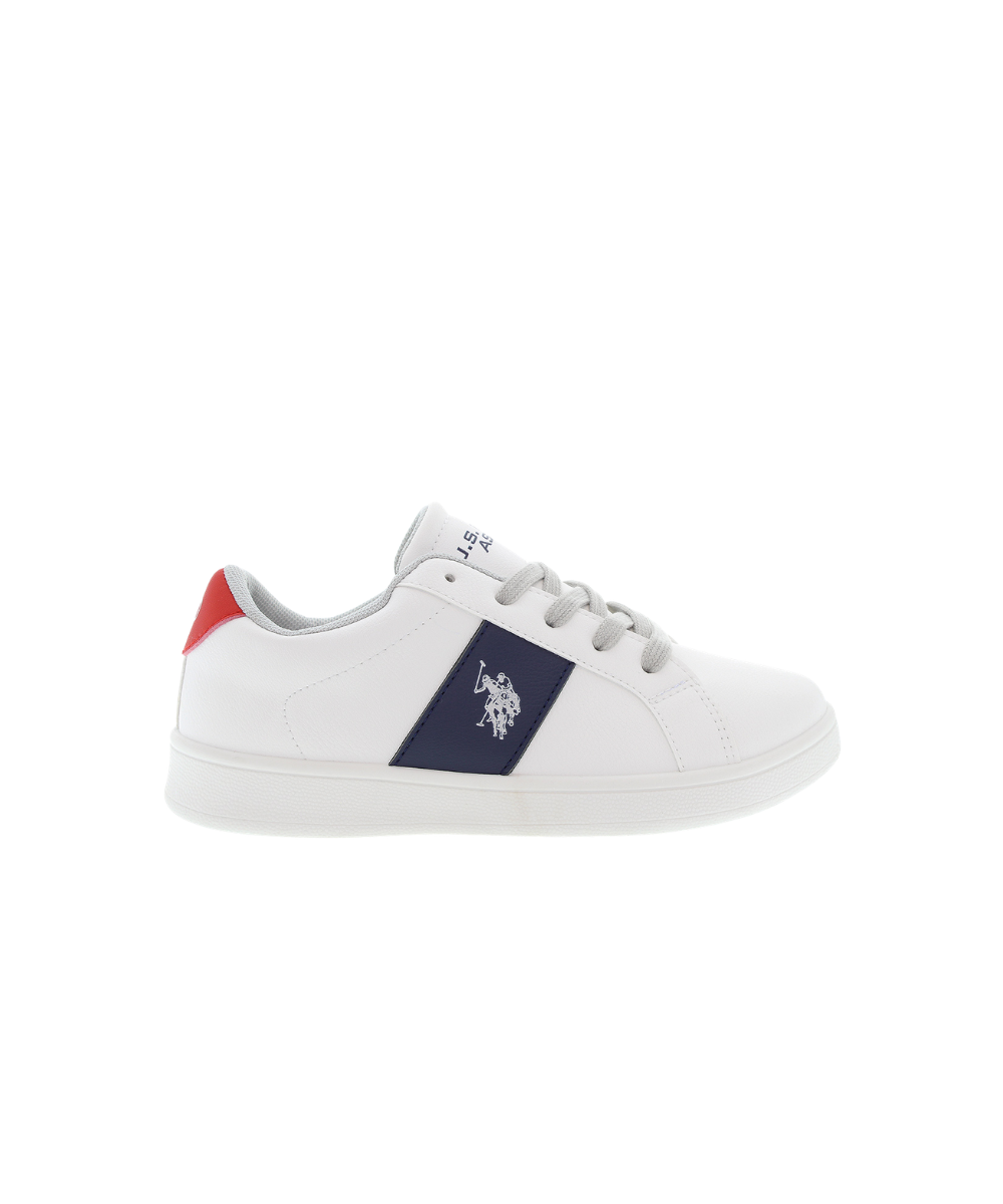 U.S. Polo Assn. kids’ sneakers combine sporty style with everyday comfort. Designed with a clean low-top silhouette, these trainers feature smooth panels, contrast details, and the signature double horsemen logo on the side. The lace-up fastening provides a secure fit, while the cushioned sole ensures comfort for all-day wear. Perfect for school, play, or casual outings, they pair easily with jeans, shorts, or everyday outfits.