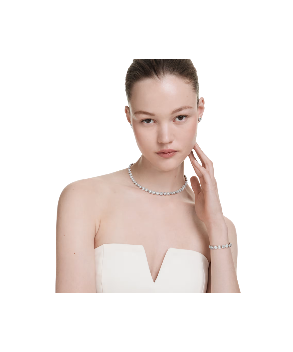 Treat yourself or someone special to a new jewelry box staple with this beautiful necklace and bracelet set, which is now available in the classic, always easy-to-wear combination of crystal and rhodium plating. The timeless design would make an ideal gift, or a stunning bridal accessory.