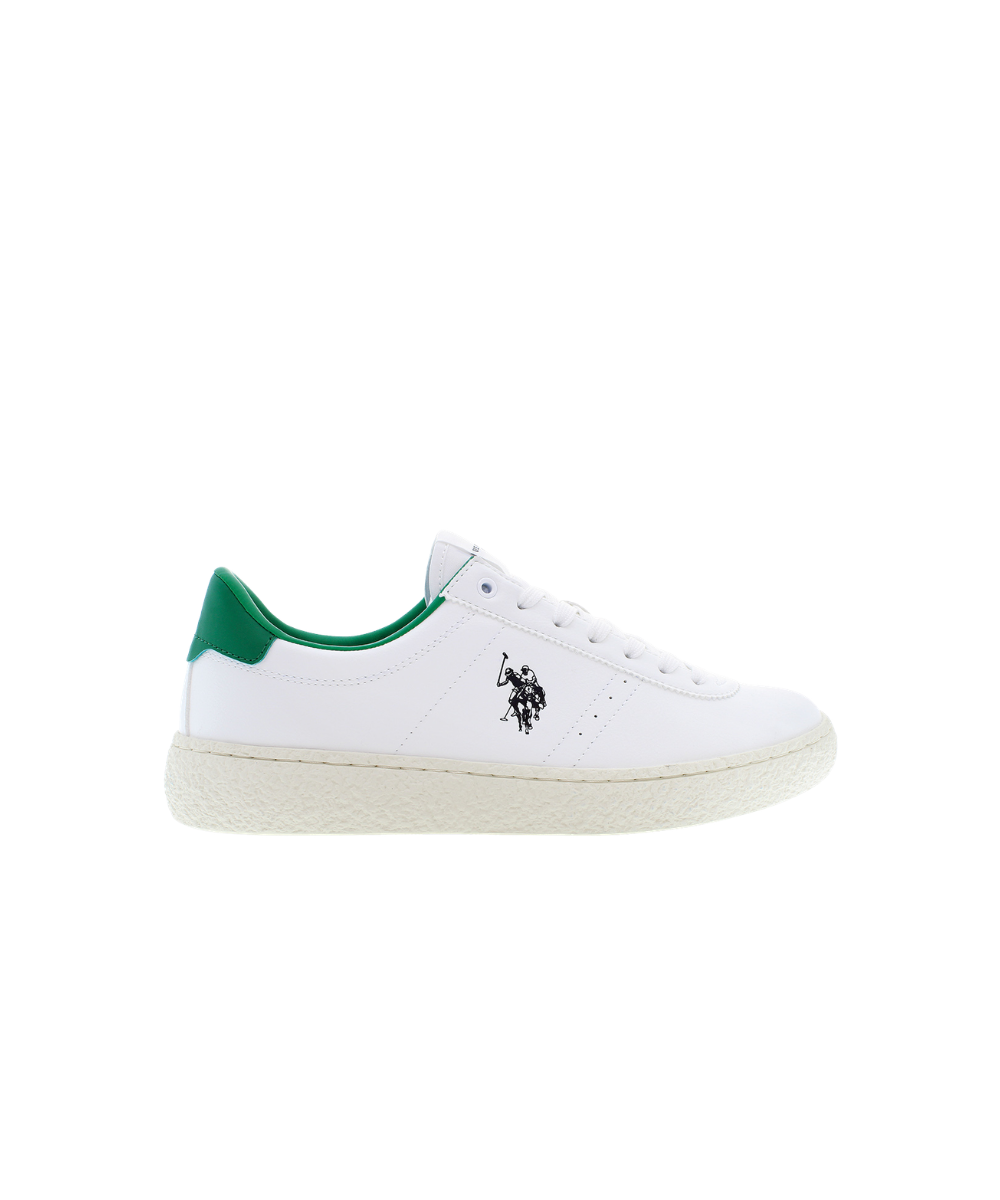 U.S. Polo Assn. casual sneakers with a clean, classic look and everyday comfort. Designed with a smooth upper and subtle perforated details, these trainers feature the iconic double horsemen logo on the side for a signature finish. The lace-up fastening ensures a secure fit, while the textured rubber sole provides reliable grip and durability. Easy to pair with jeans, shorts, or casual outfits, making them a versatile choice for daily wear.
