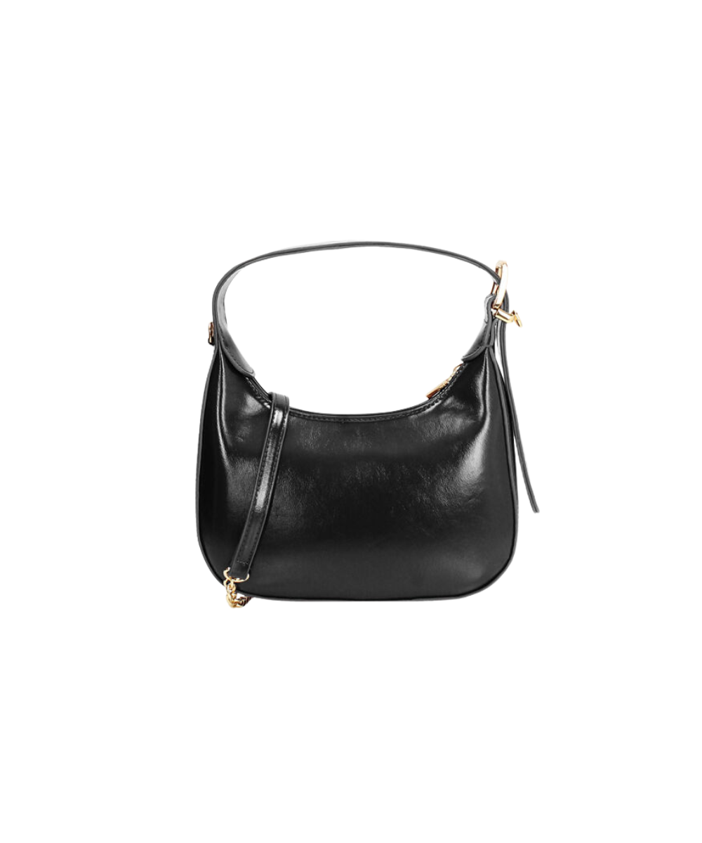Elegant and contemporary, this black mini bag is the accessory that transforms every look. Crafted from a shiny material that catches the light, it features a removable shoulder strap for unparalleled versatility. With a compact size of 22 x 13.5 x 5.5 cm and an internal pocket, it's perfect for work or a night out. A must-have from the Primadonna Collection for those who want a touch of character in every outfit. Choose your style and make a statement with this unique bag.