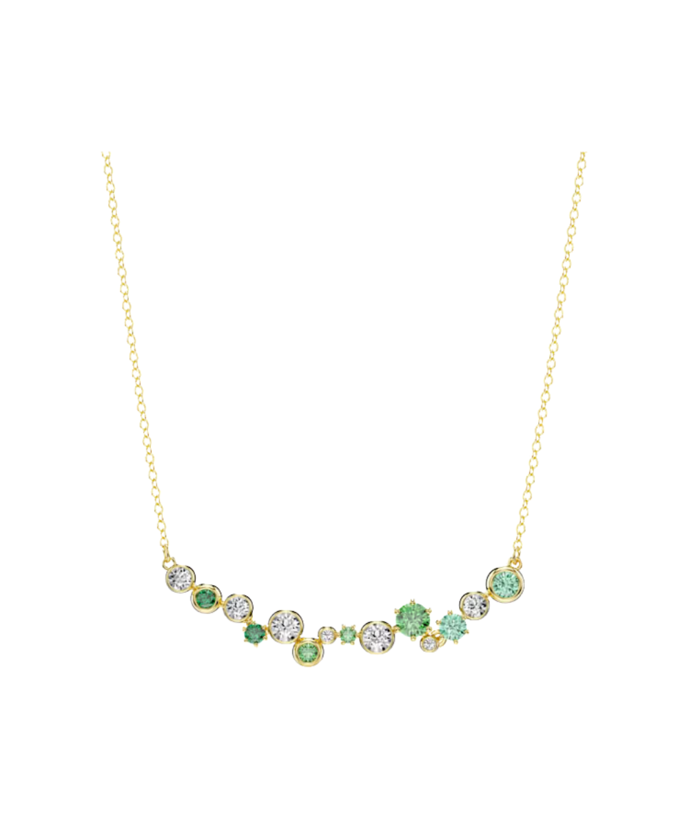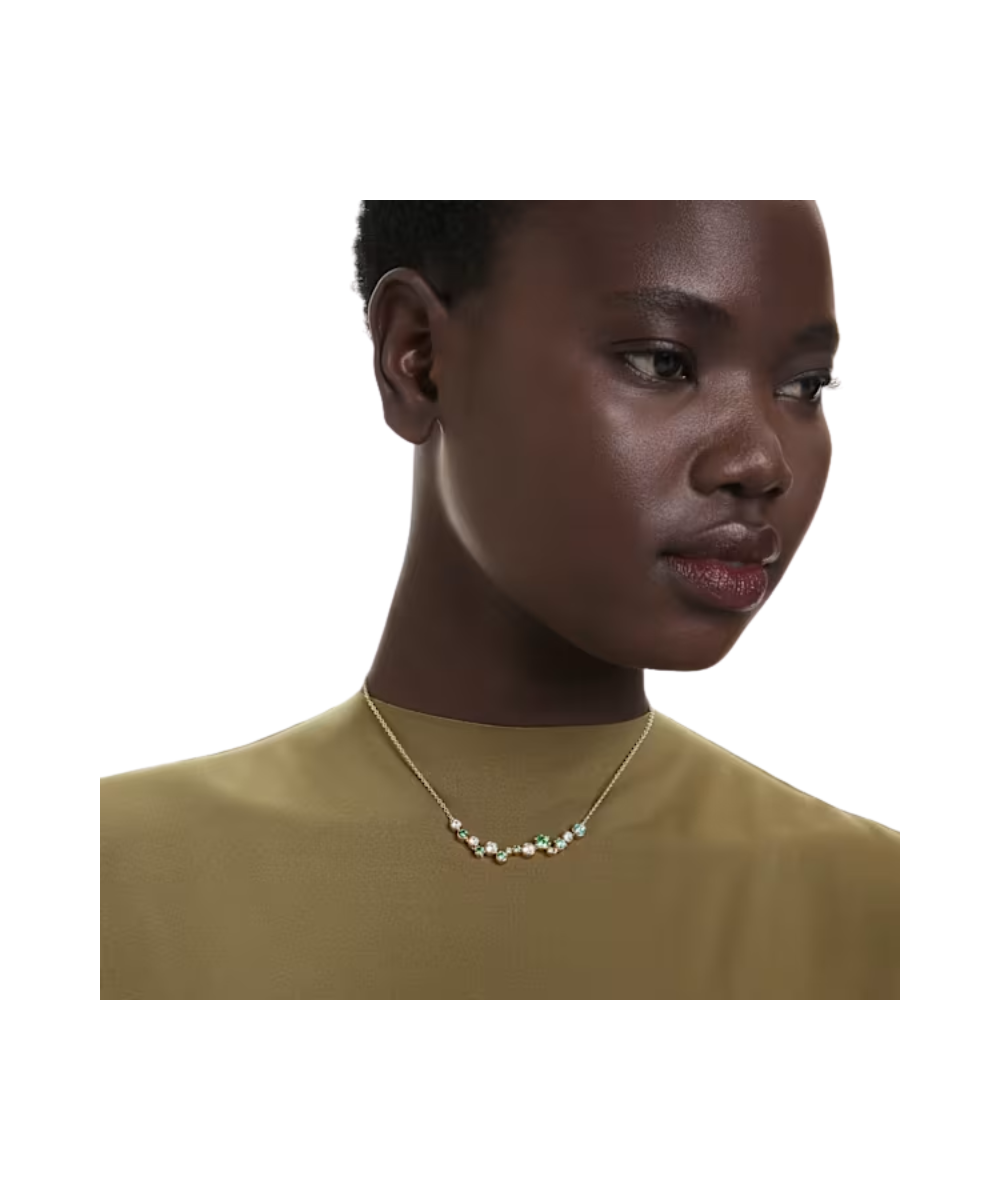 Energize your everyday wardrobe with this stunning Constella necklace in gold-tone plating. The starry design features a central display of clear crystals and green Swarovski Zirconia in various sizes and shades, each presented in a prong or bezel setting. This gleaming arrangement is set on a delicate chain and provides a perfect showcase of cosmic wonder. Wear it alongside a pair of matching Constella earrings.