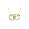 Embrace the spirit of unity with this pendant from the Dextera family. The rhodium plated features two interlinked tubular rings, one shimmering with all-over pavé. The delicate chain includes a single Swarovski Zirconia adorning the end for added luxury. Combining bold shapes with radiant clear crystals, this spellbinding piece will maximize your style.