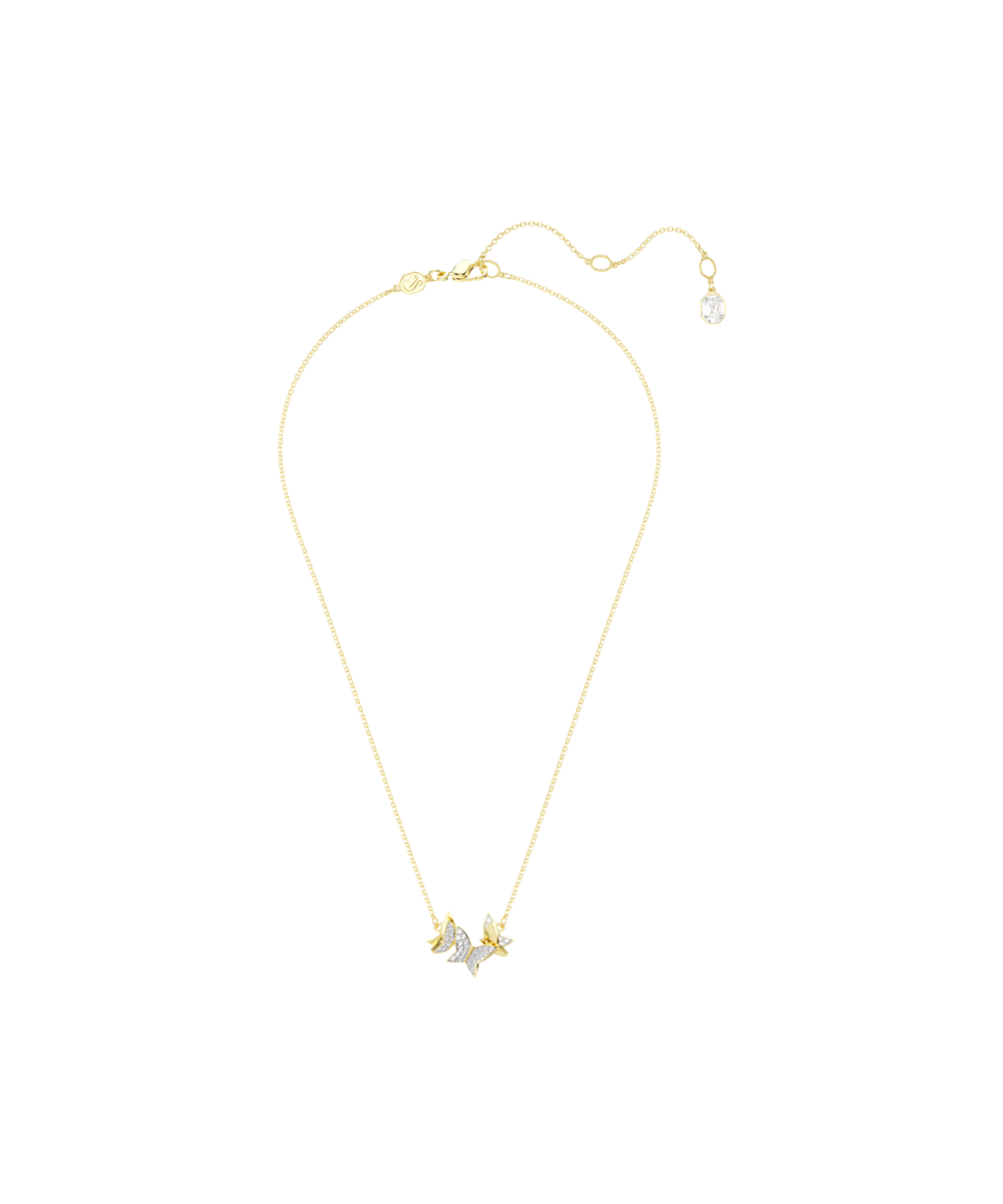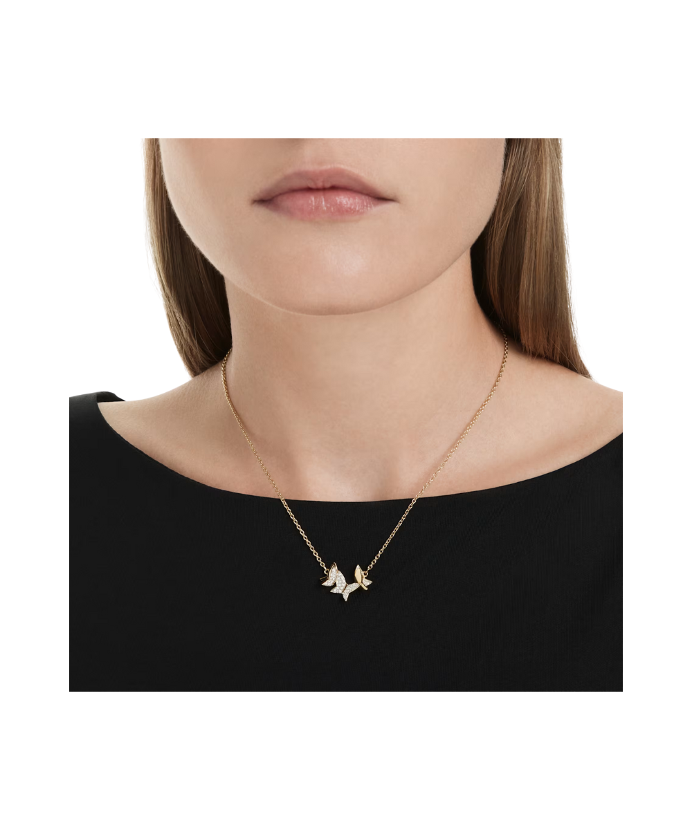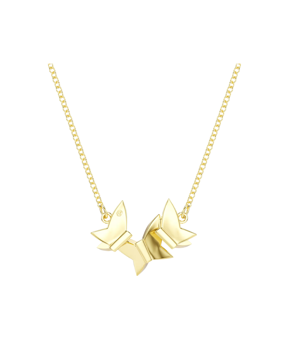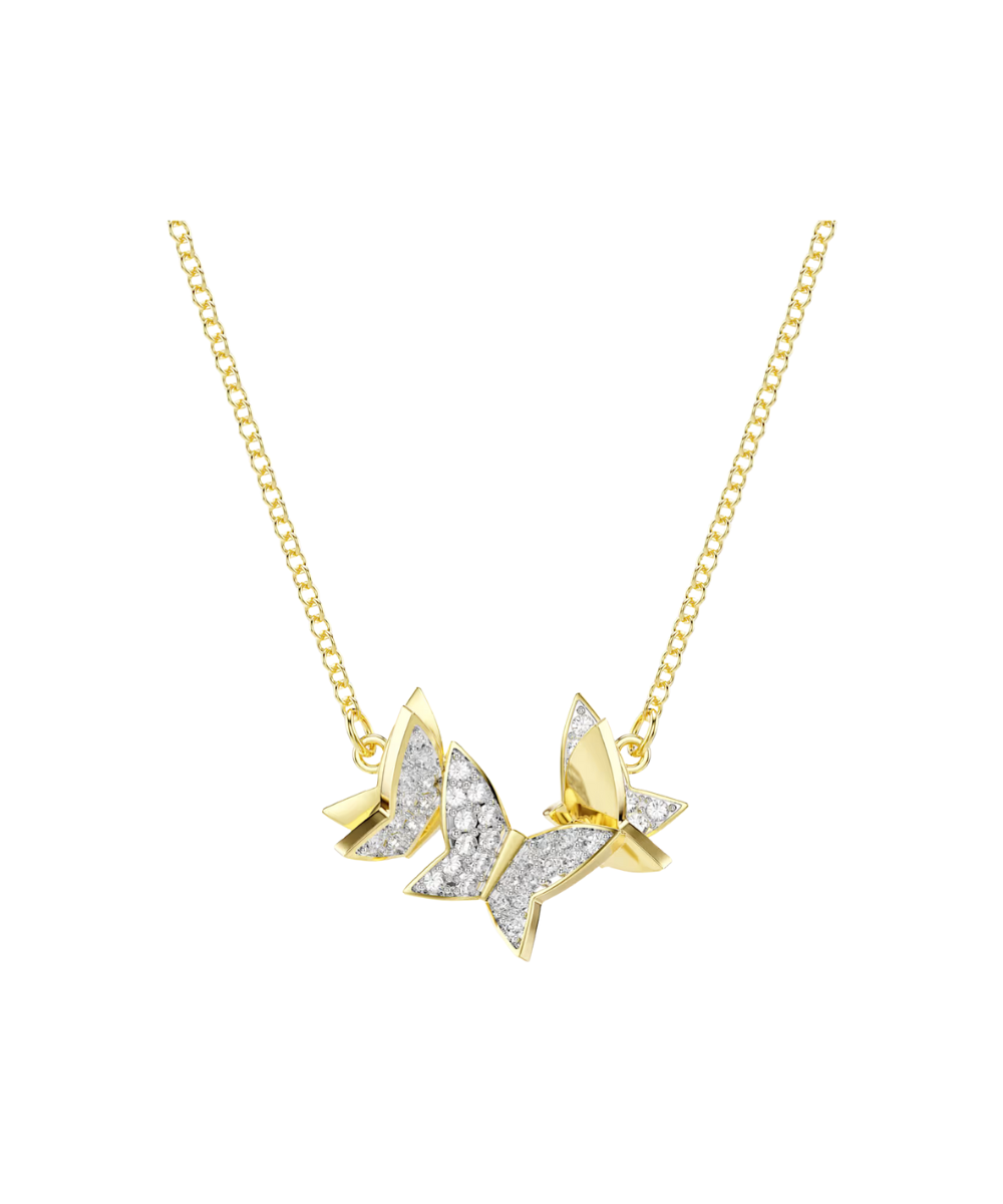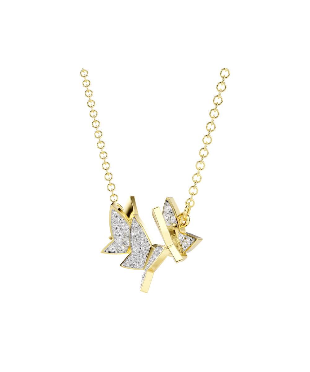 An elegant choice for every day, this delicate necklace will become a new wardrobe staple. It features shimmering pavé butterfly motifs suspended from a 18k gold plated chain. The perfect partner to white T-shirts, cashmere jumpers, denim or eveningwear – essentially, anything goes.