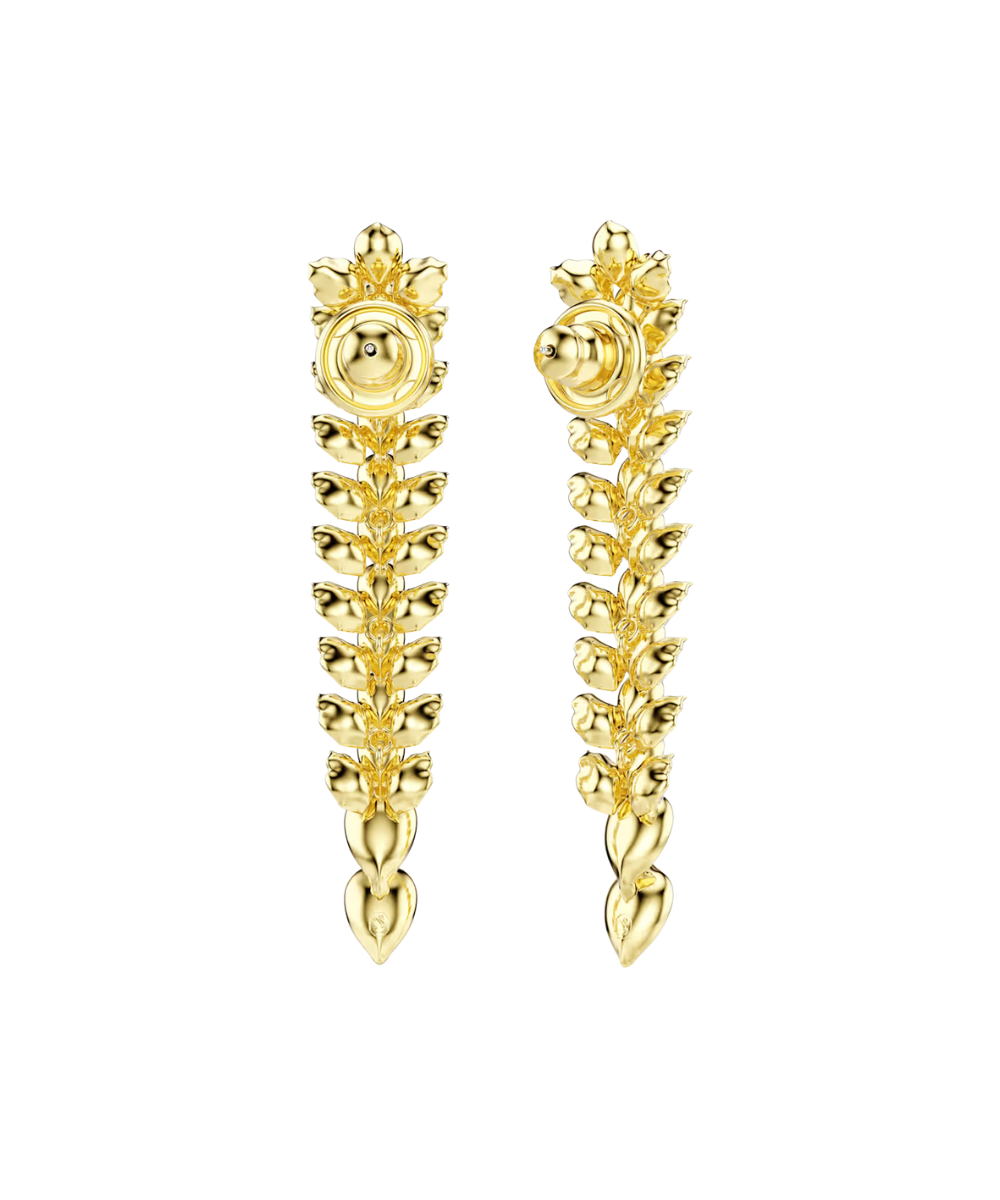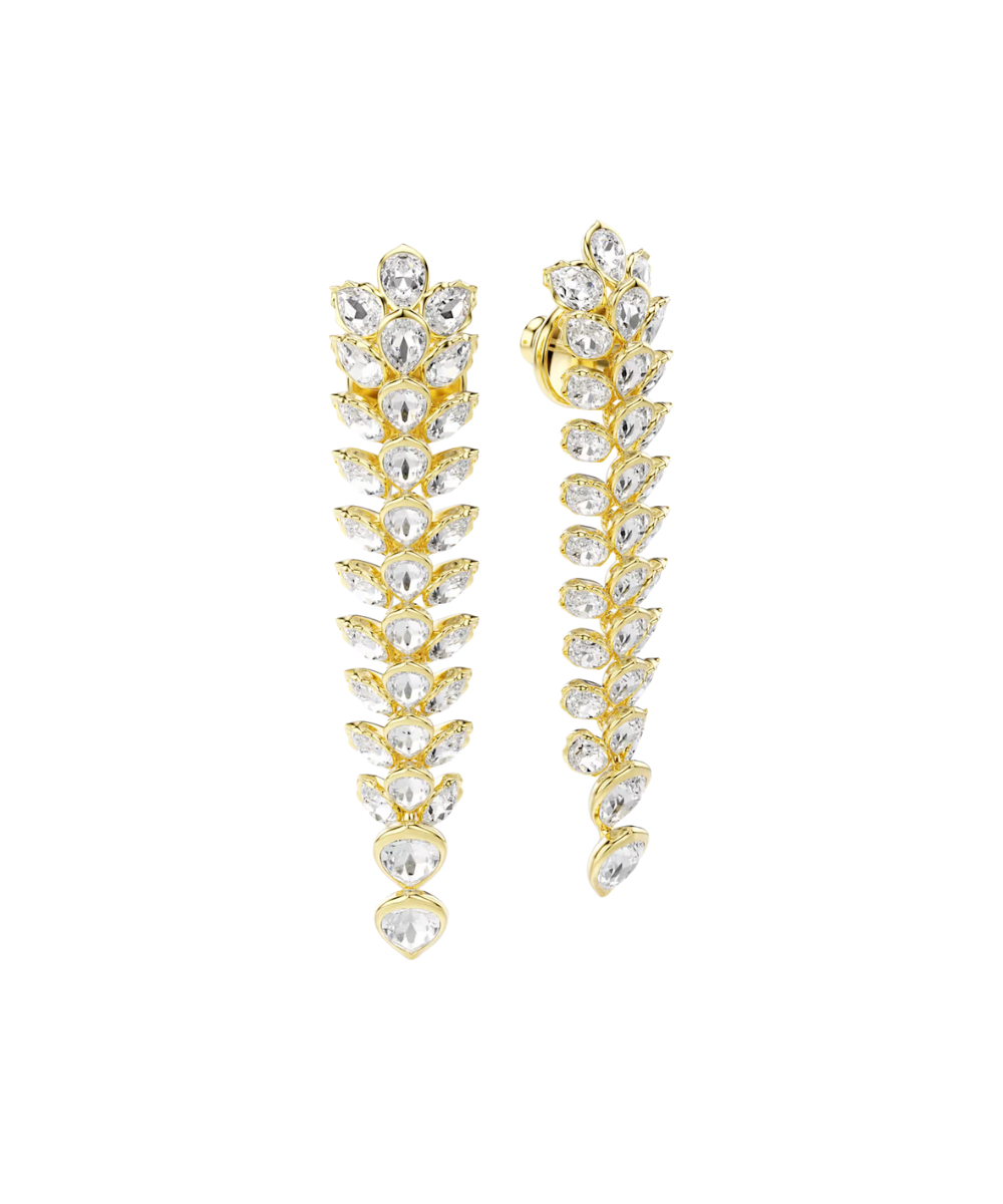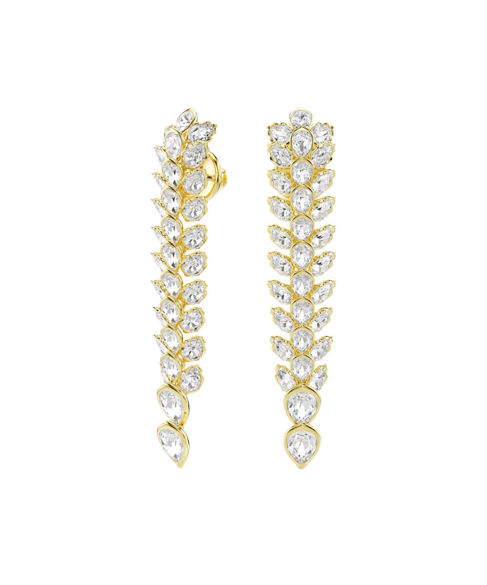 Set your style alight with the full luminosity of these long Idyllia earrings. Each gold-tone plated piece follows the expressive pattern of foliage, with a cascading drop of crystals in bezel settings. Adding a stunning effect to your most glamorous occasions, these earrings are the ultimate example of Swarovski savoir-faire and combine perfectly with a matching choker or bracelet.