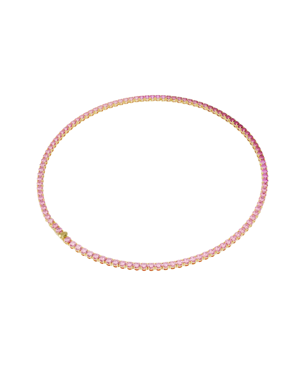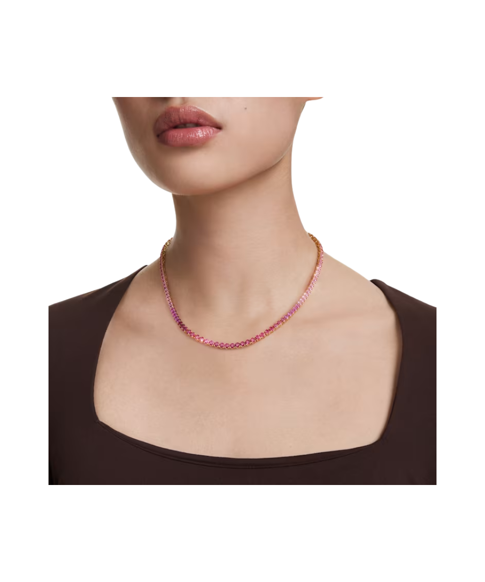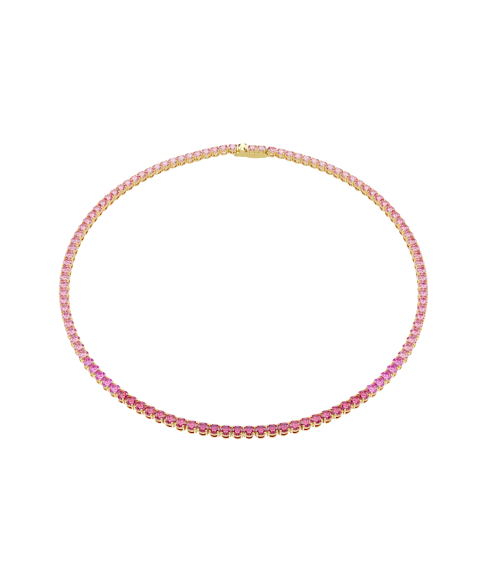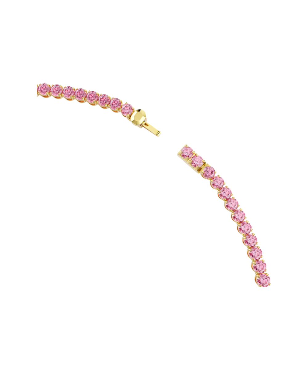 Delivering a vibrant pink shade, this necklace was made to mesmerize. The design features a full strand of round-cut crystals, all in a gold-tone plated setting that includes a secure and refined closure. The overall effect is one of uplifting beauty, allowing you to turn on the charm, whether by day or night.