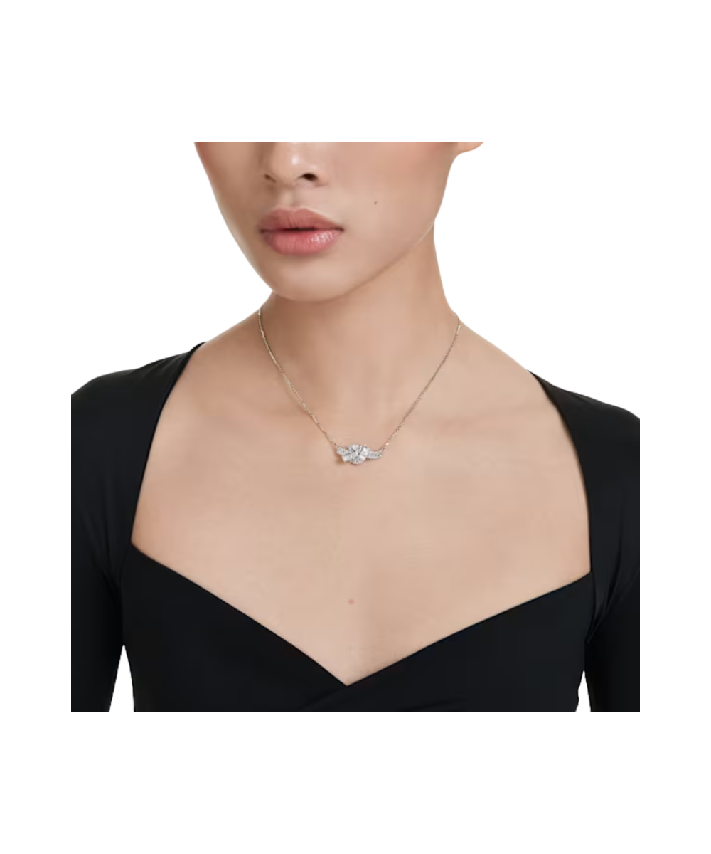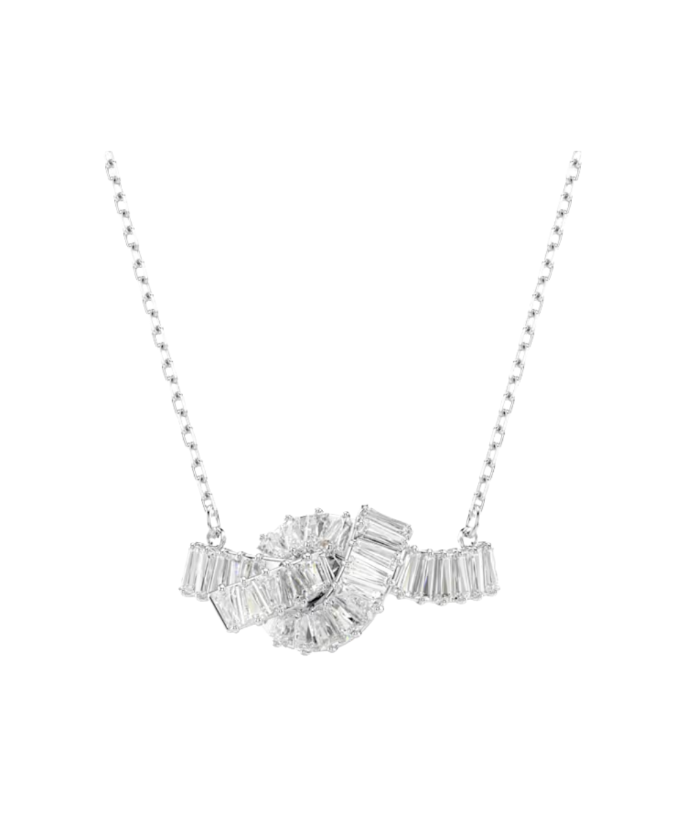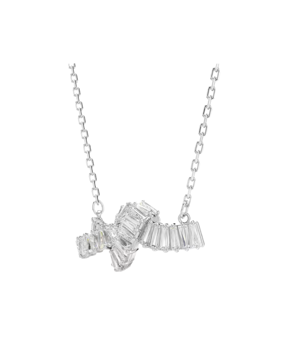 This elegant Swarovski pendant is tied in a knot to signify eternal connection. Suspended from a delicate chain, the ribbon-inspired motif is rhodium plated and features a sophisticated adornment of baguette-cut Swarovski Zirconia, each placed in a prong setting. It’s a sophisticated piece of everyday jewelry that matches beautifully with other Matrix creations.