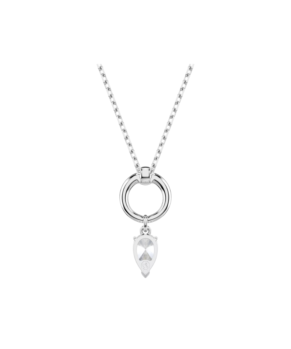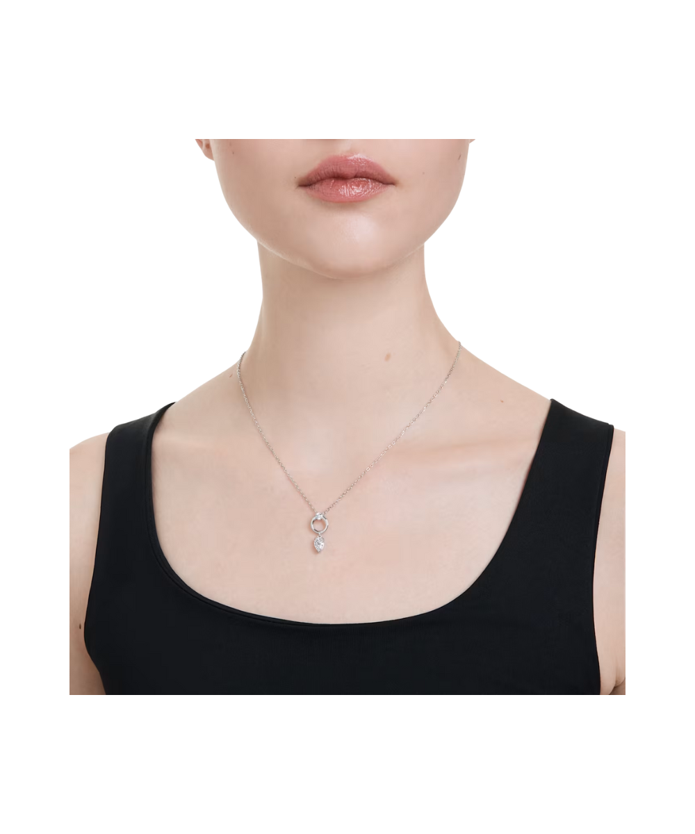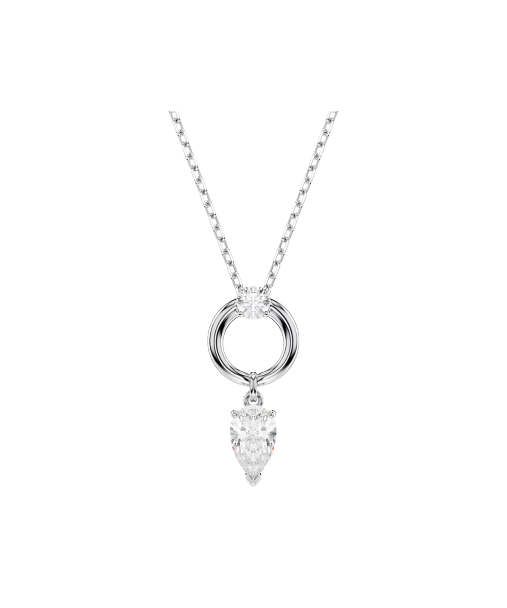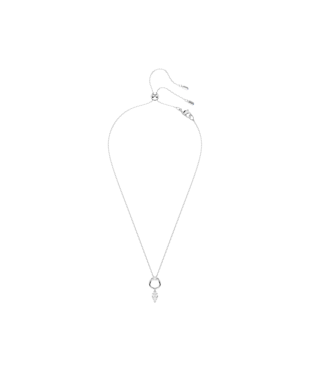 This Mesmera pendant blends radiance with refinement to create an eye-catching everyday piece of jewelry. The shimmering motif features a pear-cut Swarovski Zirconia, which is attached to a luxurious rhodium plated hoop. An additional round-cut Swarovski Zirconia is placed at the center, while a sliding mechanism on the chain allows the pendant to be easily adjusted to your desired length. Wear it with the matching earrings to create your own stunning set.