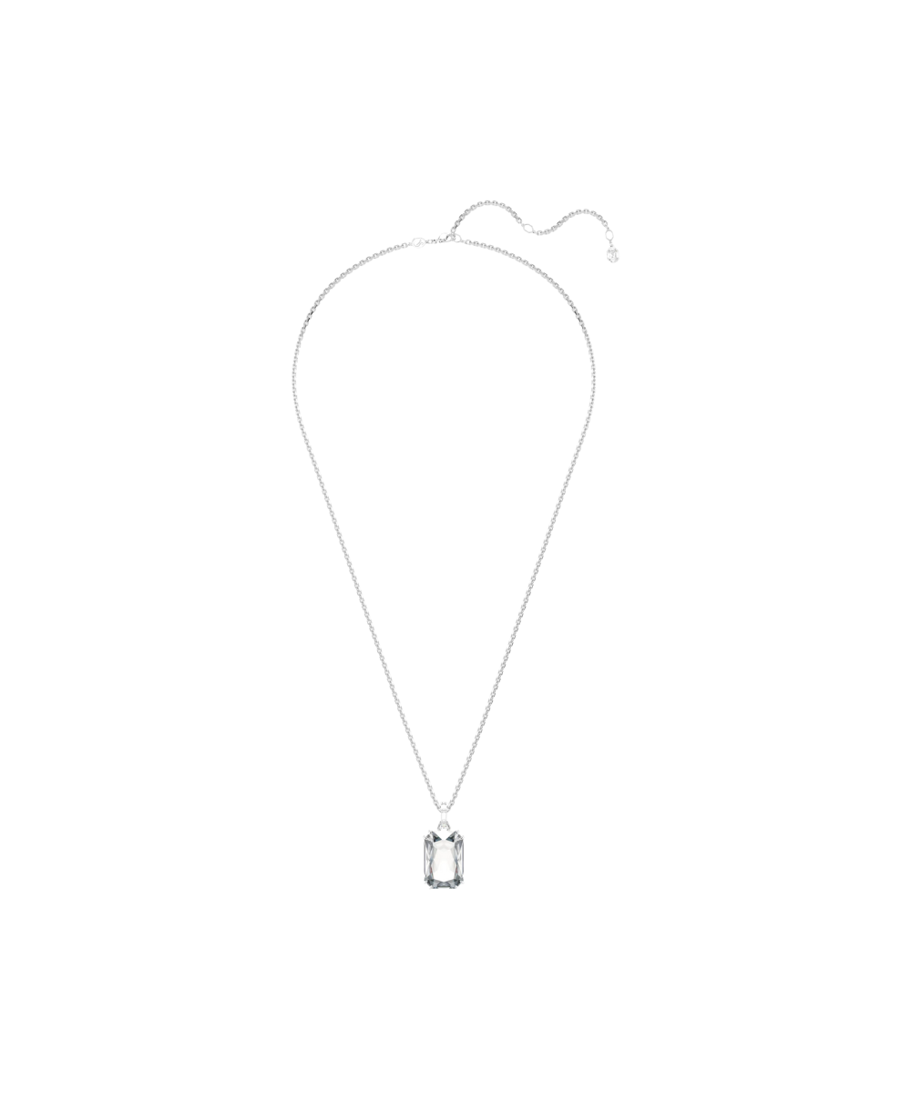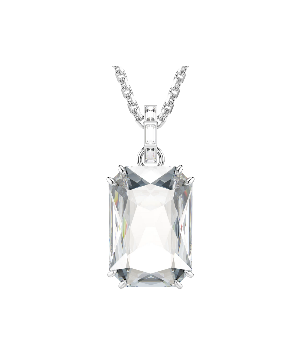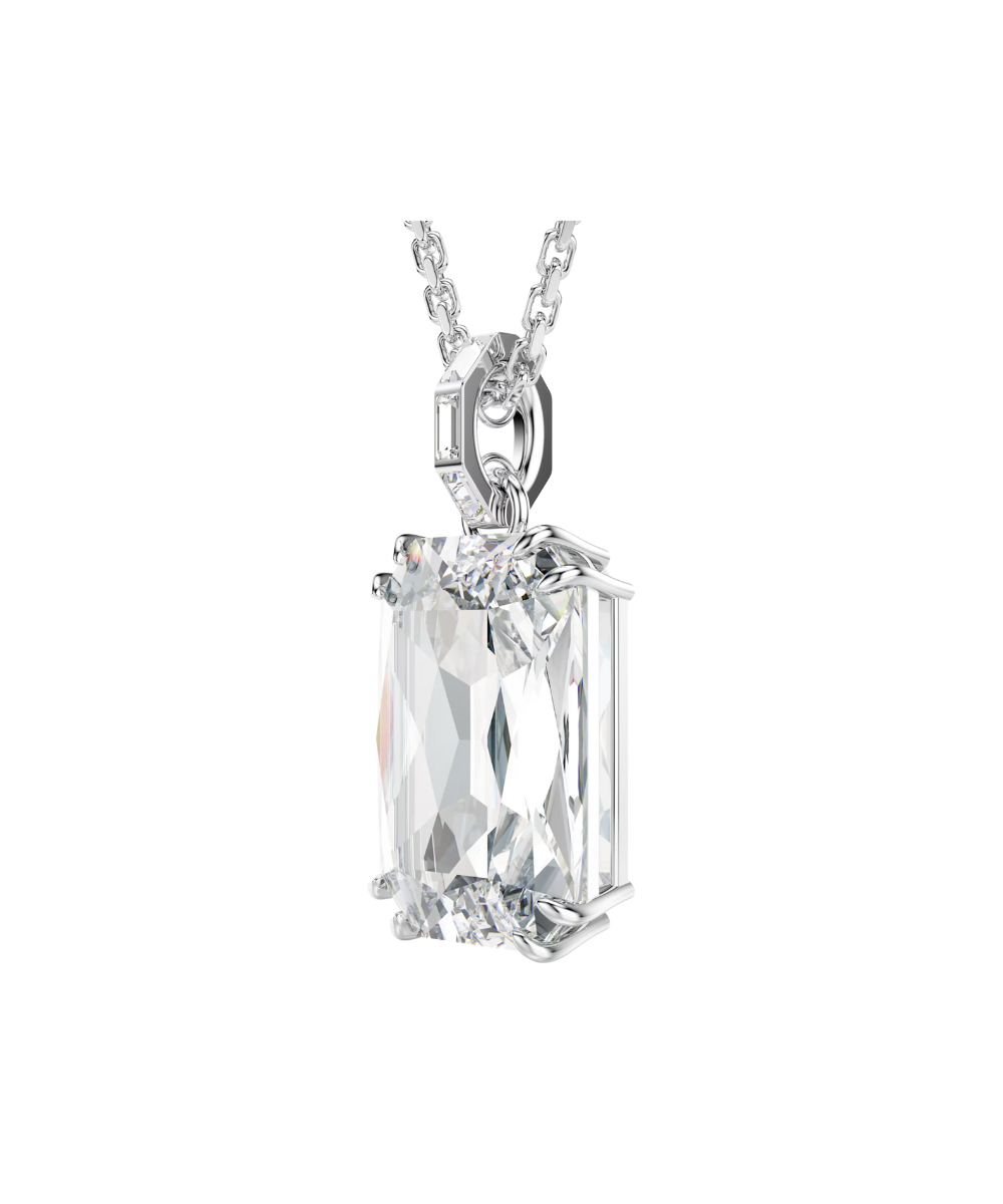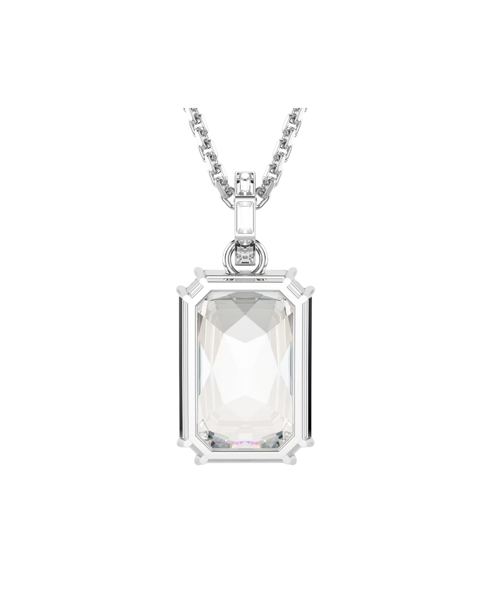 With emblematic Millenia style, this luminous pendant is a pure creation of light. The central motif is crafted from a large clear crystal in a double prong setting and connects to the rhodium plated chain via an elegant bail adorned in channel-set crystals. A mesmerizing choice to elevate your everyday glow.