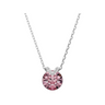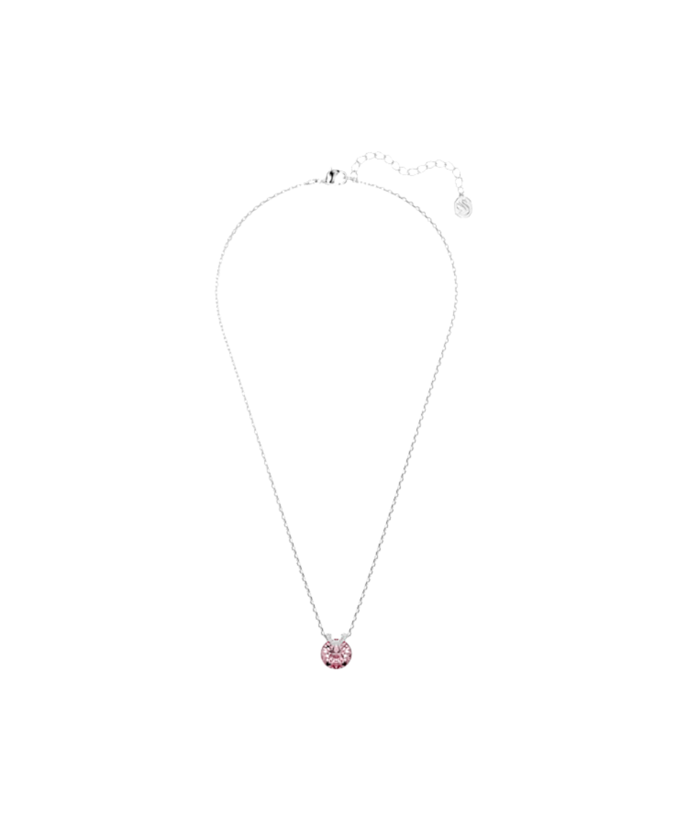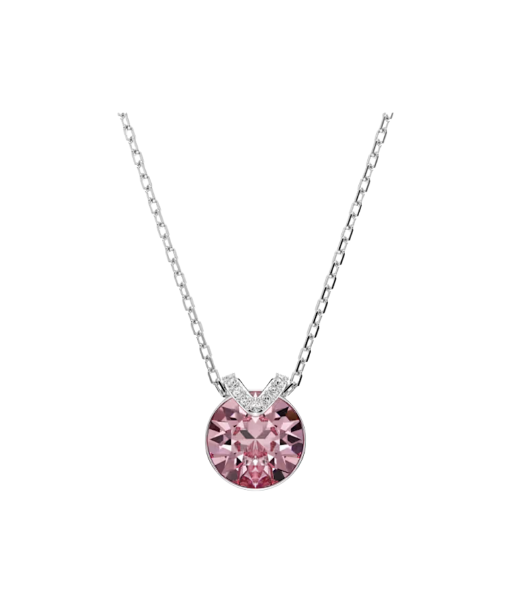 This romantic V-shape pendant has eye-catching appeal thanks to its central pink crystal set in rhodium plating. A flourish of shimmering pavé adds an extra layer of beauty, while the delicate chain exudes pure elegance. Wear it together with the matching earrings for a wondrous combination.