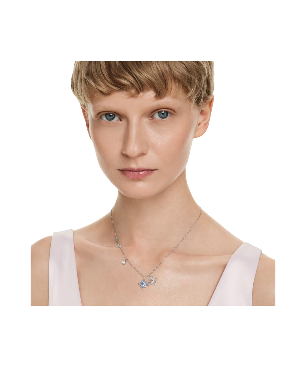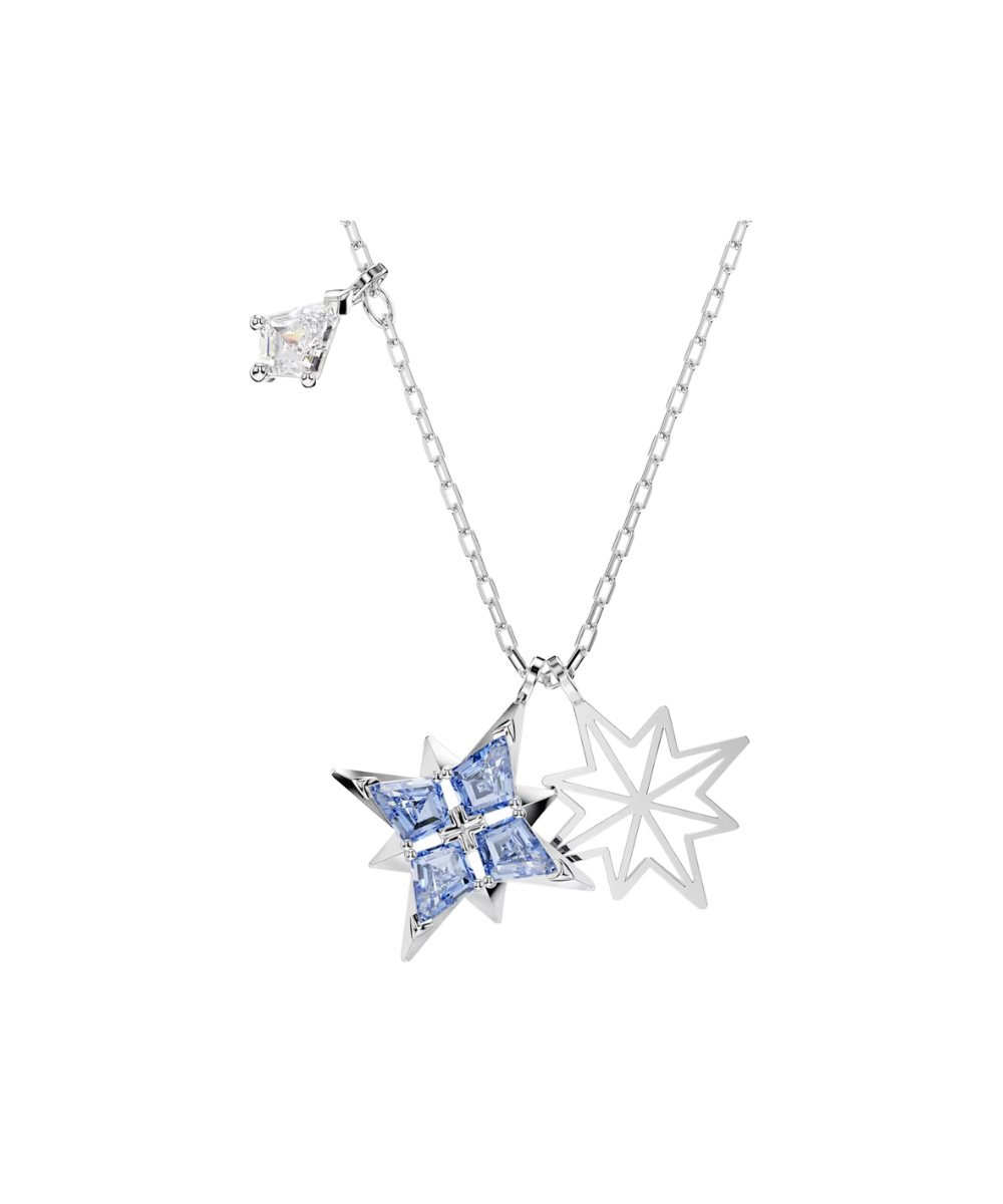 This cool and classic pendant is inspired by the shining night sky. Featuring star motifs, which symbolize hopes and dreams, the rhodium plated design dazzles with blue Swarovski Zirconia in a stunning kite-shaped cut. A perfect accessory by day or night, and an original gift idea.