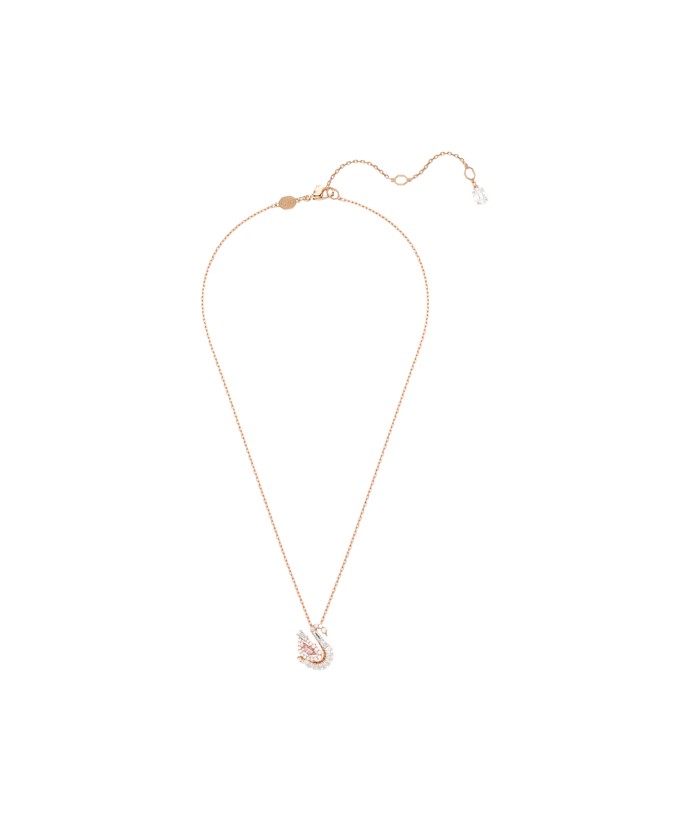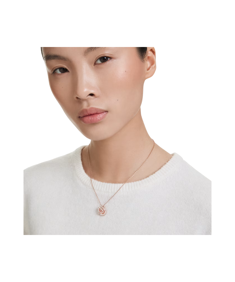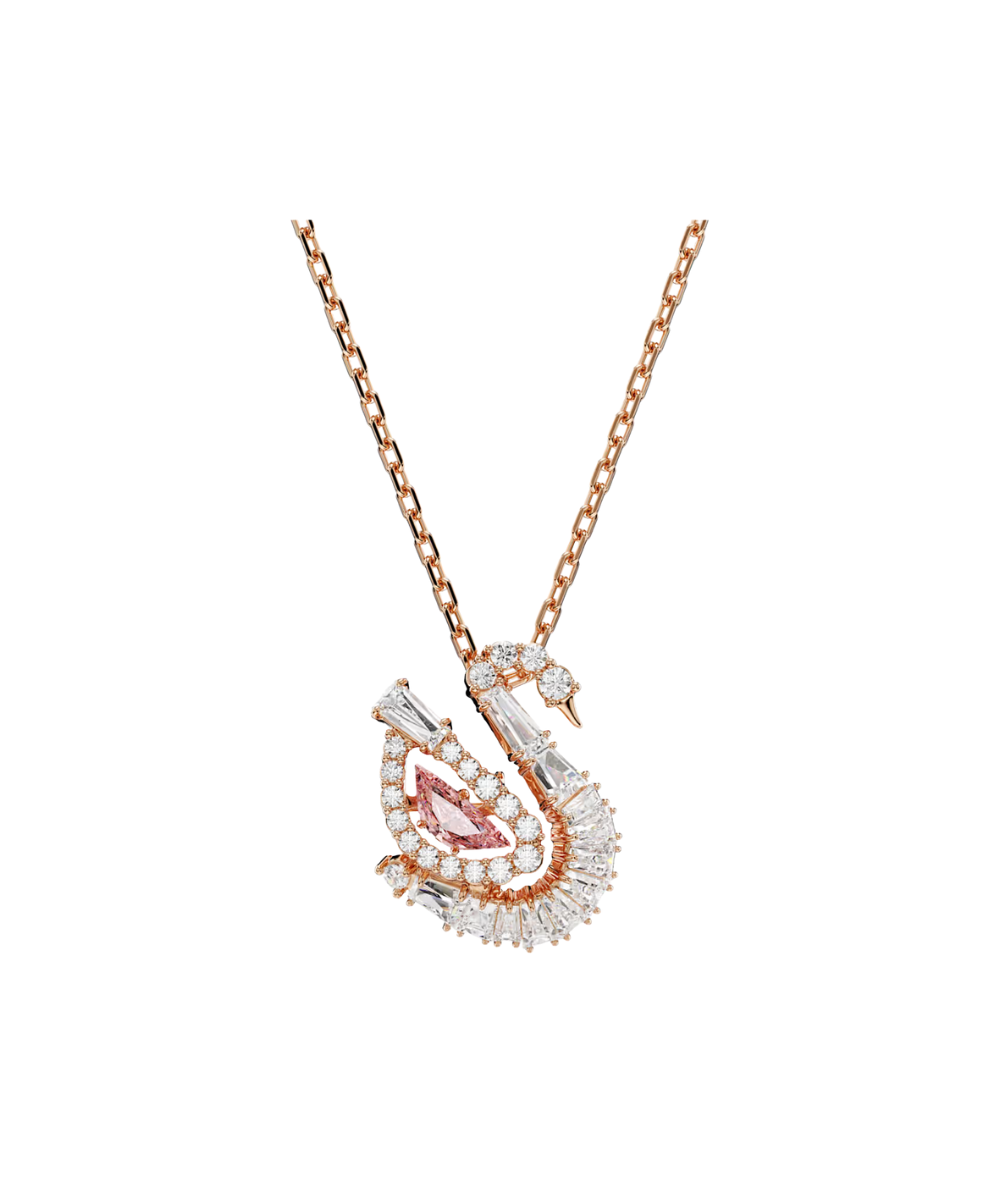 This pendant conveys the graceful movement of Swarovski’s iconic swan. Suspended from a rose gold-tone plated chain, the central motif reveals an elegant silhouette, adorned in clear Swarovski Zirconia and with a pink dancing stone in a swan body cut. This radiant detail creates an endless motion of color and light, and will keep your style shining at every moment.