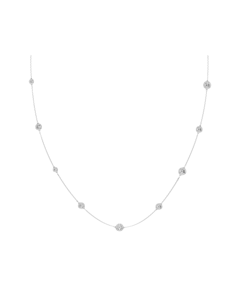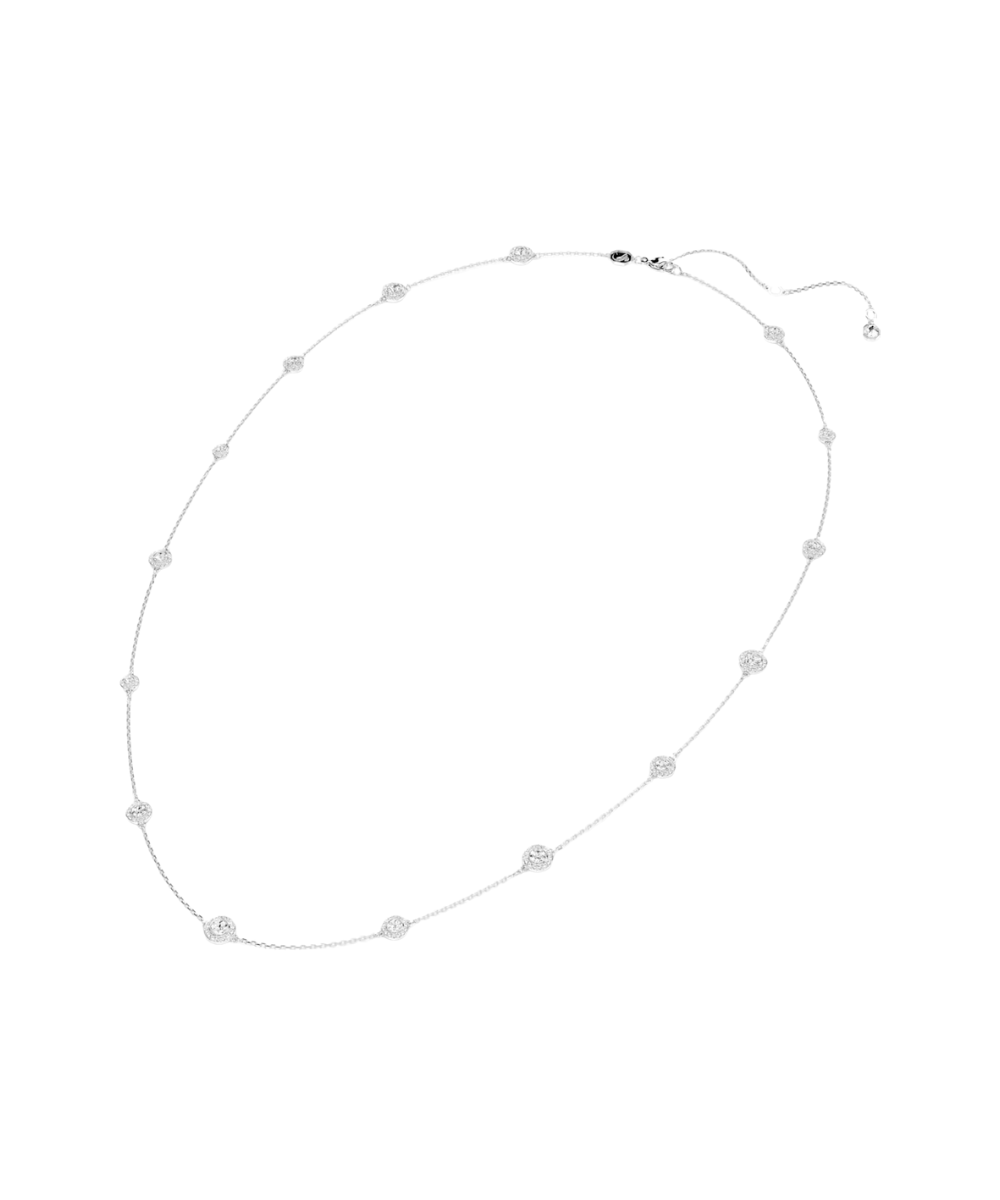 This versatile strandage lets you play with your style. Perfect for layering, the long rhodium plated chain is accented with glittering double-sided motifs. Simply reverse the jewelry to showcase a different display of round-cut crystals. Mix and match with other Una Angelic pieces for a look of ultimate radiance.