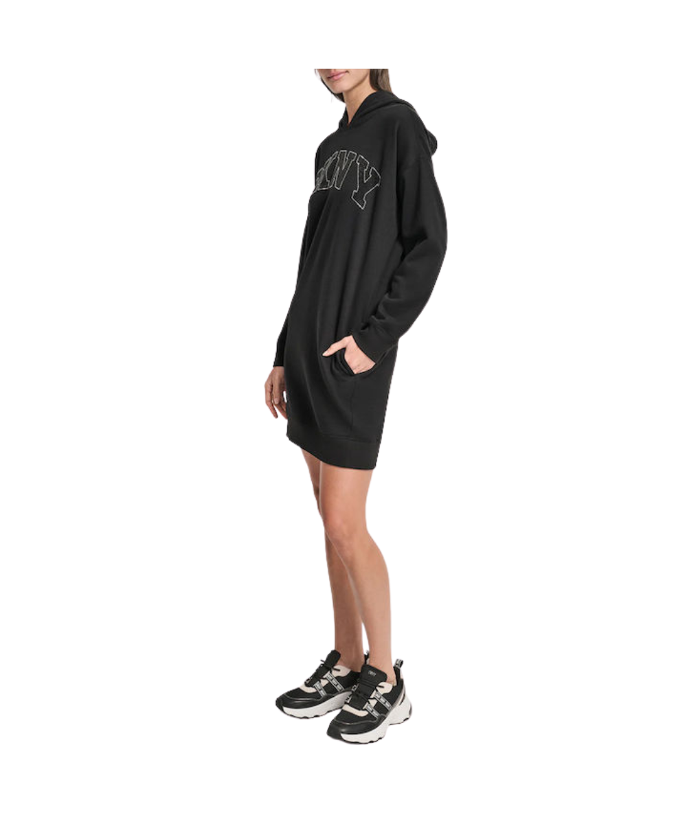 This women's dress from DKNY combines comfort and style, ideal for everyday looks. It is made with a sweatshirt cut, offering a modern feel while ensuring freedom of movement.