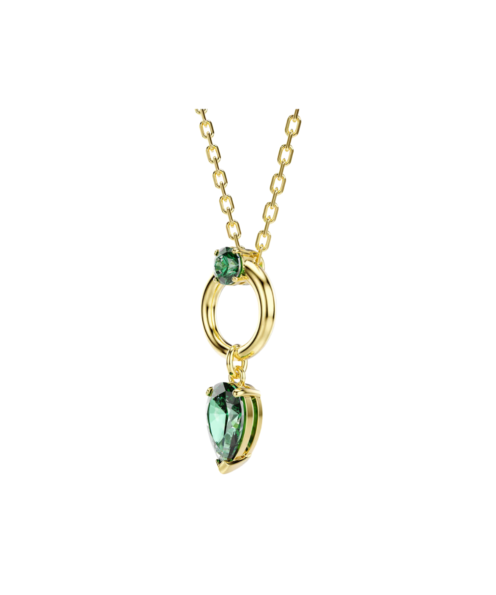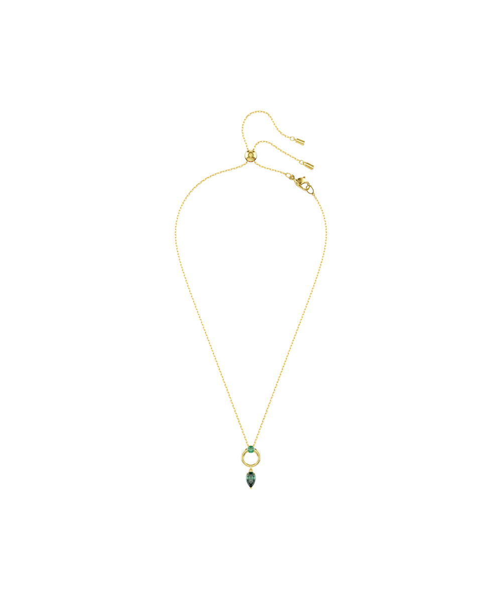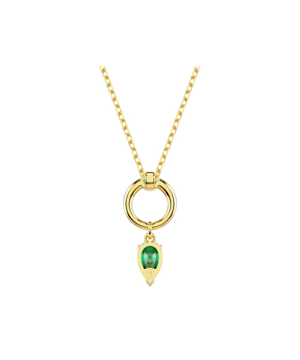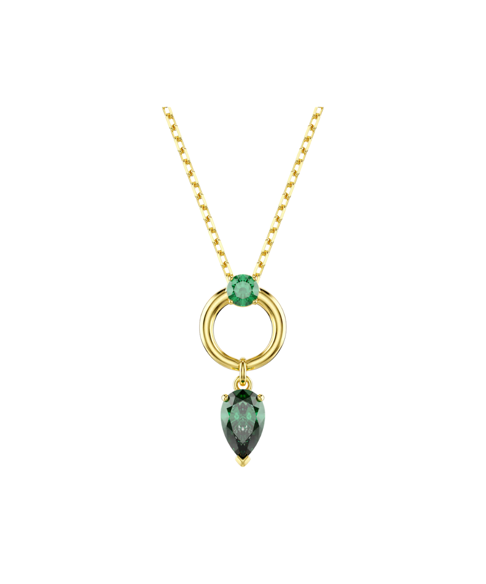 This Mesmera pendant blends color with refinement to create an eye-catching everyday piece of jewelry. The shimmering motif features a pear-cut Swarovski Zirconia in green, which is attached to a luxurious gold-tone plated hoop. An additional round-cut Swarovski Zirconia is placed at the center, while a sliding mechanism on the chain allows the pendant to be easily adjusted to your desired length.