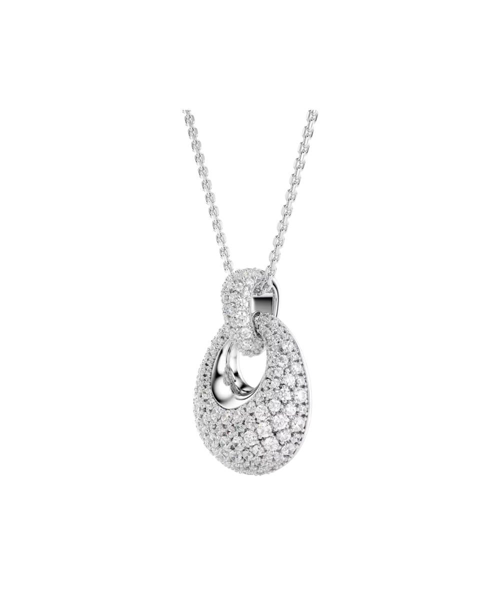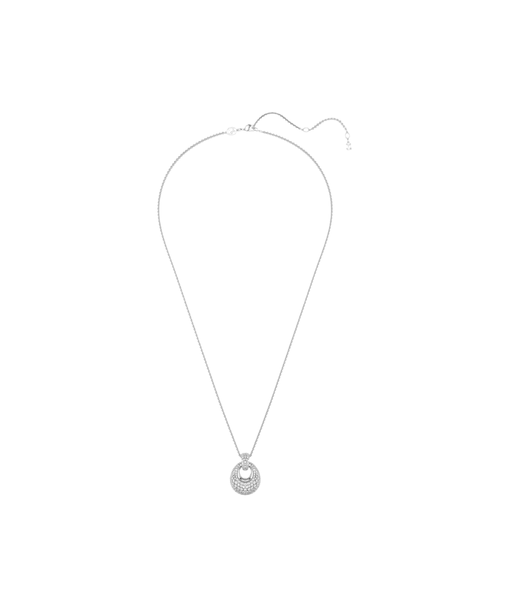 This shimmering pendant is the ideal choice for glamorous occasions. The central motif is suspended from a long rhodium plated chain and features a stunning decoration of clear Swarovski Zirconia, set in place using the chattonage technique. Combine it with a pair of wondrous Sublima earrings or a ring to infuse your entire look with light.