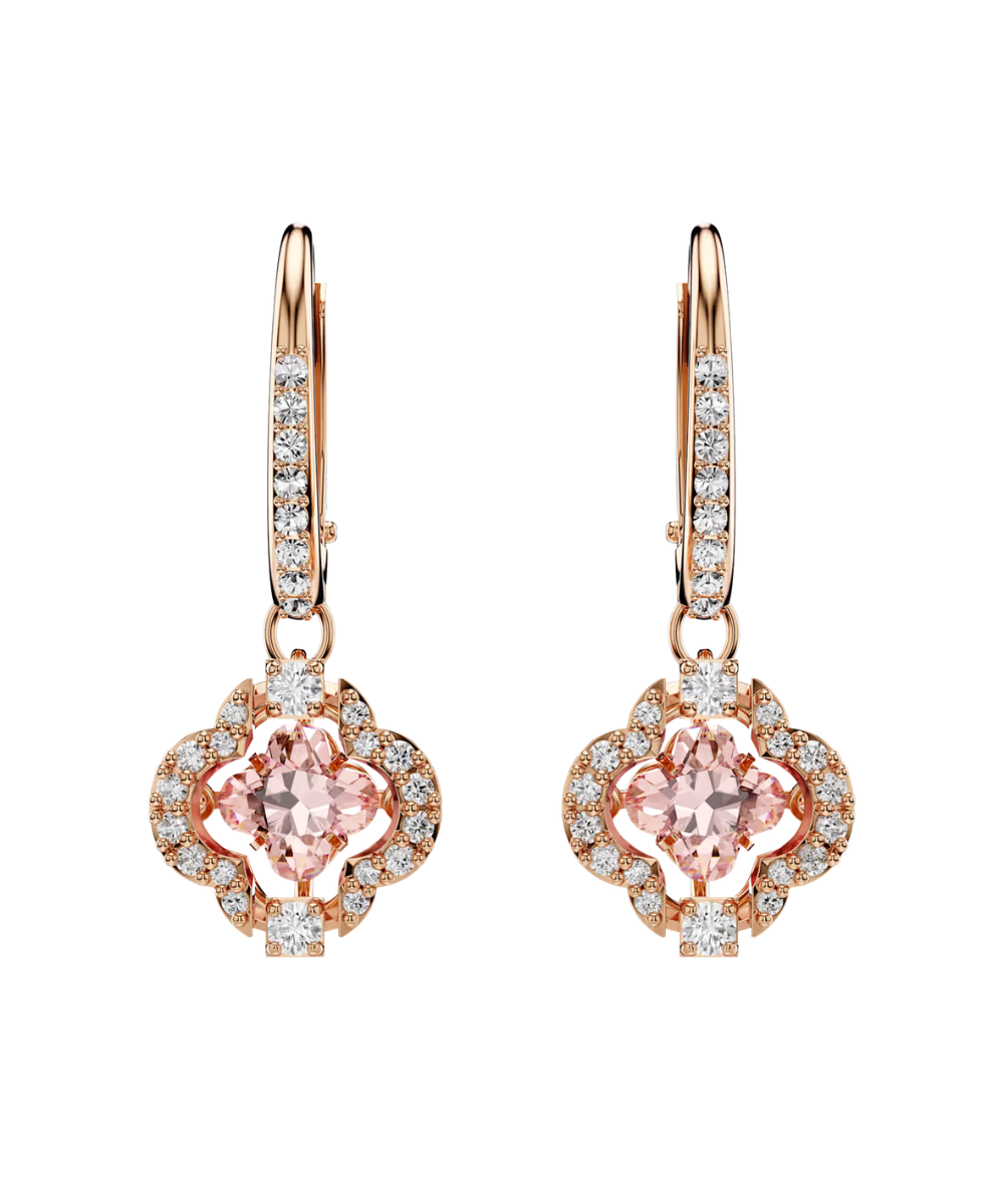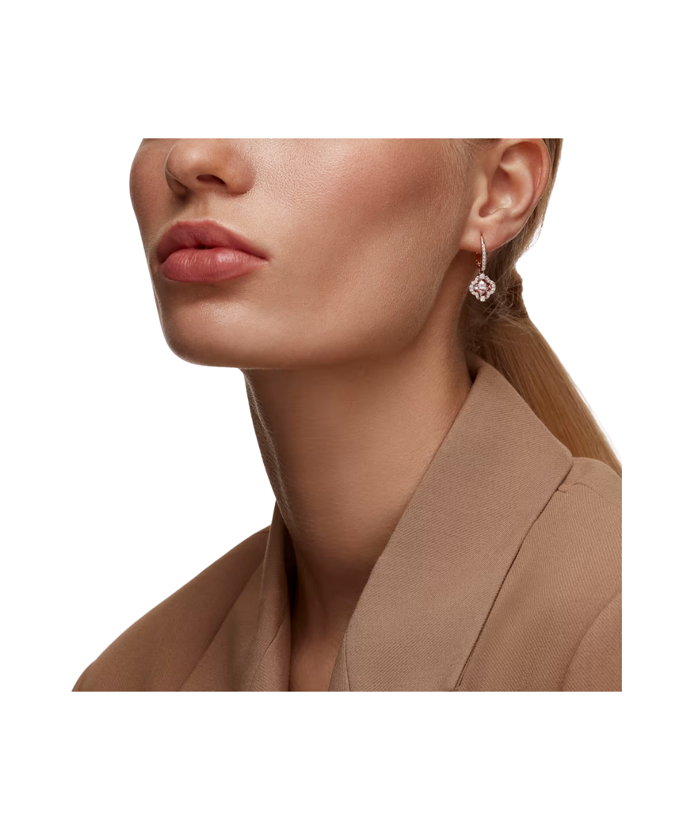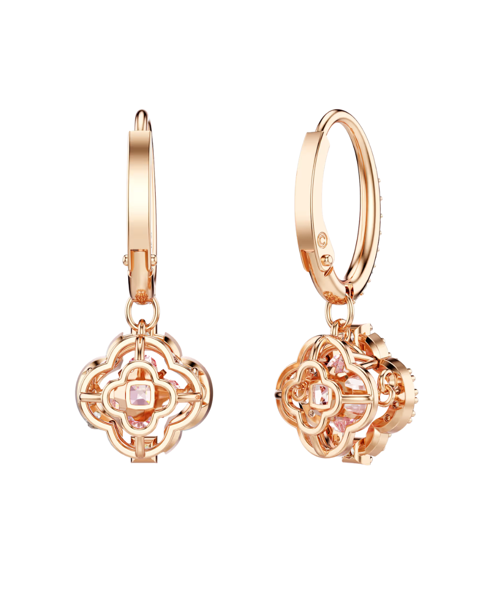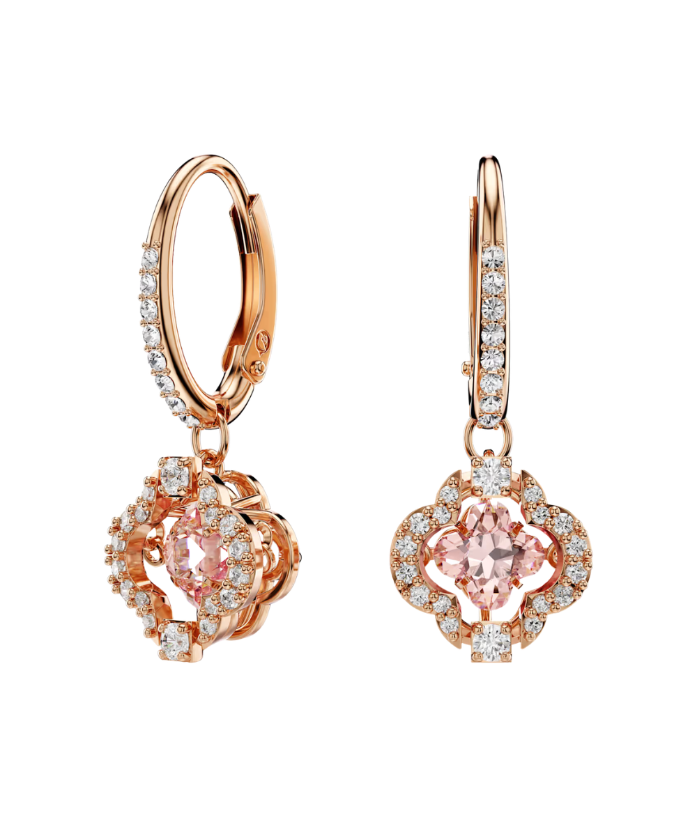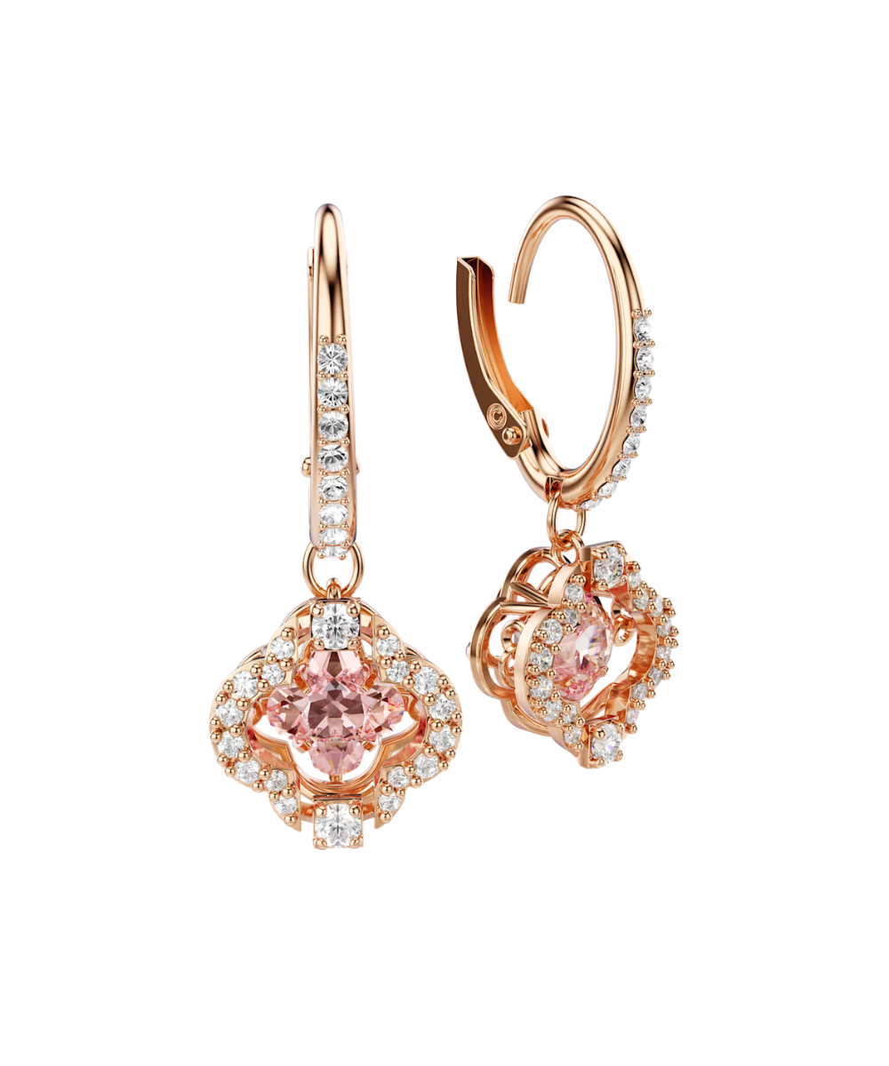 This pair of pierced earrings by Swarovski features a charming floral design. Each piece is highlighted by a pink 'dancing' stone, which is beautifully complemented by a rose-gold tone plated setting and clear crystal pavé. A great gift for a special someone.