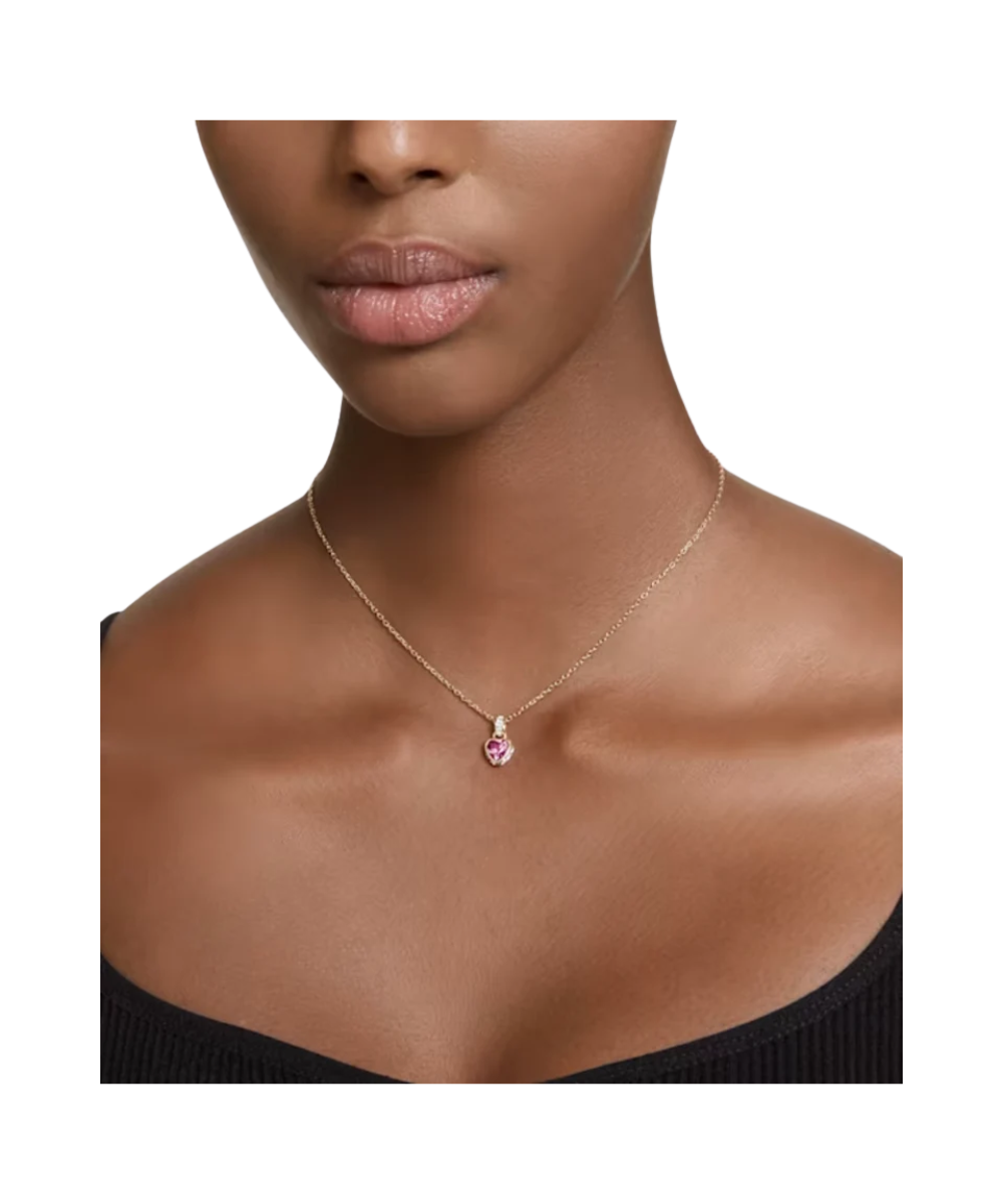 If you adore heart-shaped jewelry, this pendant from the Stilla family is essential for your collection. The red centerstone sits in a gold-tone plated surround enhanced with square clear crystals around the edges and the bail. Beautifully attached to a gold-tone plated chain with a round stone detail at the end and a 5cm elongation, this is a piece you can wear every day, making it a signature part of your style.