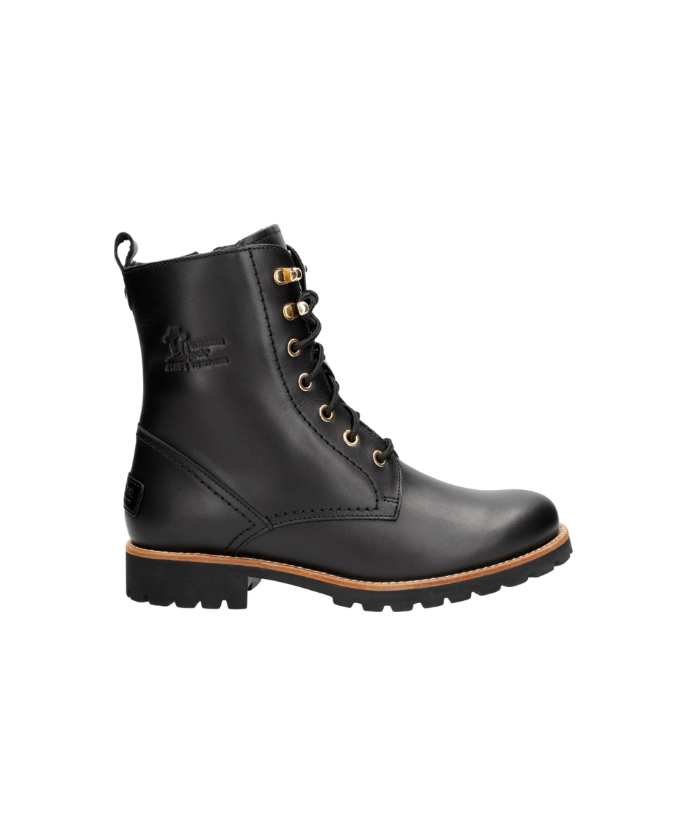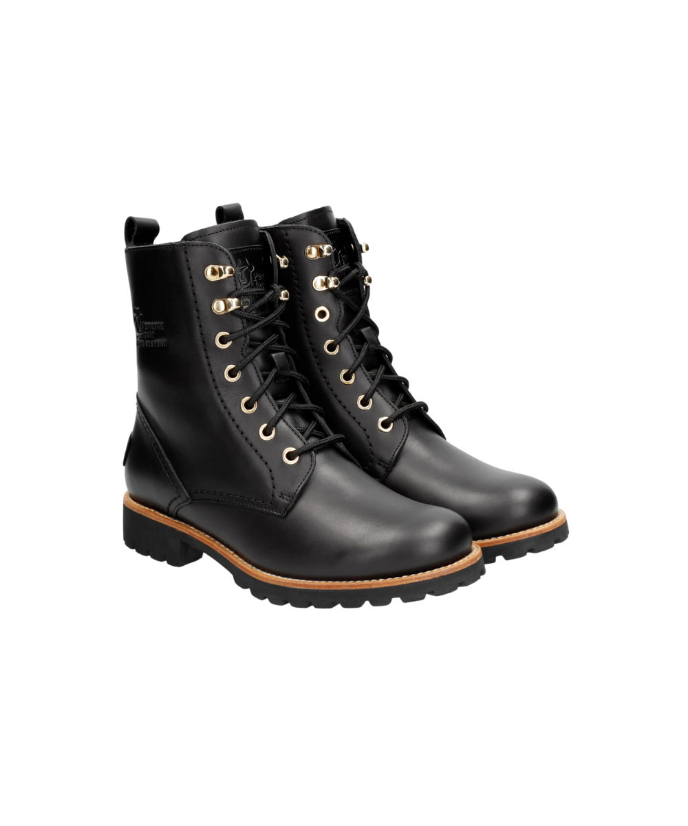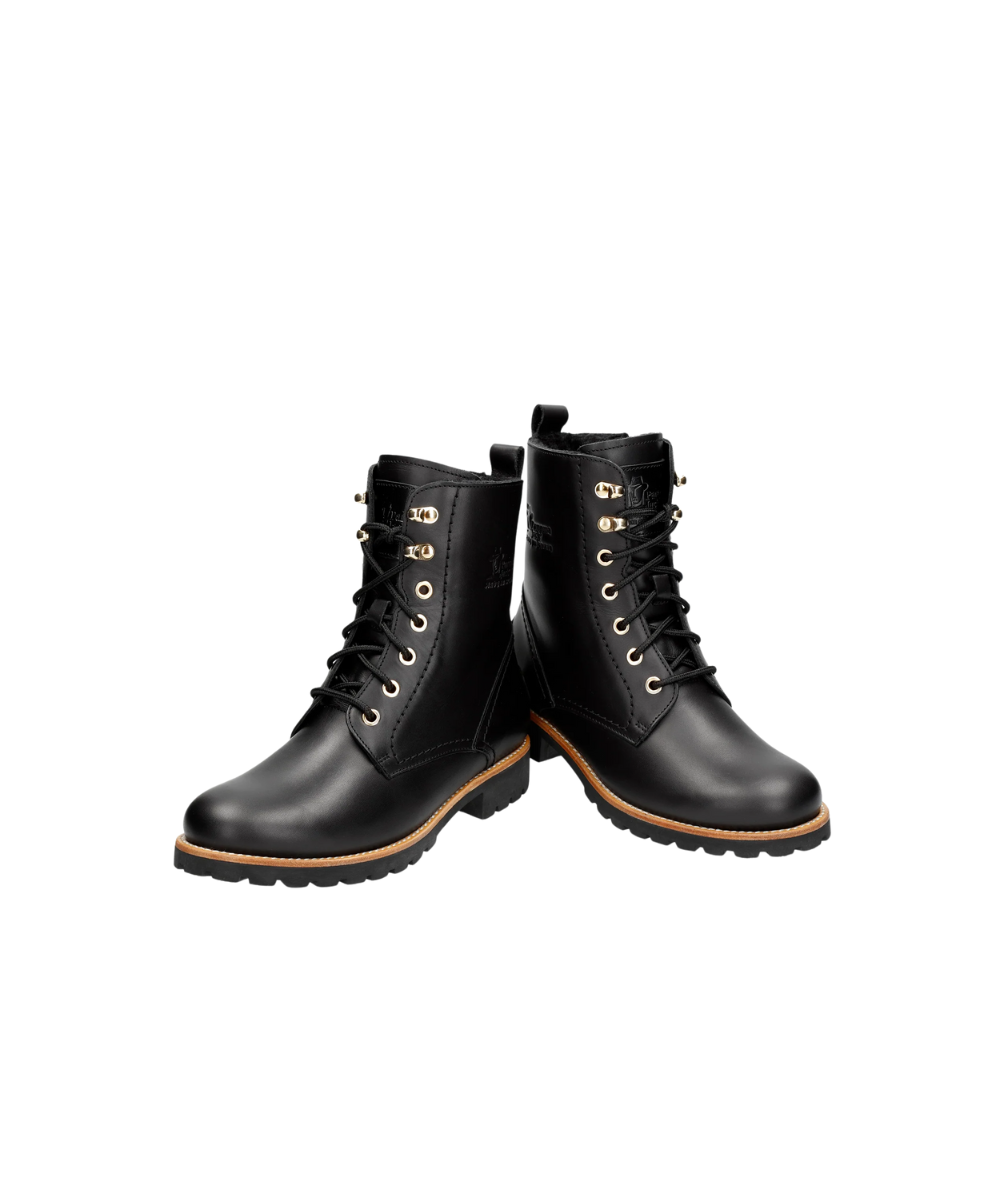 Flat women's Boot. WATERPROOF Black Napa Leather. Lace and zipper closure. Warm lining. Removable anatomical insole. Natural, flexible and durable rubber sole. Shaft height: 16 cm. Heel height: 4 cm. 100% Made in Spain.