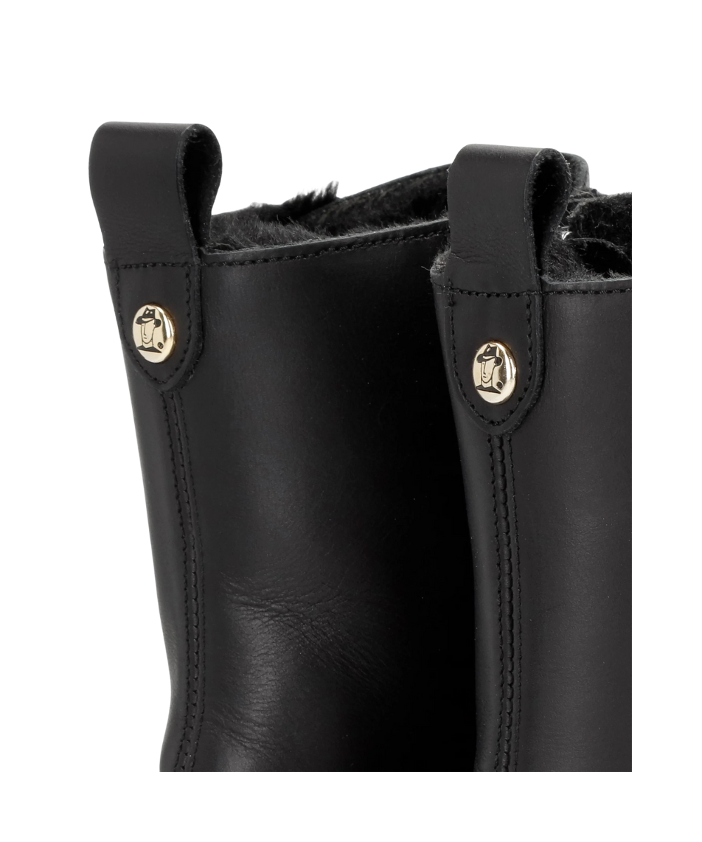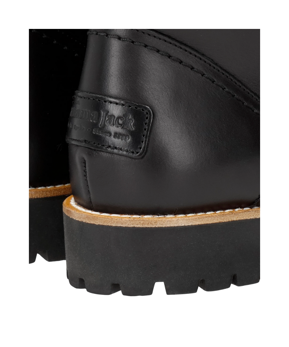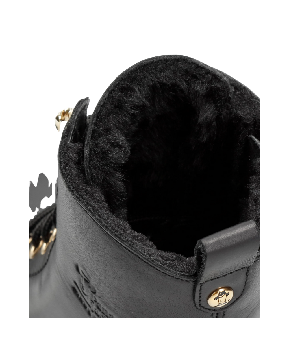 Flat women's Boot. WATERPROOF Black Napa Leather. Lace and zipper closure. Warm lining. Removable anatomical insole. Natural, flexible and durable rubber sole. Shaft height: 16 cm. Heel height: 4 cm. 100% Made in Spain.