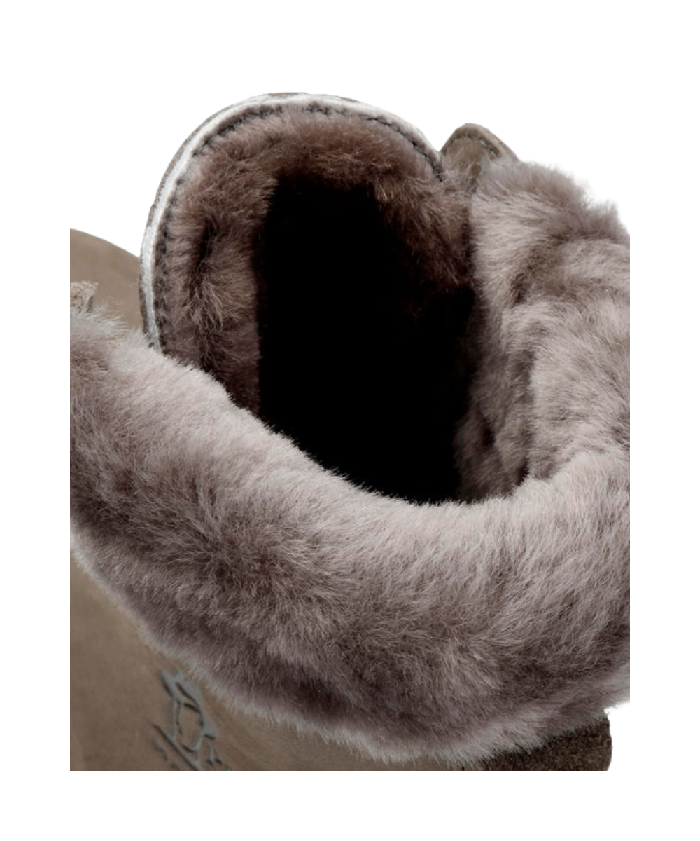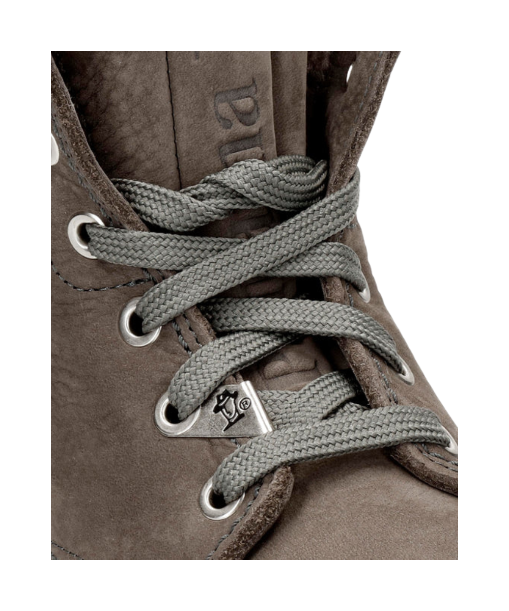 Flat women's Boot. WATERPROOF Grey Nobuck Leather. Lace-up Closure. Sheepskin lining. Removable anatomical insole. Natural, flexible and durable rubber sole. Shaft height: 14 cm. Heel height: 4 cm. 100% Made in Spain.